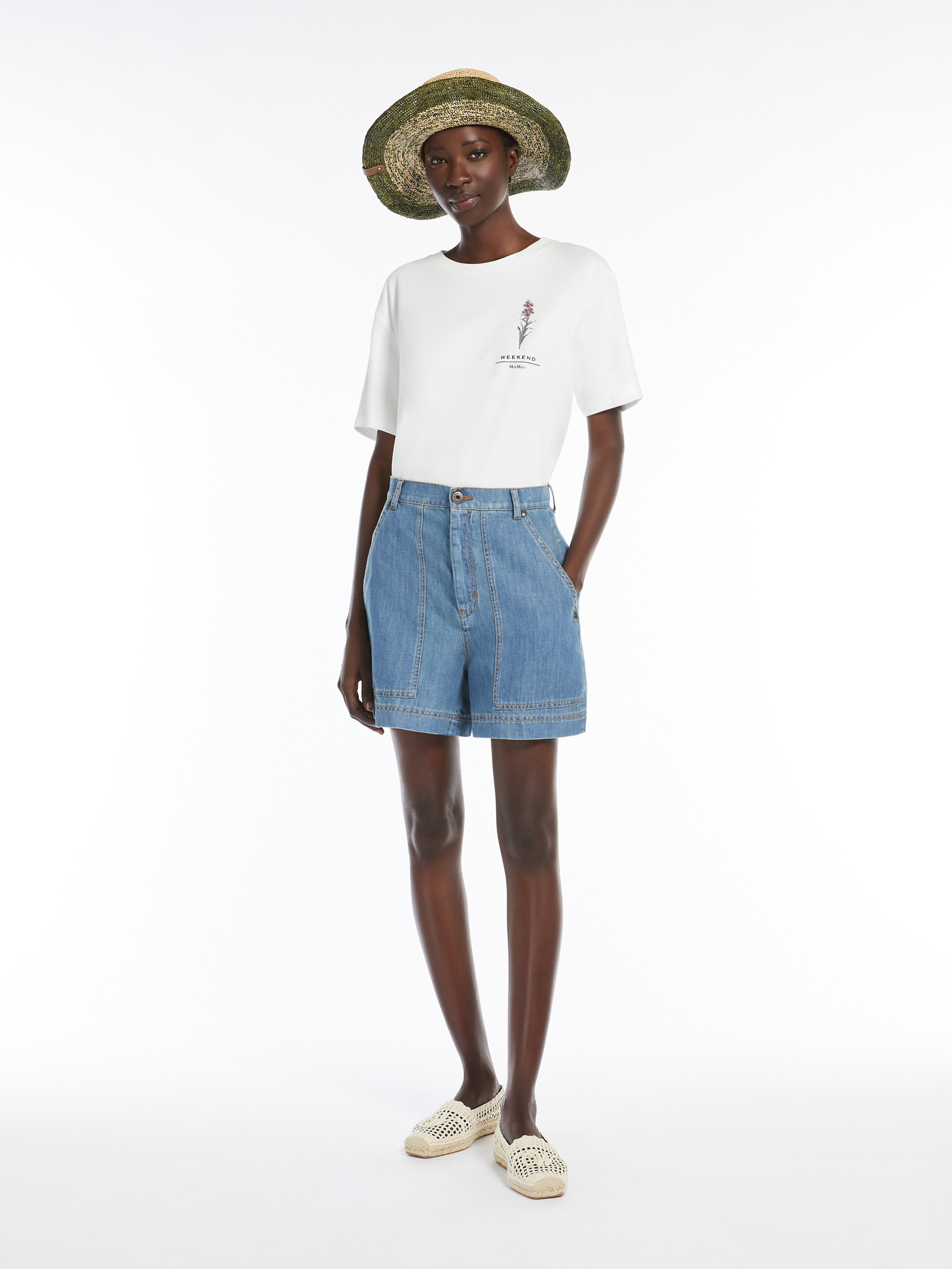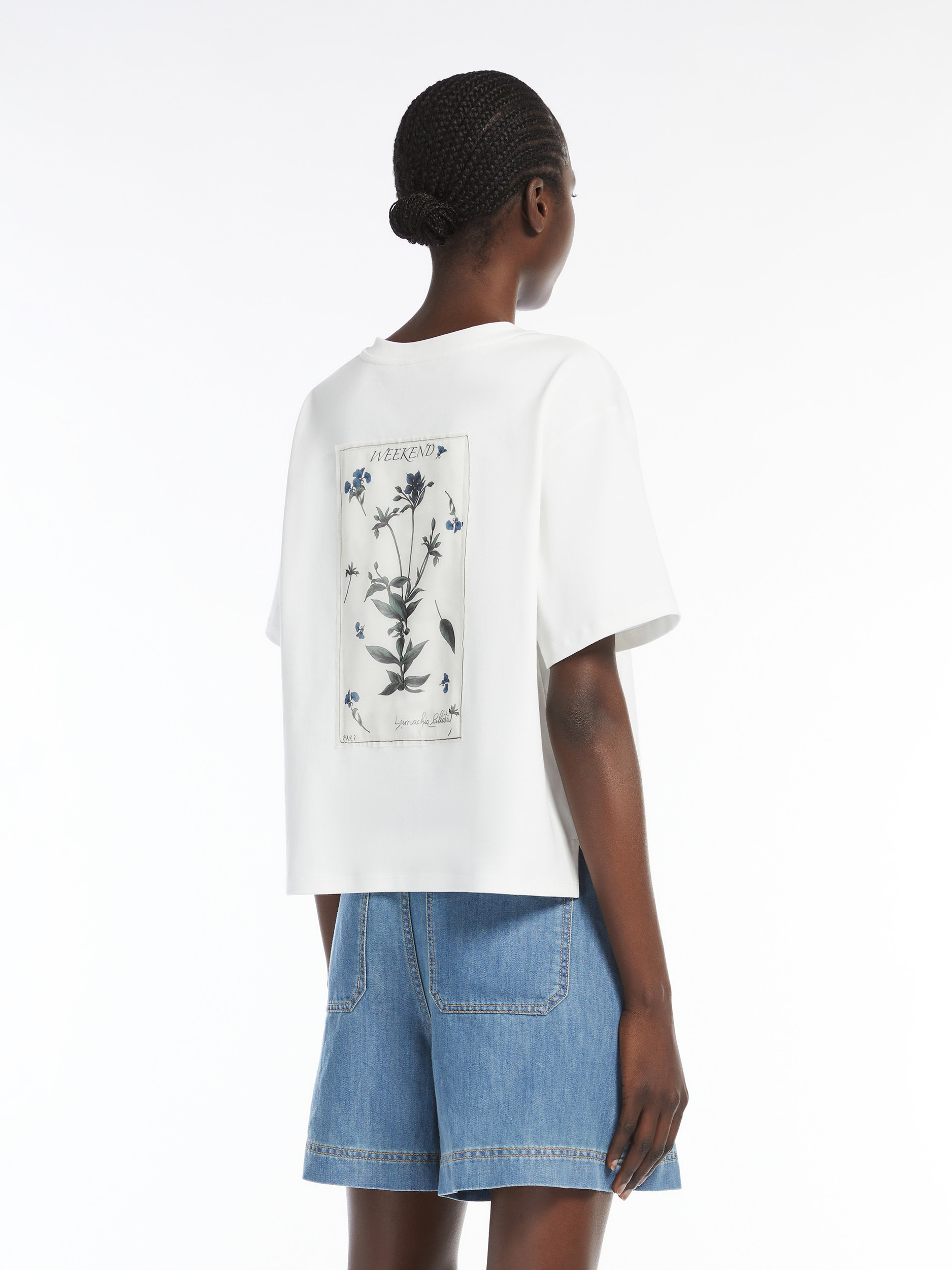 Футболка від Max Mara Weekend виготовлена з бавовняного джерсі. Модель вільного фасону, з круглим вирізом та короткими рукавами. Прикрашена вишивкою квітки та логотипом бренду. Базова модель є універсальною деталлю гардеробу. Підійде під будь-який одяг та дозволить експериментувати зі стилями.