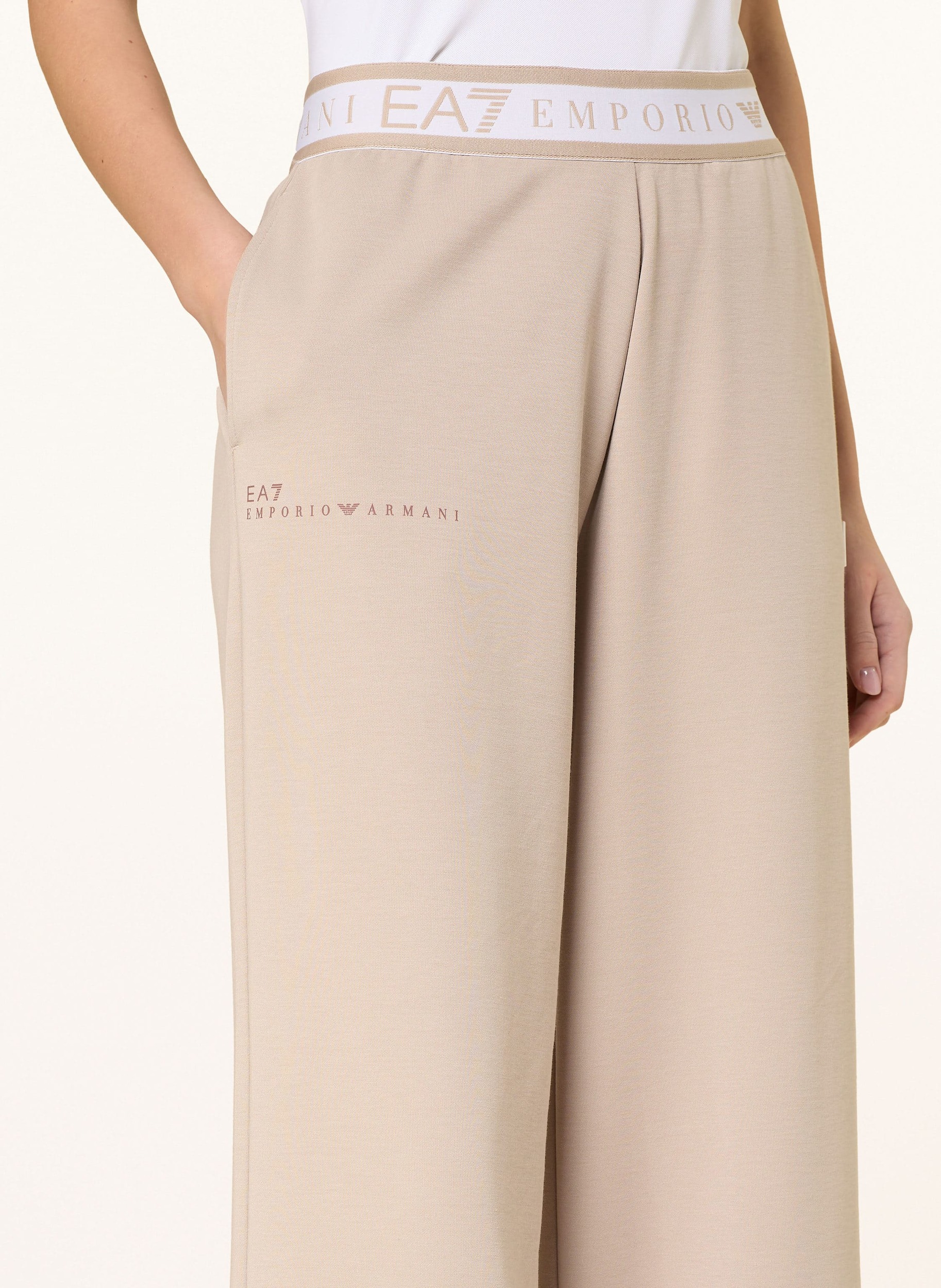 Жіночі спортивні брюки EA7 з весняно-літньої колекції поєднують функціональність і елегантність, притаманні преміальному бренду. Модель виготовлена з якісного змішаного матеріалу, що забезпечує комфорт і зносостійкість. Брюки представлені в бежевому кольорі та мають прямий крій з еластичним поясом на кулісці. Два зовнішні кишені додають практичності, а принт з логотипом бренду підкреслює фірмовий стиль. Ідеально поєднуються з кофтами та футболками у спортивному або кежуал стилі, а також із кросівками чи снікерами для створення завершеного образу. Ця модель відображає сучасний підхід до спортивного одягу, пропонуючи баланс між стилем, зручністю та функціональністю.