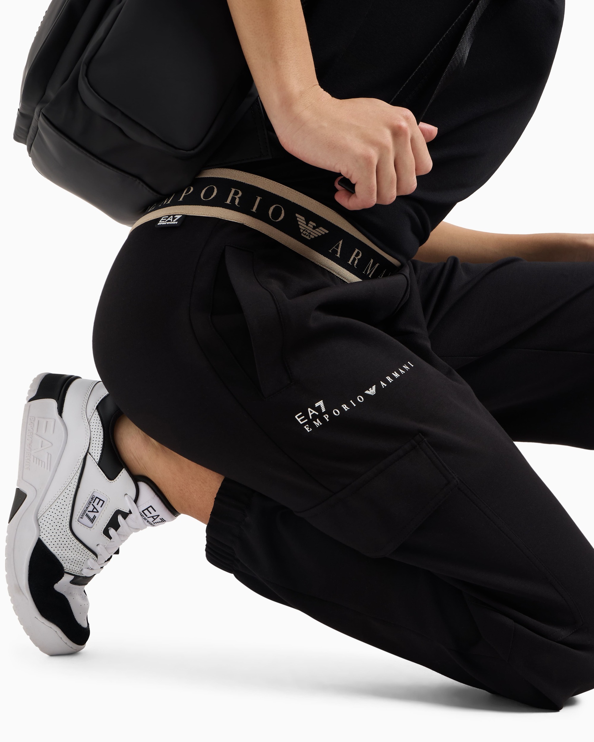 Штани карго з логотипом EA7 Emporio Armani збоку та двома накладними кишенями. Модель виготовлена з технологічної тканини Natural VENTUS7, яка забезпечує відмінну терморегуляцію під час тренувань. Спортивні штани надзвичайно зручні та м’які. Ідеальний одяг для тренувань у спортзалі чи на природі.
