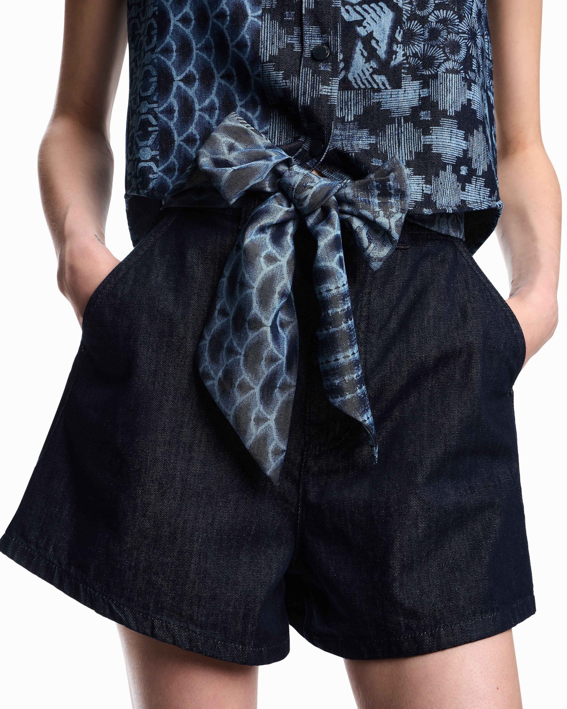 Шорти Emporio Armani виконані з легкого деніму та декоровані принтом на поясі. Модель із високою посадкою підкреслює талію. Прямий крій та класична довжина забезпечують комфорт та свободу рухів. Пояс із принтом додає акценту й оригінальності. Застібаються на блискавку і гудзик спереду. Ці шорти ідеально підійдуть для теплої погоди, поєднуючись із легкими топами, футболками чи сорочками. Вони підійдуть для повсякденного образу, прогулянок містом або відпочинку на природі.