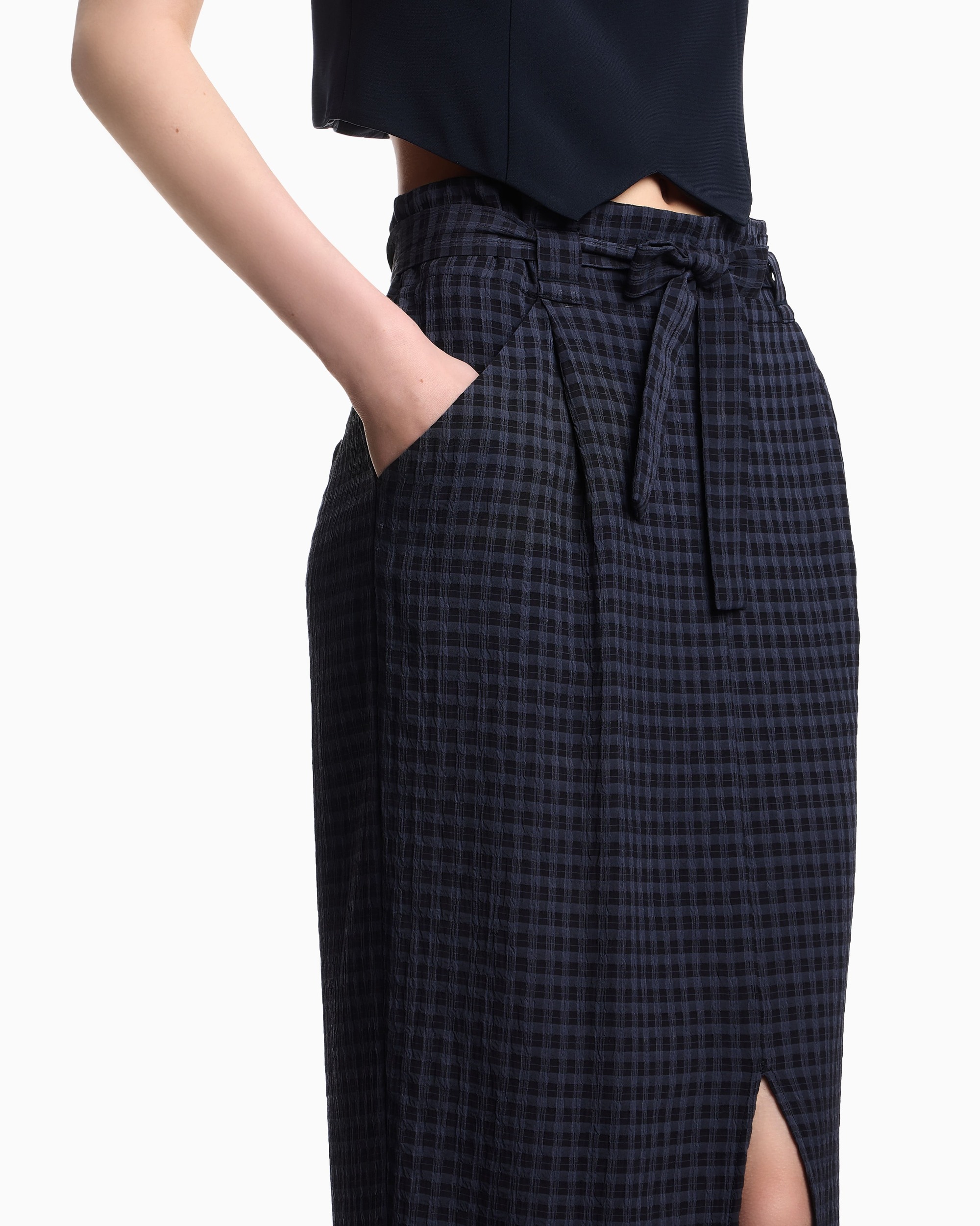Спідниця з щільного матеріалу чорного кольору з прямим кроєм та елегантною довжиною до коліна. Відрізняється лаконічним дизайном і універсальністю, що підходить для різних образів. Комфортна в носінні завдяки якісній тканині. Легко поєднується з блузами, сорочками та жакетами. Ідеальний вибір для стильного гардероба в діловому чи повсякденному стилі.