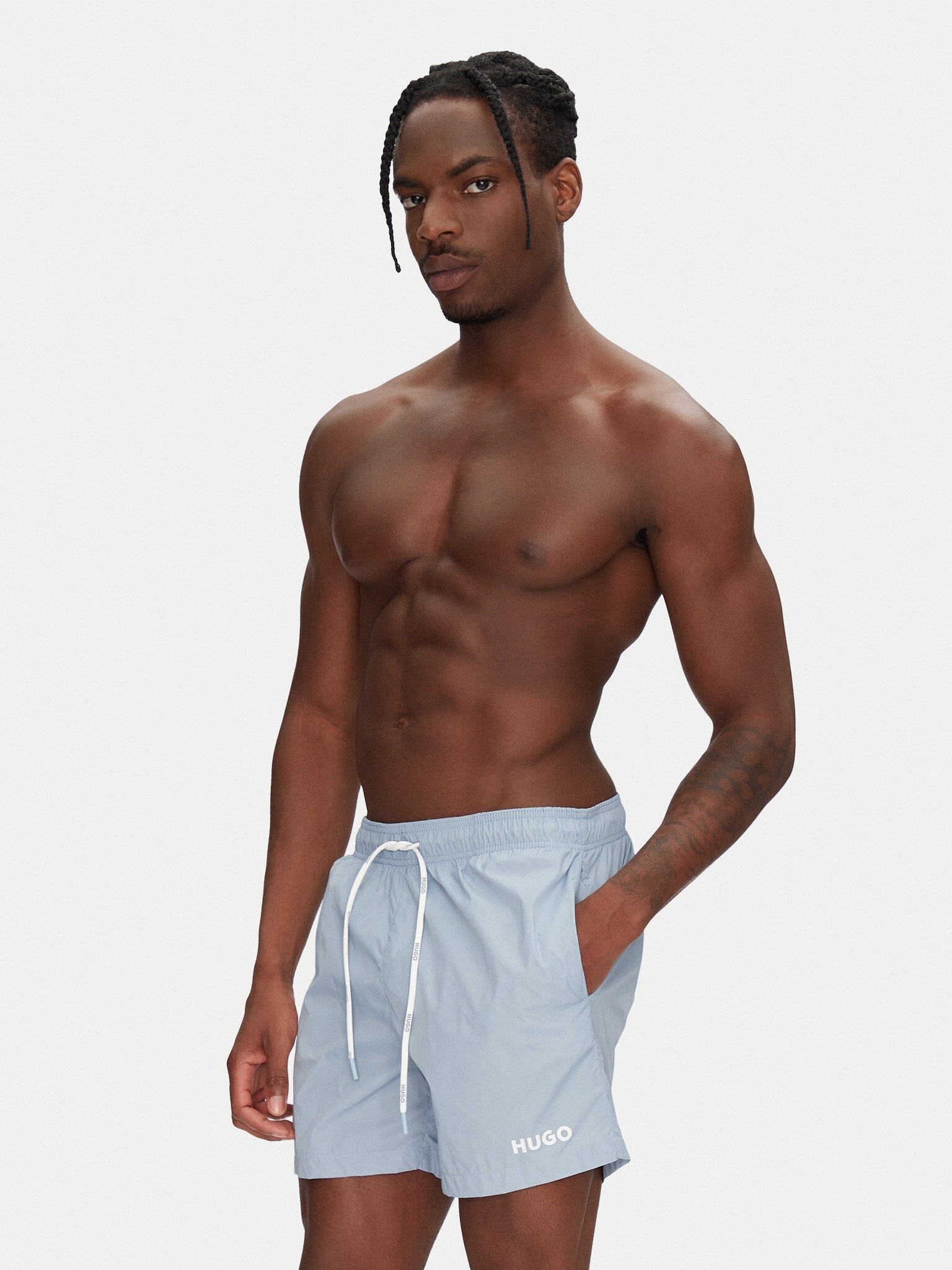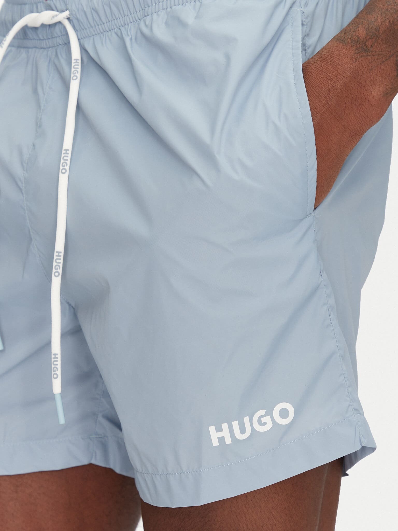 Шорти для плавання з контрастним принтом логотипу та відповідними шнурками від HUGO. Ця модель на підкладці, виконана з поліаміду.