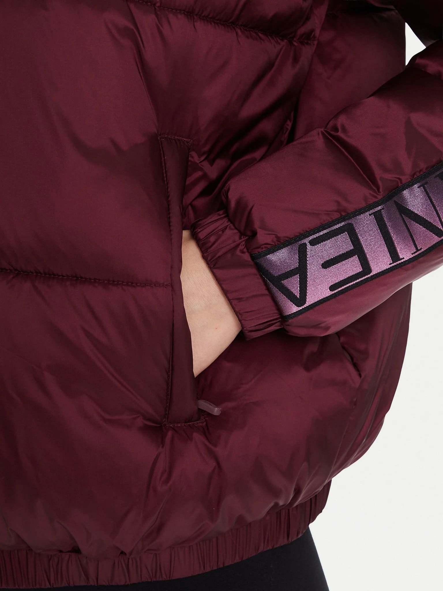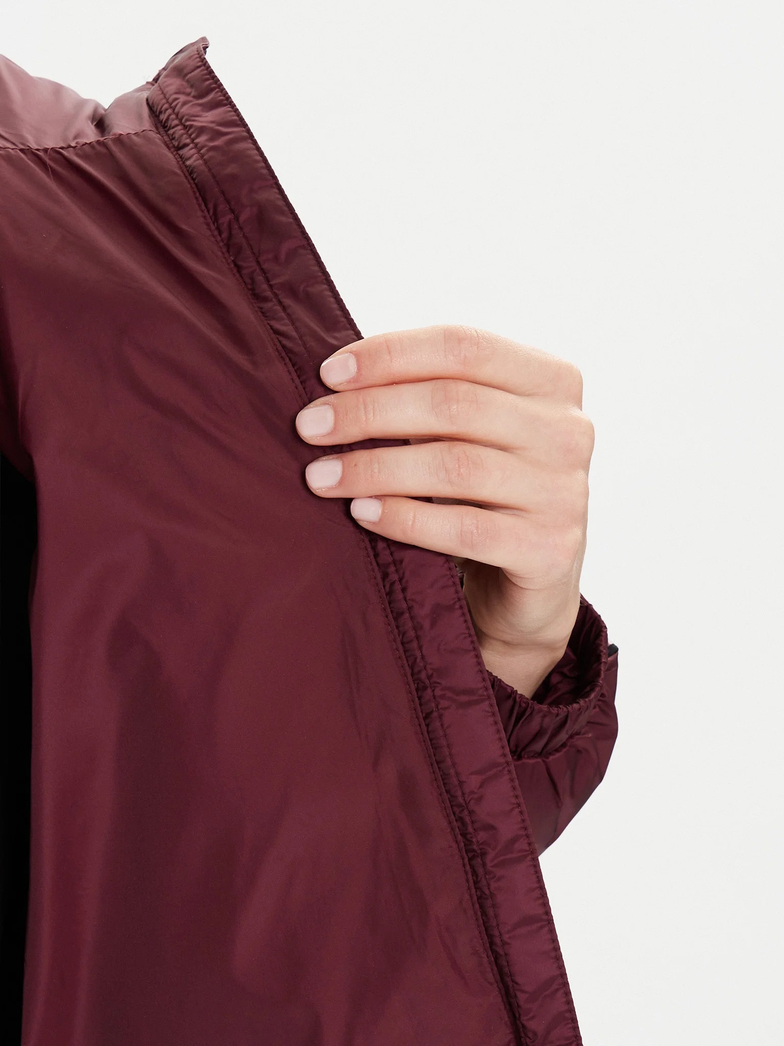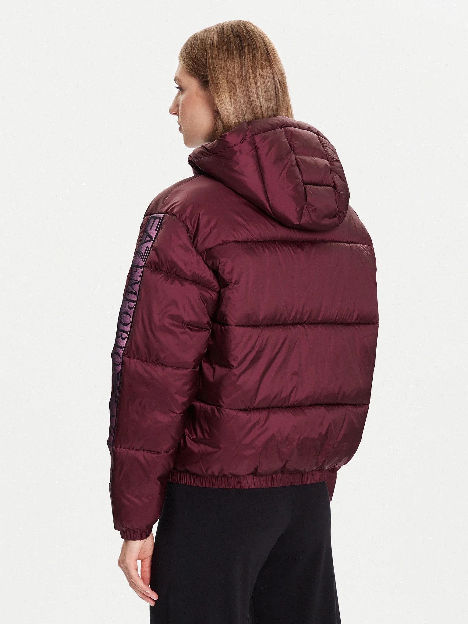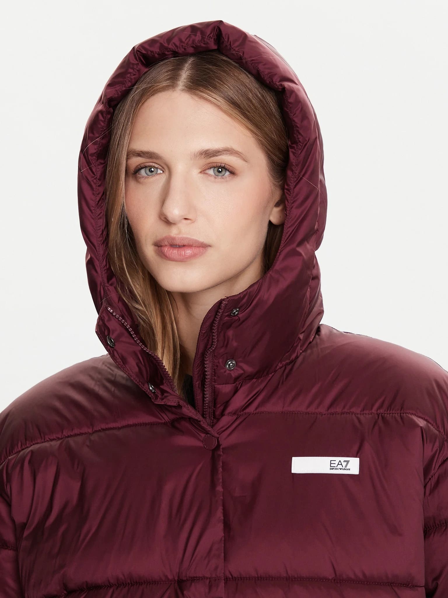 Куртка EA7 Emporio Armani бордового кольору виготовлена з гладкого поліестеру з м’яким блиском і легким утеплювачем. Прямий крій підкреслює чистоту ліній, а високий комір, капюшон і блискавка забезпечують комфорт і захист. Тонкий логотип додає охайного акценту. Добре поєднується з джинсами та черевиками або зі штанами з джерсі для міського ритму.