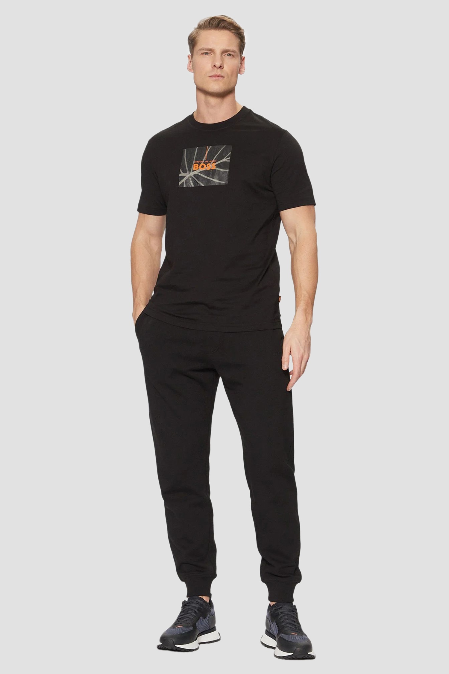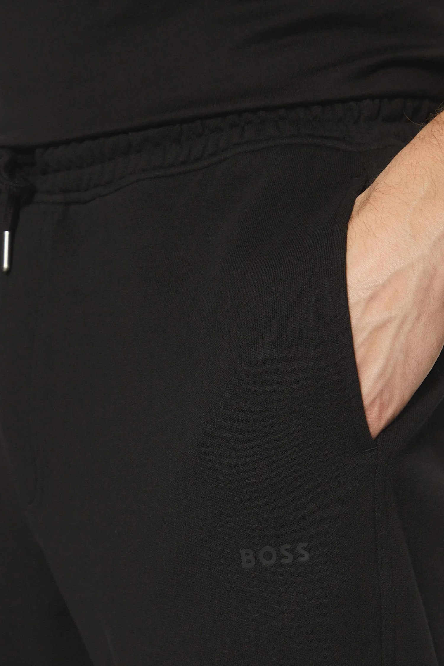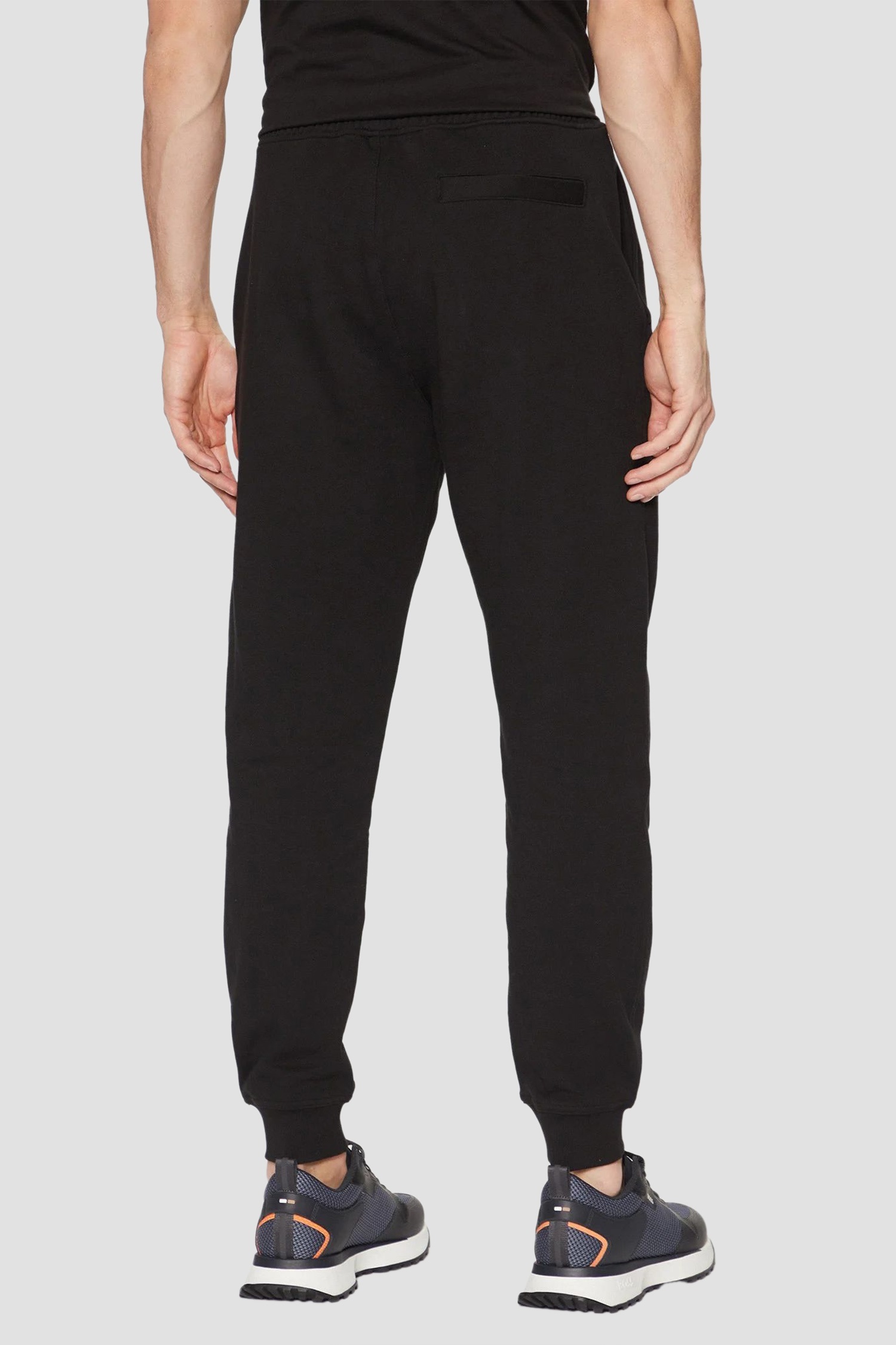 Штани BOSS чорного кольору із м’якого бавовняного джерсі забезпечують комфорт і свободу рухів. Прямий крій та еластичний пояс створюють охайний силует. Тканина щільна, приємна на дотик і стійка до зношування. Добре поєднуються з худі та кросівками або з сорочкою й жилетом.
