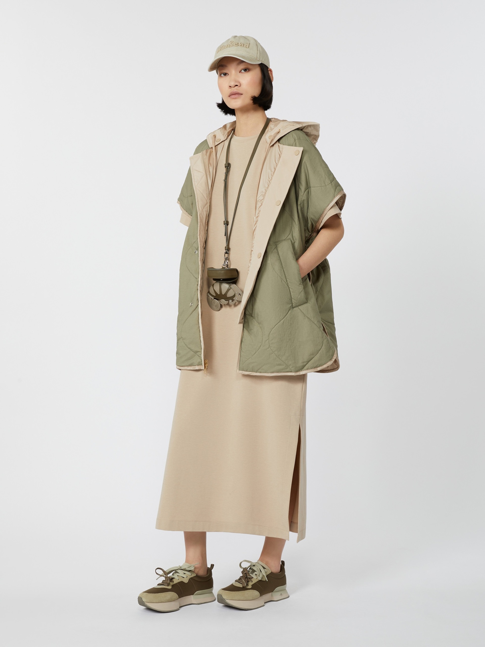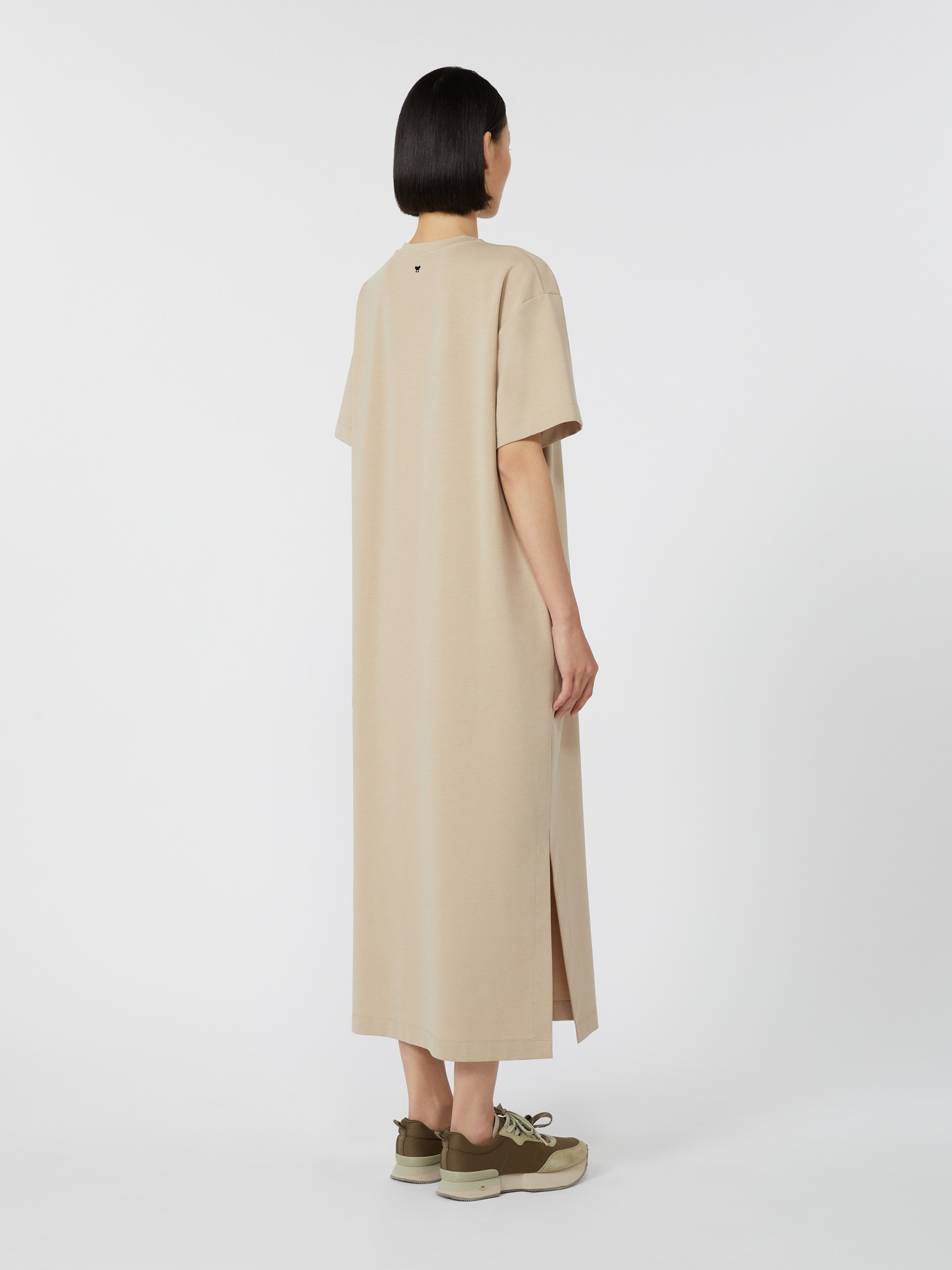 Довга трикотажна сукня Max Mara Weekend прямого крою з джерсі на основі бавовни та ліоцелу, виконана у техніці мілано-в’язки. Світло-бежевий колір, круглий виріз і розрізи знизу створюють розслаблений, але витончений образ. Вільний крій підкреслює комфорт і сучасний стиль. Поєднується з мінімалістичним взуттям — від сандалій до кедів — або з поясом для акценту на талії. Незамінна сукня для повсякденного гардероба та подорожей.