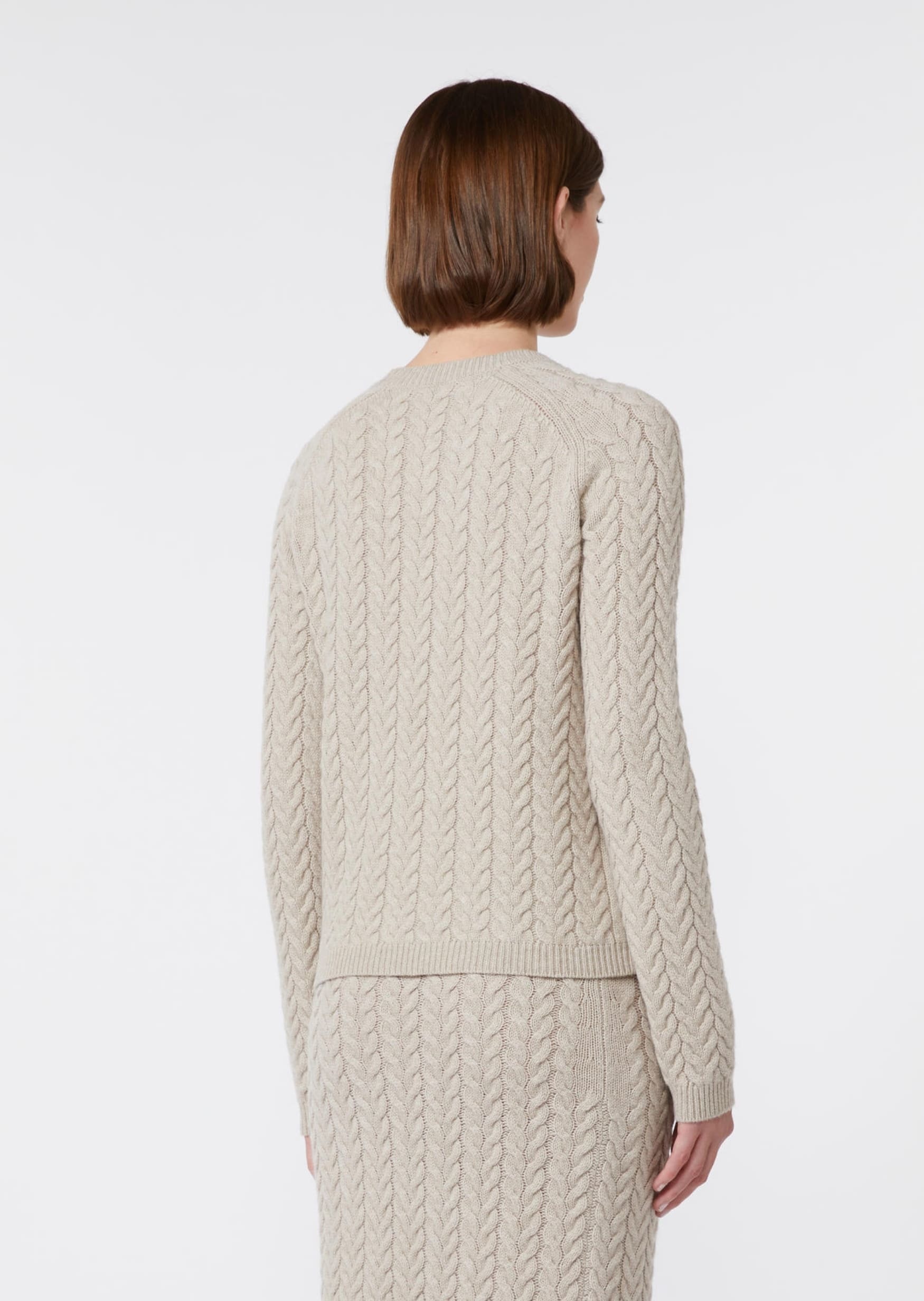 Вишуканий джемпер Max Mara S із м’якої суміші вовни та кашеміру забезпечує тепло і комфорт. Класичний фасон з акуратною горловиною підкреслює стриманий стиль і універсальність. Бежевий відтінок додає образу легку природну теплоту. Відмінно поєднується з брюками та спідницями, формуючи елегантні та практичні образи для повсякденного та офісного носіння. Якісний елемент базового гардеробу.