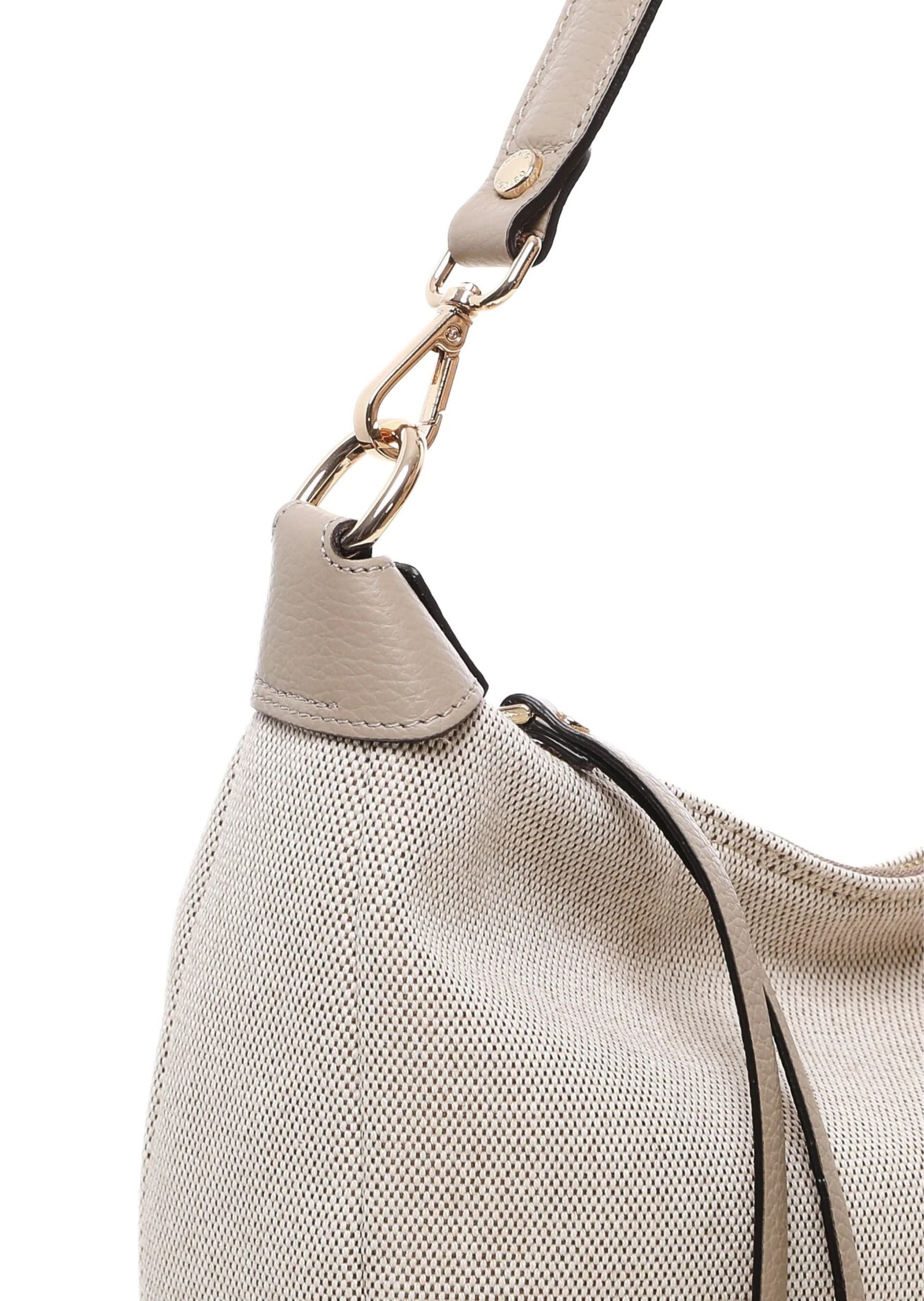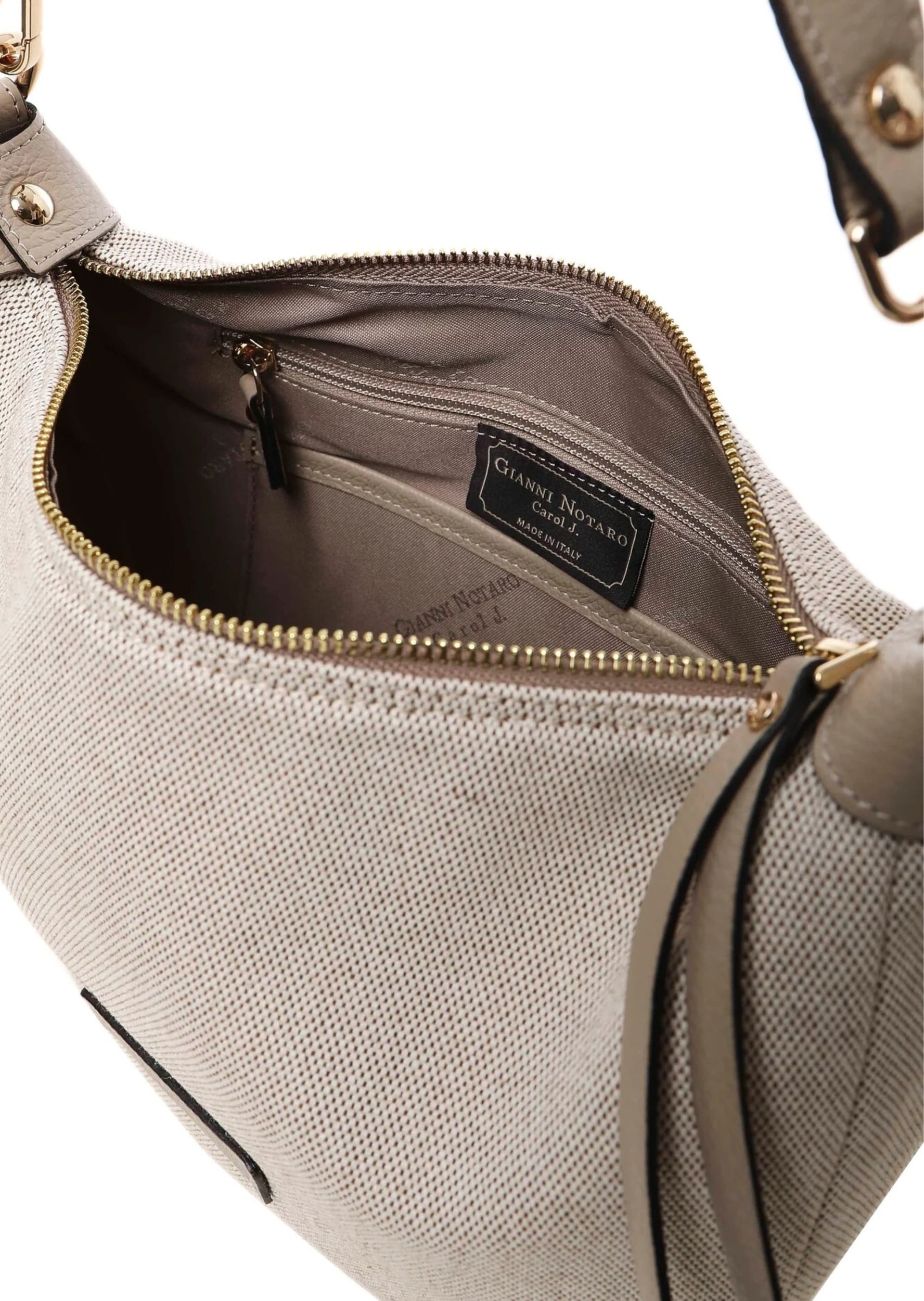 Сумка Penny від Gianni Notaro — вдале поєднання легкості, місткості та елегантного дизайну. Модель виготовлена з міцного канвасу з оздобленням із натуральної шкіри з текстурою «хаммерд» — ідеально пасує як до повсякденного стилю, так і до образів у стилі casual chic. Знімний регульований ремінець дозволяє носити сумку через плече або в руці. Всередині — нейлонова підкладка з логотипом бренду та зручна кишеня на блискавці. Золотиста фурнітура додає стриманої елегантності. Розміри 28×24×8 см — оптимальний формат на кожен день. Вироблено в Італії.