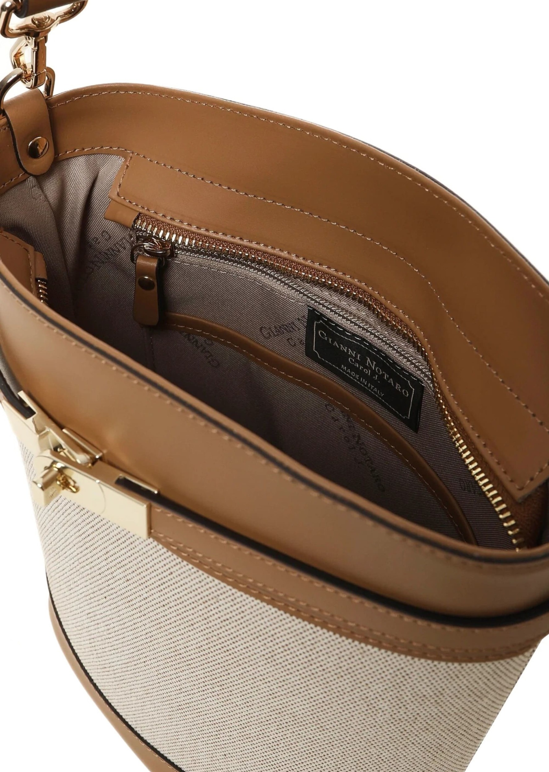 Francy Canvas від Gianni Notaro — елегантна сумка на плече, створена для тих, хто цінує поєднання стилю та зручності. Виготовлена з міцного канвасу з оздобленням зі 100% натуральної шкіри, ця модель вирізняється витриманим, але виразним дизайном. Поворотна застібка з металу золотистого кольору додає вишуканості, а регульований знімний ремінець забезпечує максимальну зручність. Усередині — кишеня на блискавці, відділення для смартфона та фірмовий логотип. Компактні розміри (20×24×12 см) роблять сумку зручною для щоденного користування. Виготовлено в Італії.