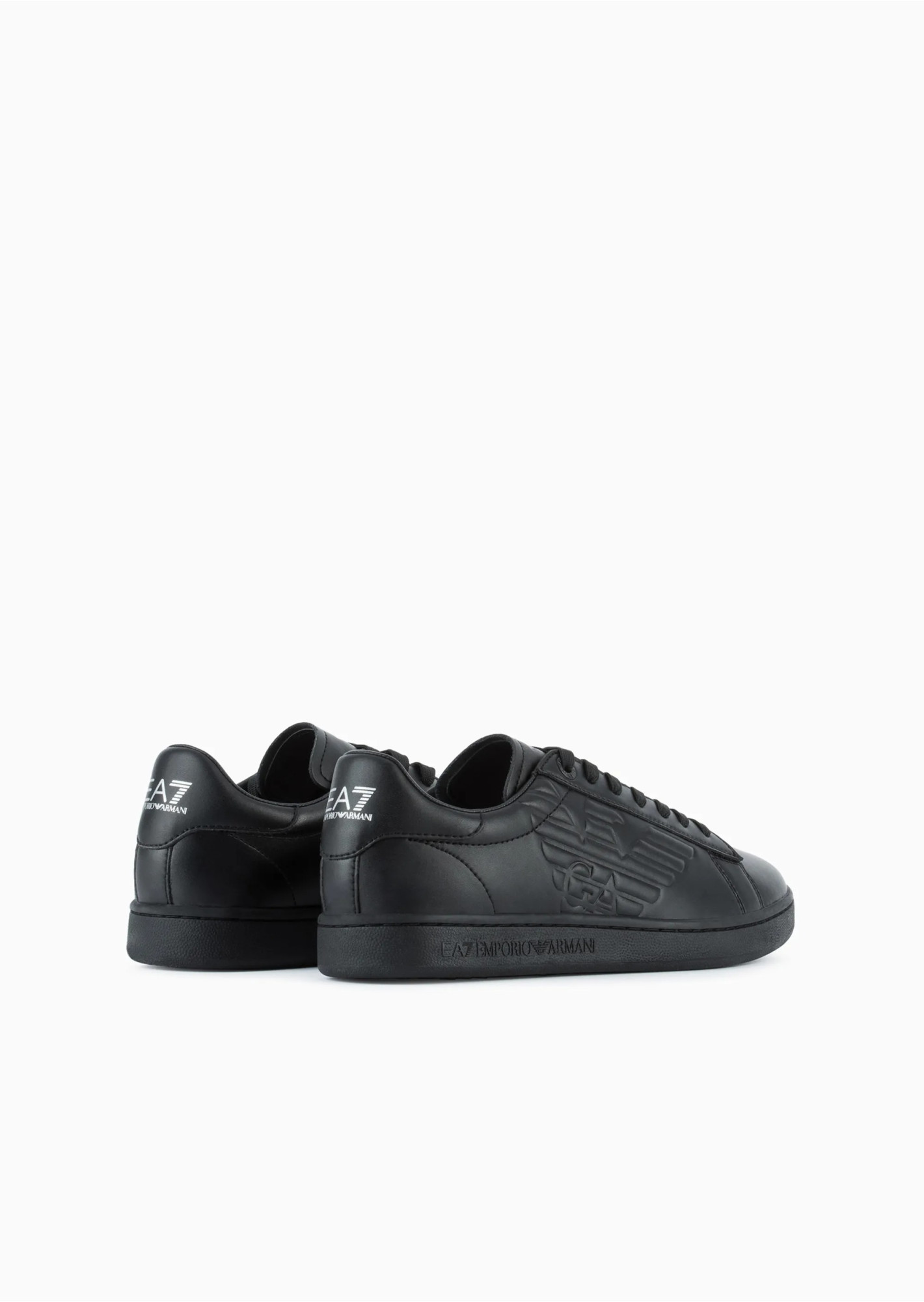 Повсякденні снікерси з натуральної шкіри з пластиковим покриттям ,логотип у вигляді EA7, підошва виконана з високоякісних матеріалів