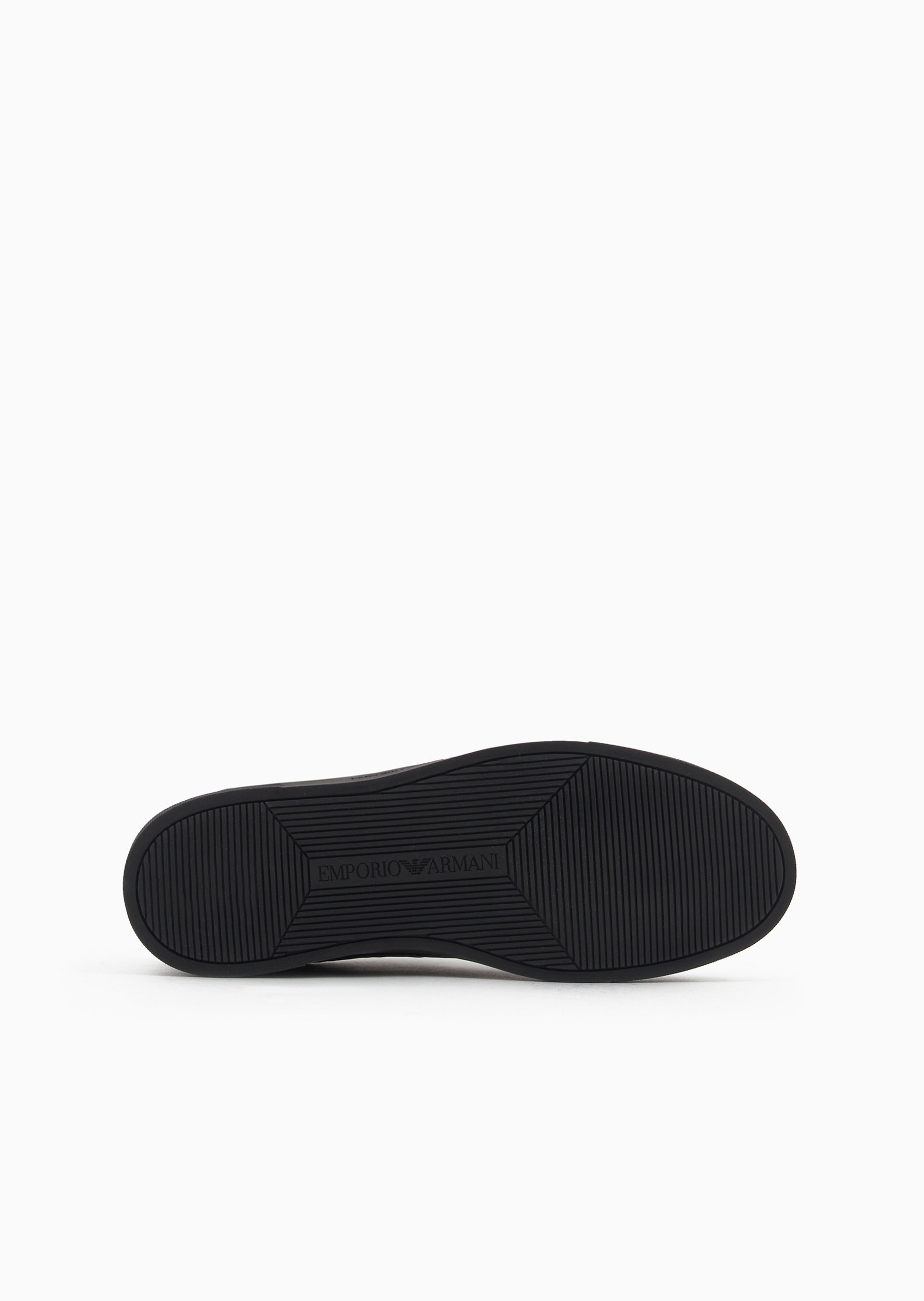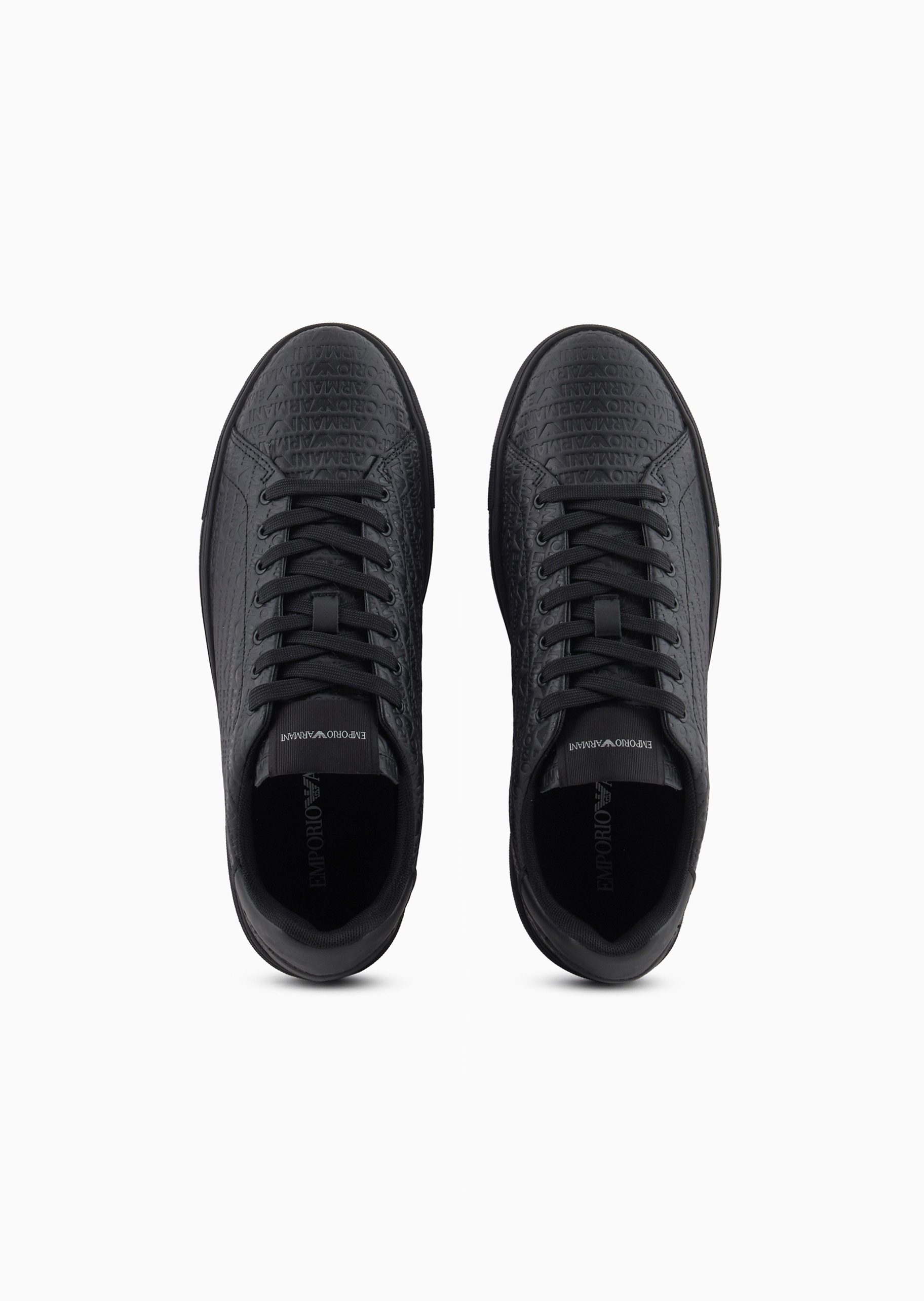 Чоловічі кеди Emporio Armani виготовлені з натуральної шкіри та прикрашені тисненням з логотипом бренду по всій поверхні, що створює фактурний і виразний ефект. Класична шнурівка та плоска підошва забезпечують надійну посадку і комфорт у повсякденному використанні. Сучасний силует і увага до деталей роблять цю модель стильним доповненням до міського гардероба — поєднання практичності, преміальної якості та впізнаваної естетики Emporio Armani.