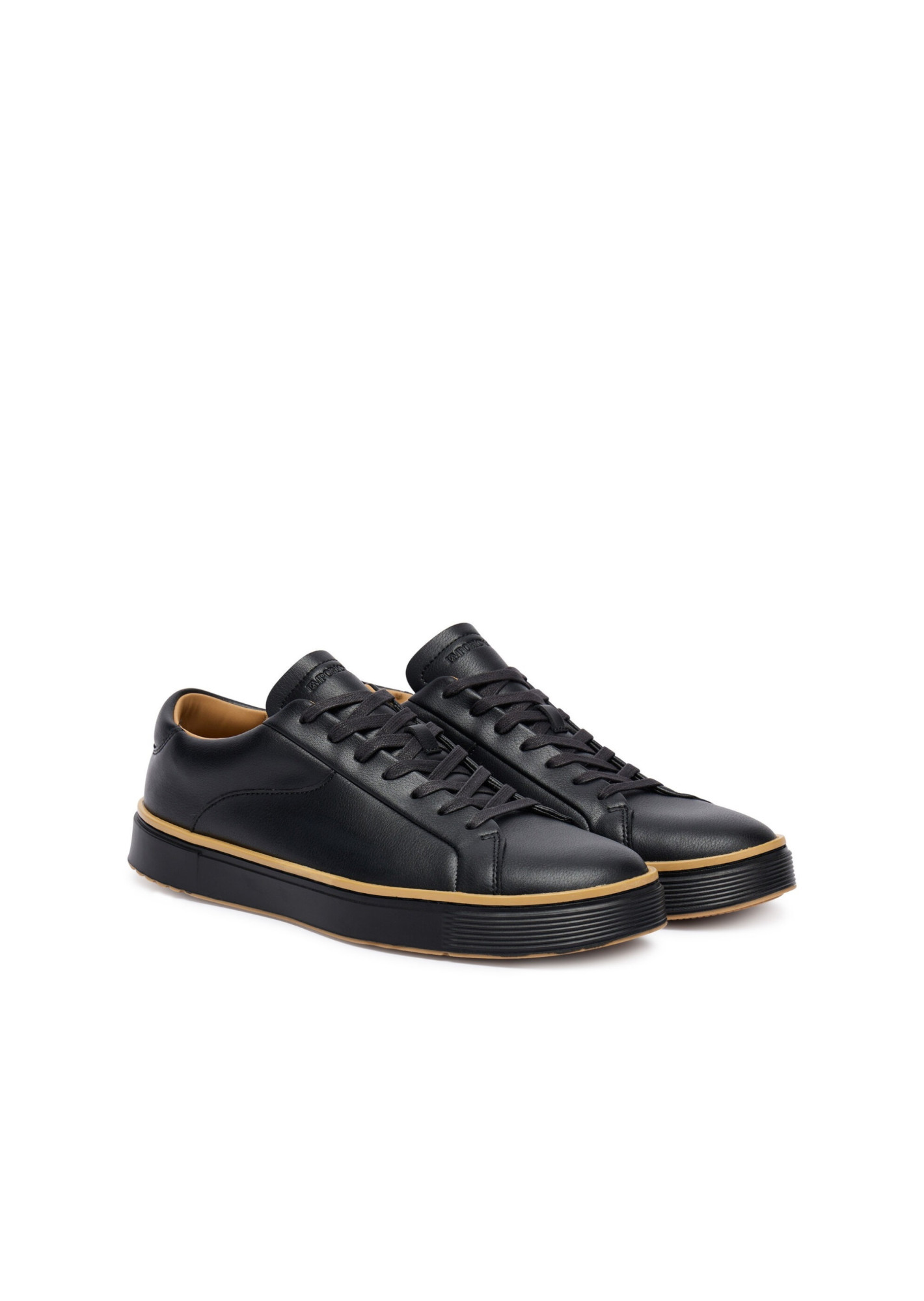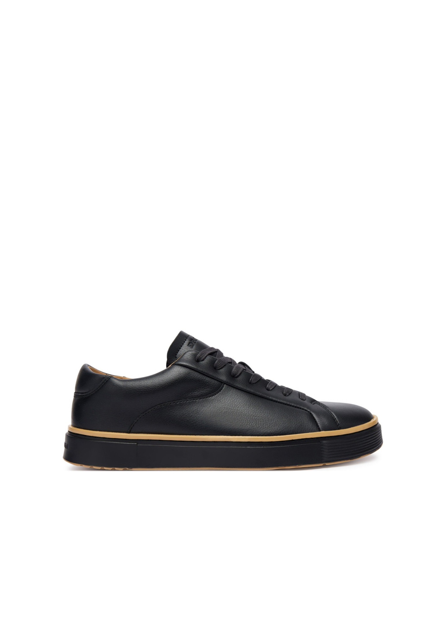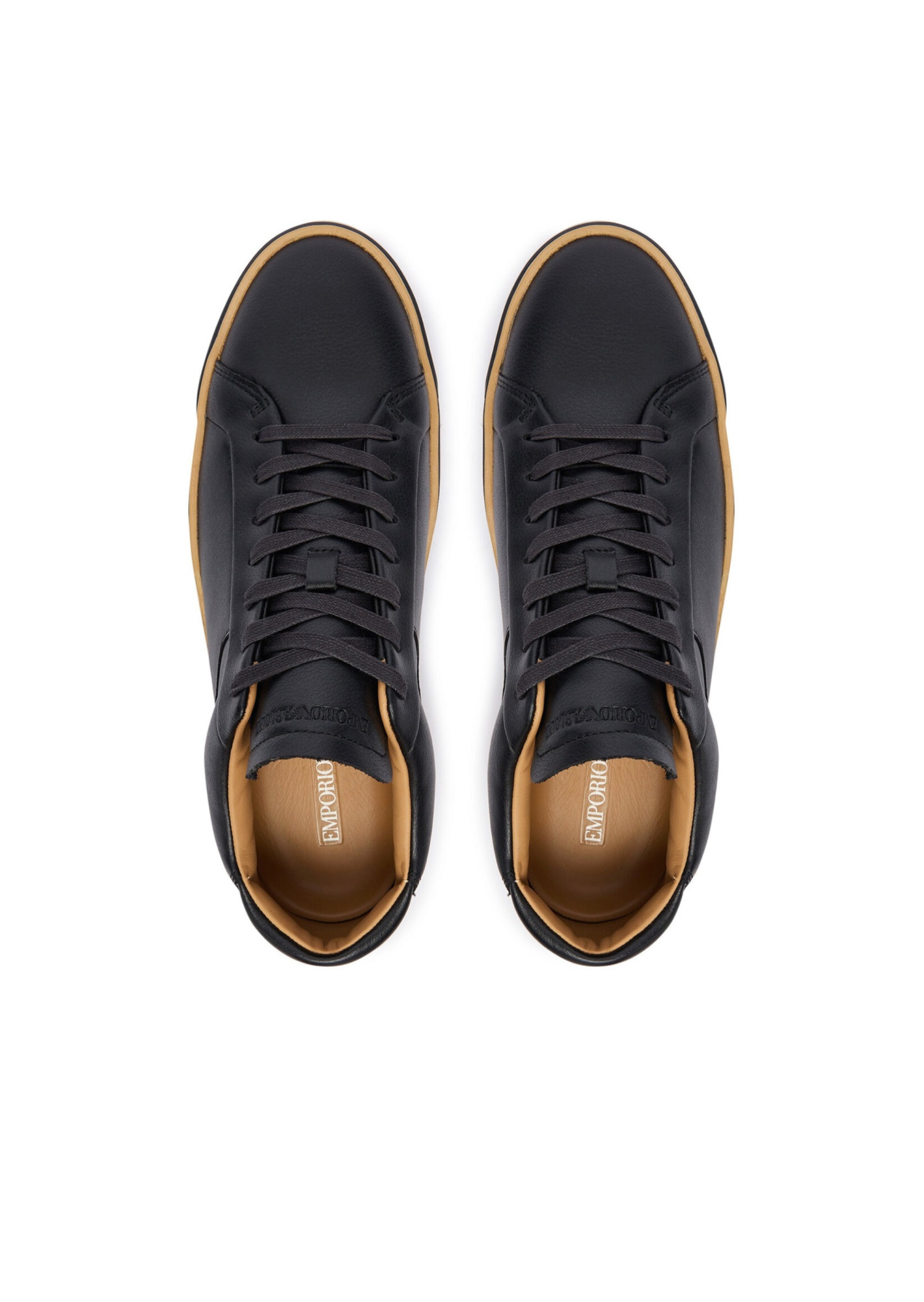 Кеды Emporio Armani виконані з натуральної лицьової шкіри у глибокому чорному відтінку. Лаконічний силует із круглим носком та пласкою підошвою підкреслює універсальність моделі, а шнурівка забезпечує зручну посадку. Підошва з якісного синтетичного матеріалу дарує комфорт і довговічність. Ідеальне рішення для повсякденного ритму у сучасному стилі. Поєднуються з джинсами, спортивними штанами та кежуал-костюмами, створюючи збалансований образ на кожен день.