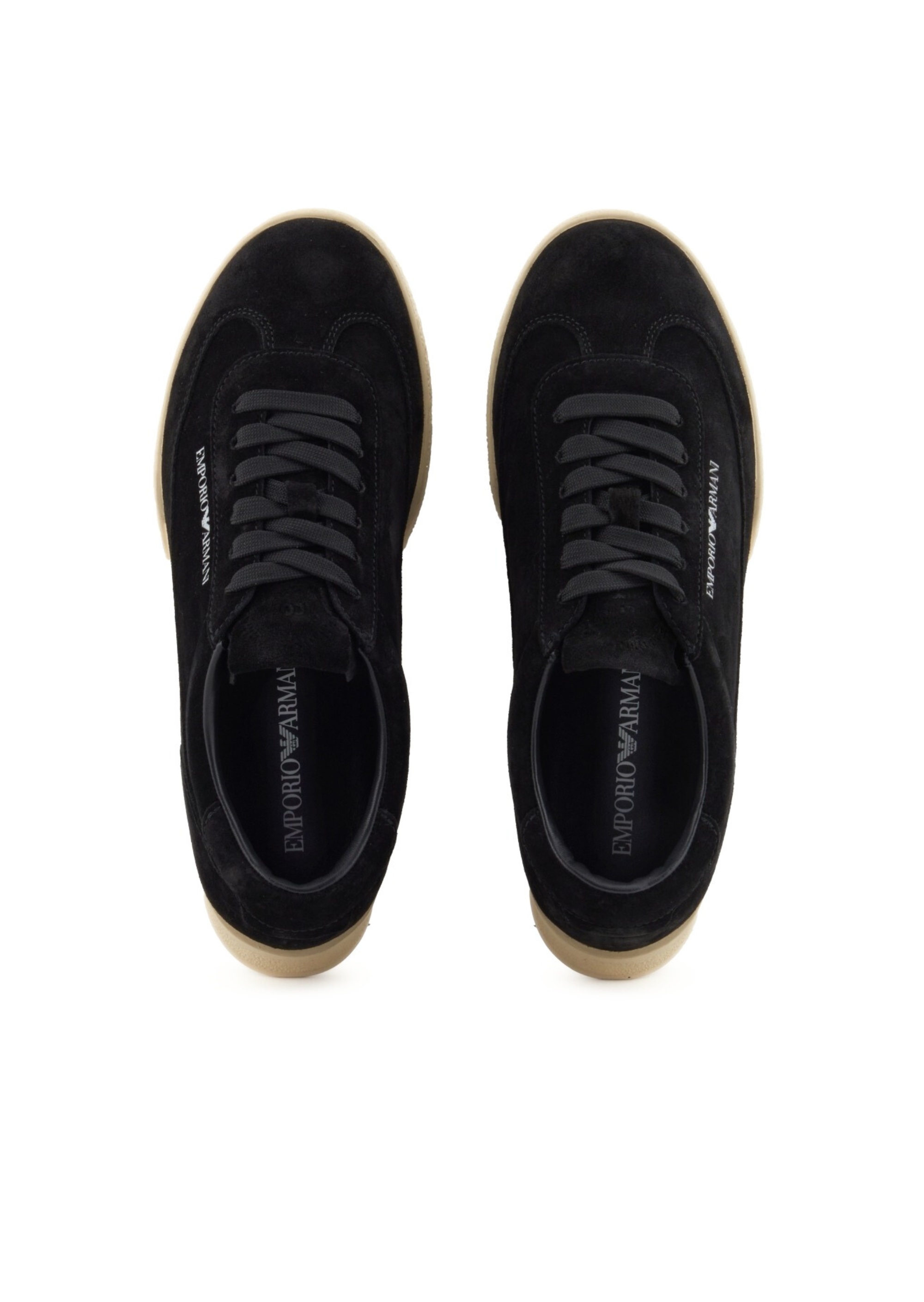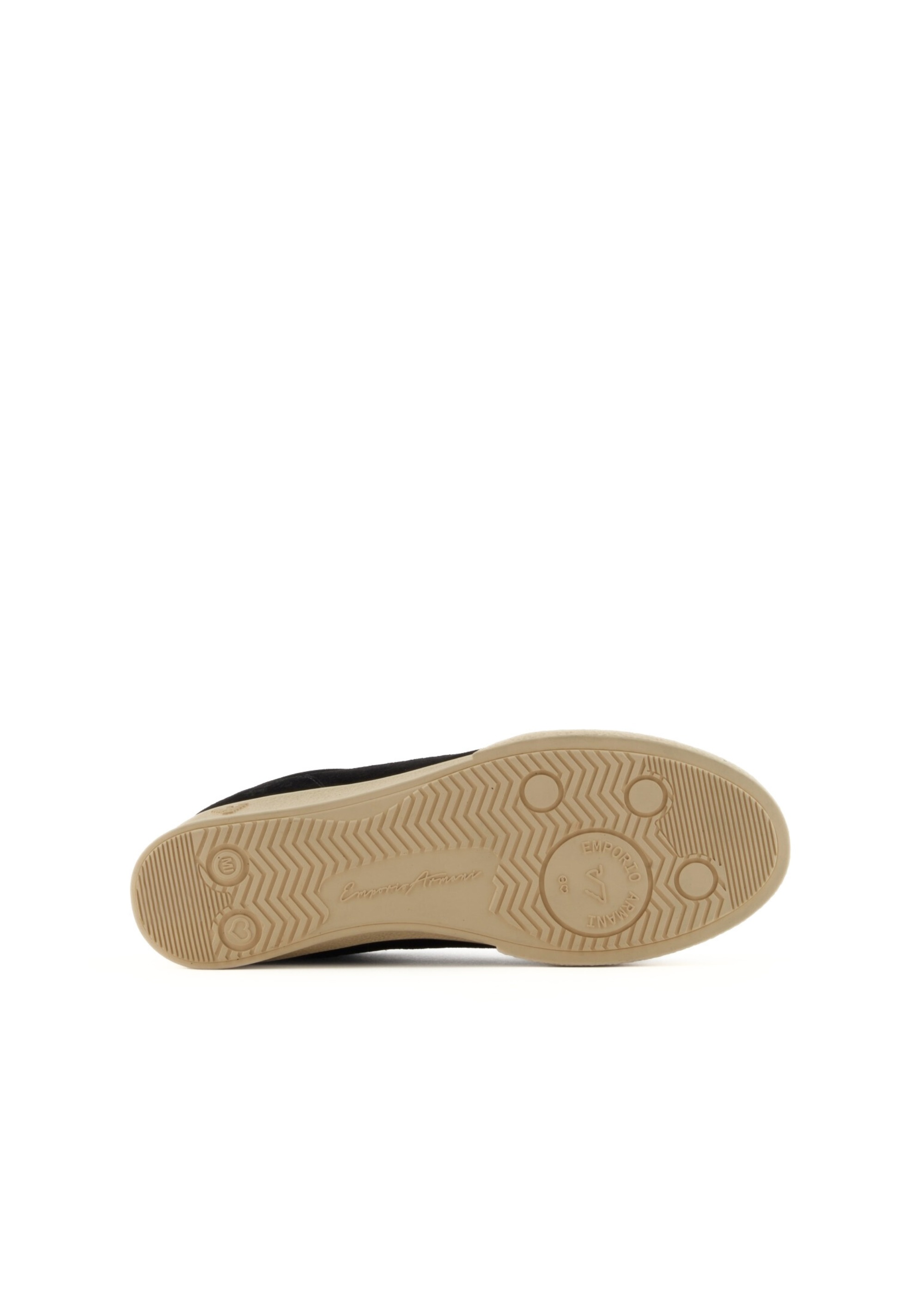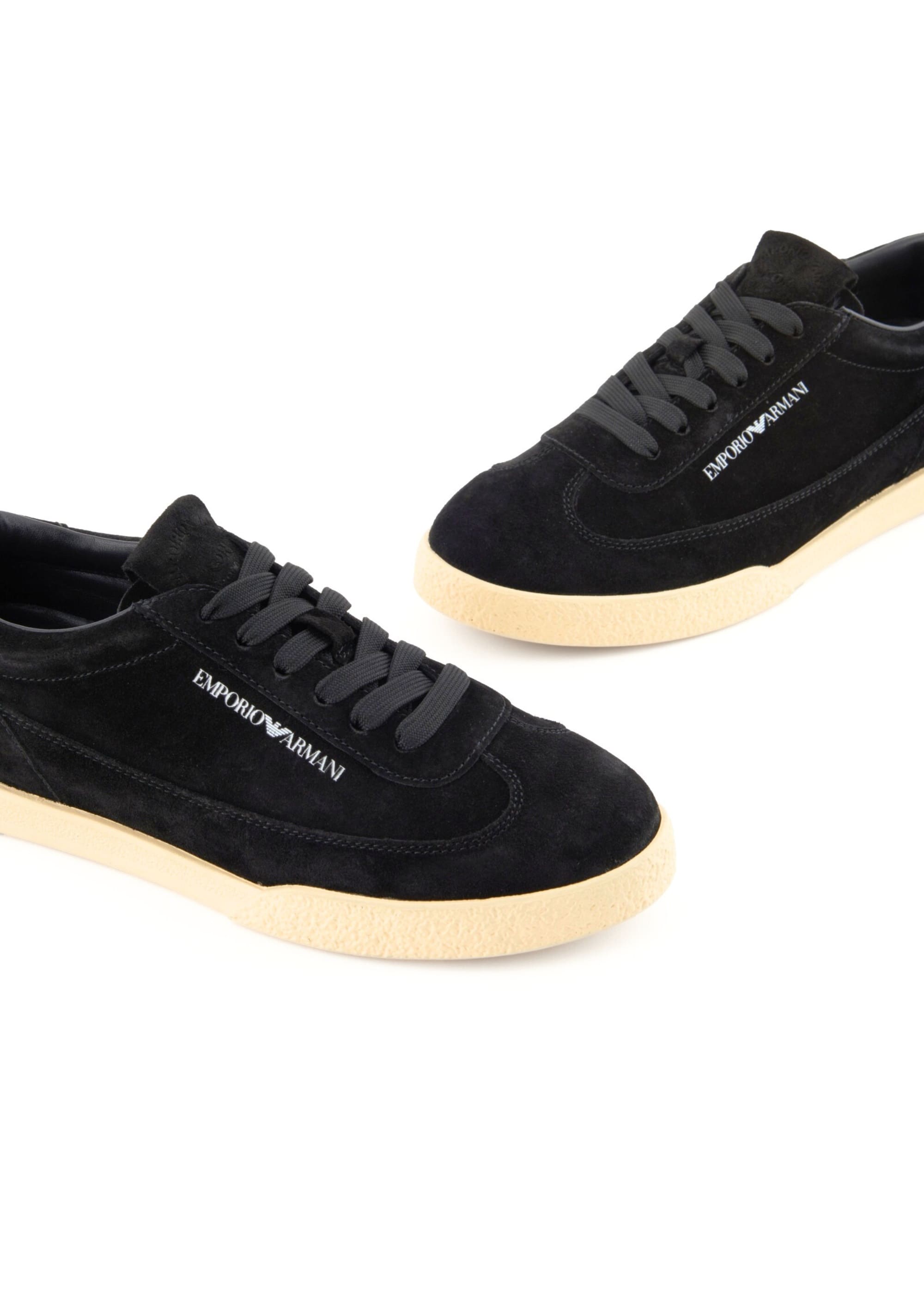 Кеди Emporio Armani у чорному відтінку виготовлені з натуральної шкіри, що вирізняється м’якістю, міцністю та довговічністю. Лаконічний силует із чистими лініями підкреслює сучасний характер моделі, а гнучка підошва забезпечує комфорт і легкість упродовж дня. Універсальний чорний колір робить пару базовою в гардеробі та дозволяє легко поєднувати її з джинсами, брюками чінос і футболками. Ці кеди Emporio Armani стають стильним елементом повсякденних образів, поєднуючи практичність і преміальний стиль.