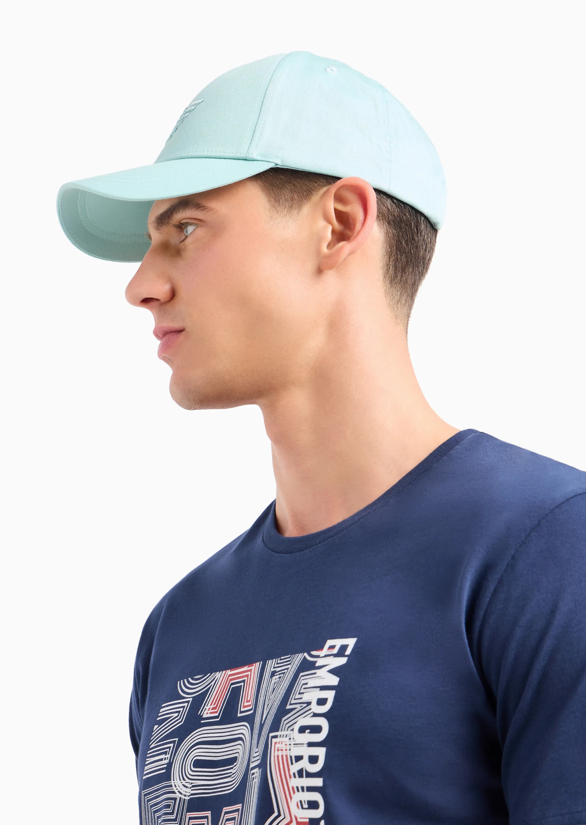 Кепка фасону baseball із колекції Emporio Armani Underwear. Модель виготовлена із матеріалу з аплікацією.