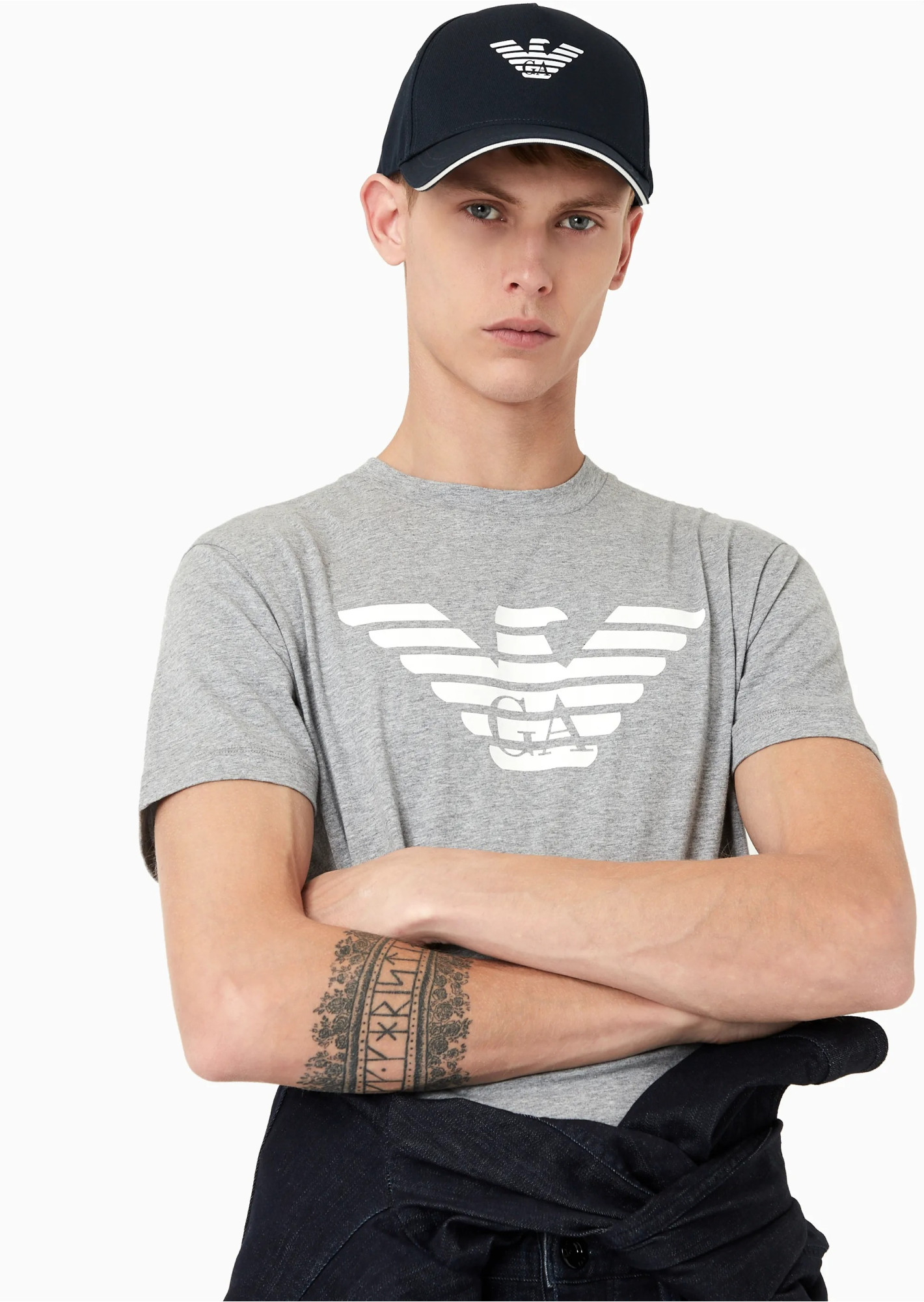 Бейсболка з бавовняної тканини з культовим принтом орла. Цей аксесуар належить до колекції Essentials, капсульної колекції Emporio Armani.