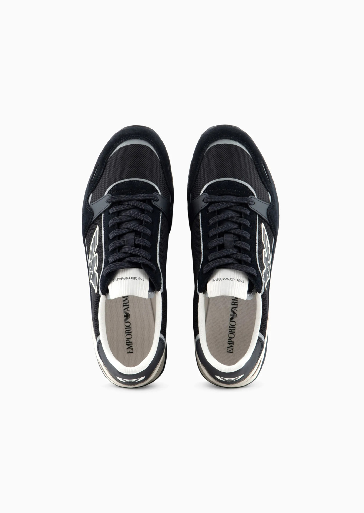 Кросівки із сітки та замші на шнурівці. Бічна нашивка із великим орлом. Підошва виготовлена із 100% гуми з контрастним протектором.