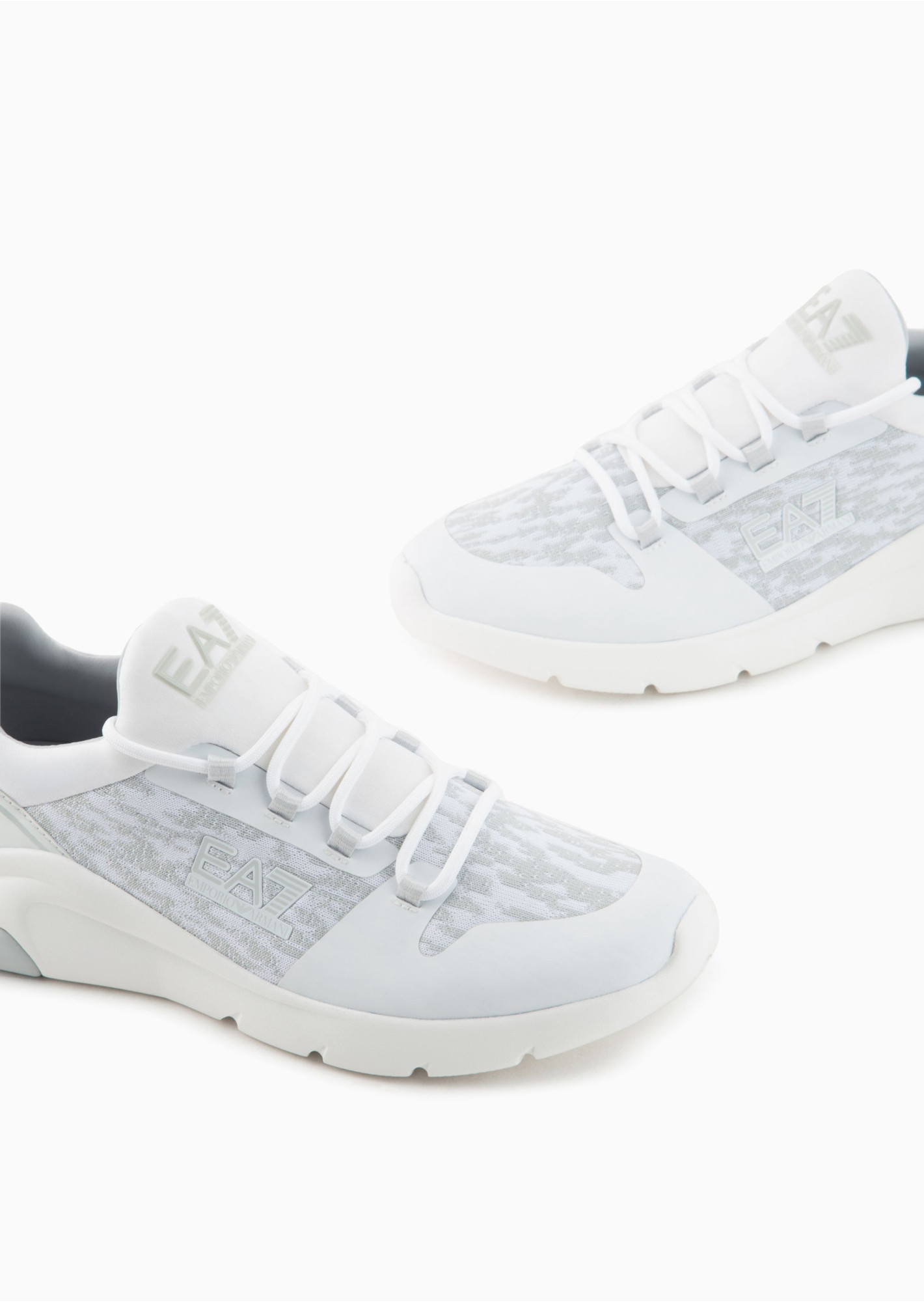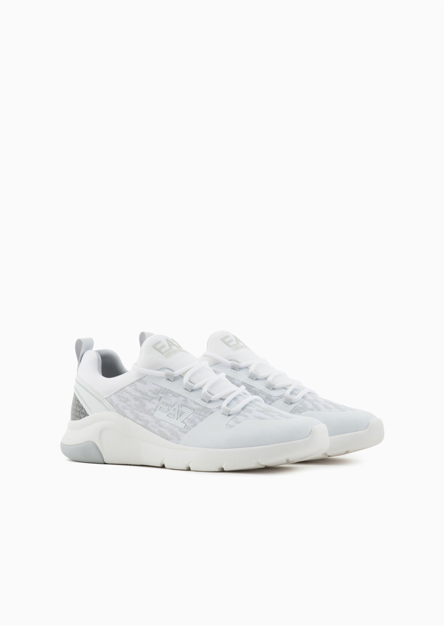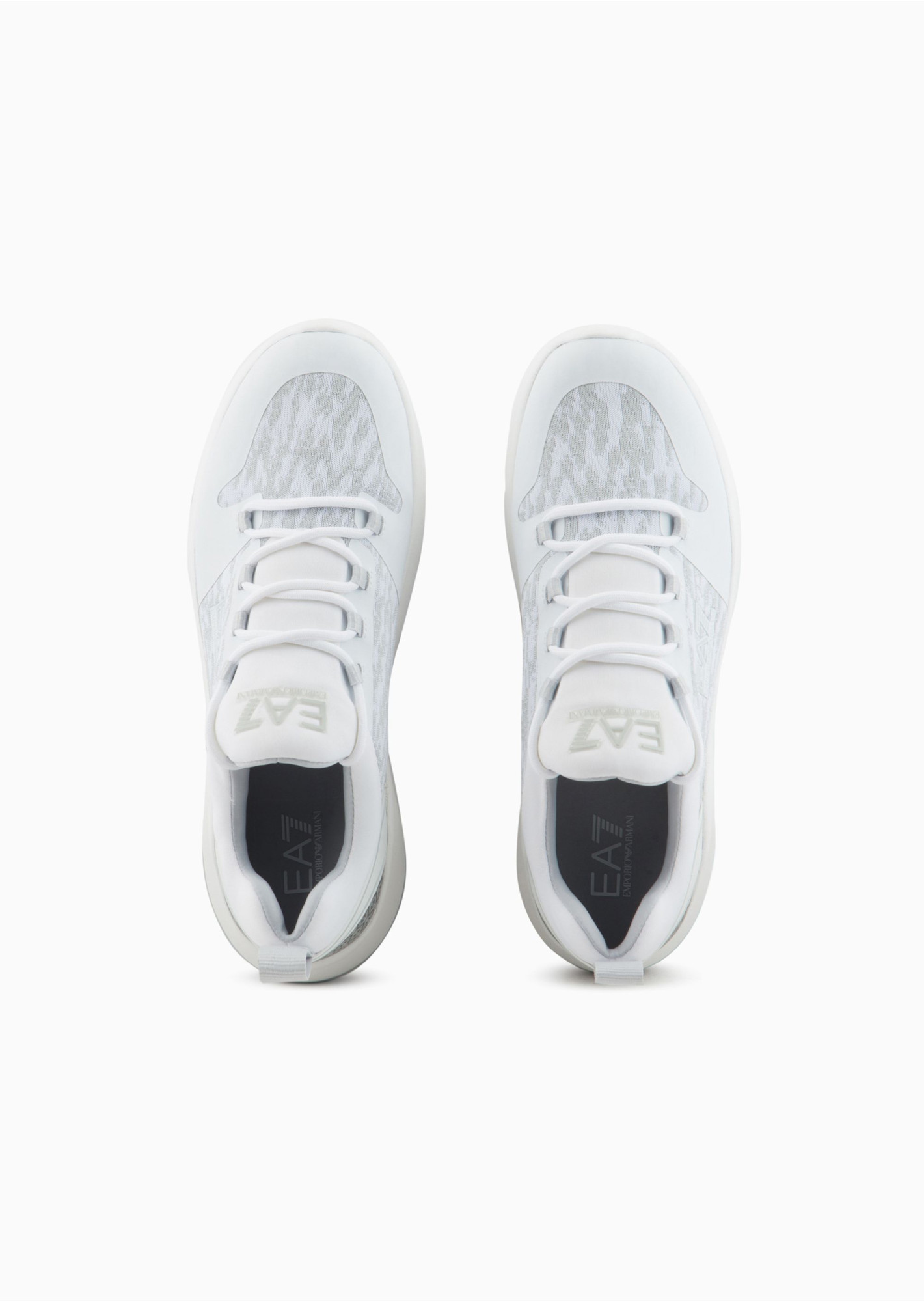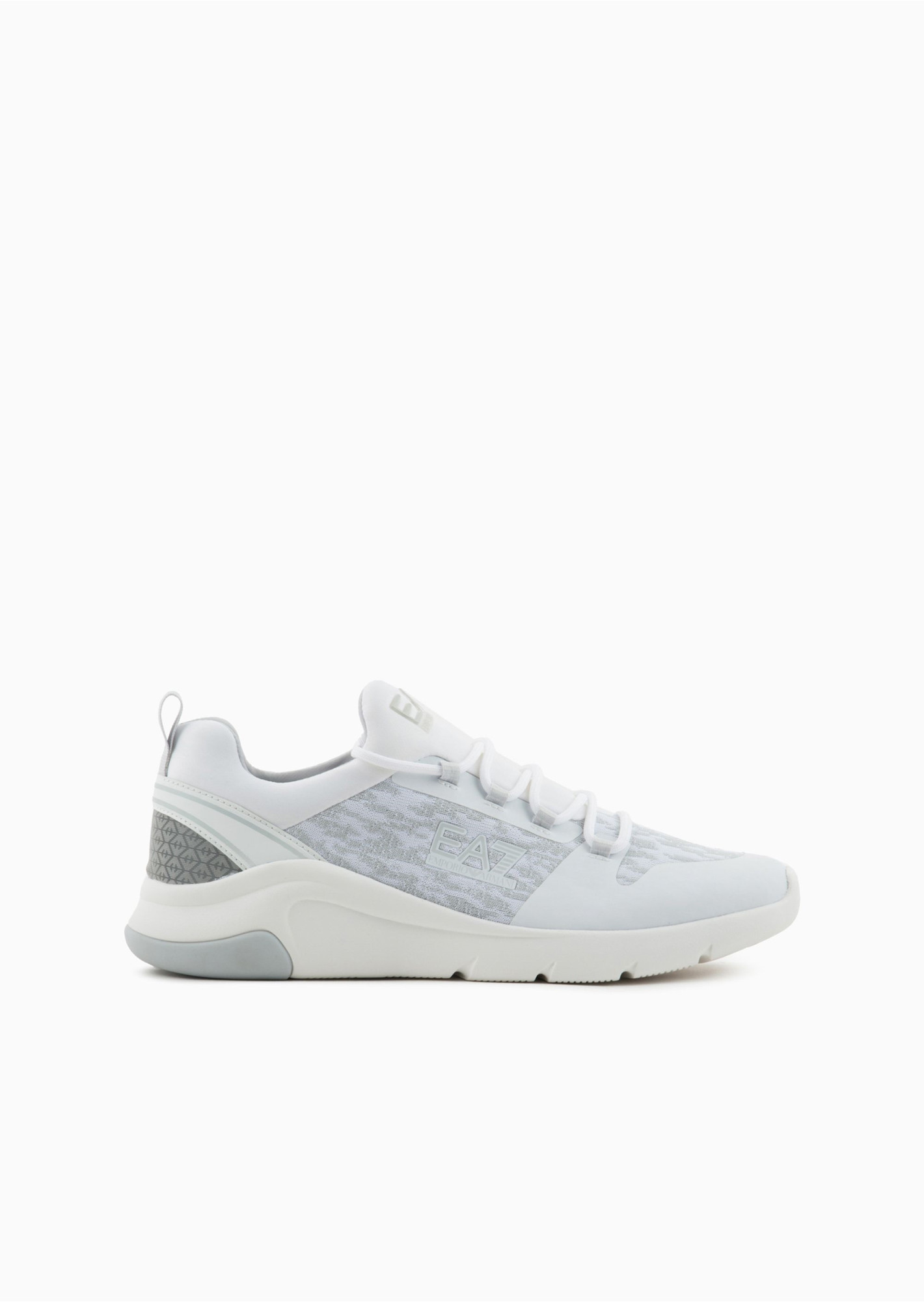 Універсальні кросівки з дихаючої, комфортної тканини. Стиль підібраний контрастними деталями, логотипом EA7 та світловідбиваючою тканинною вставкою.
