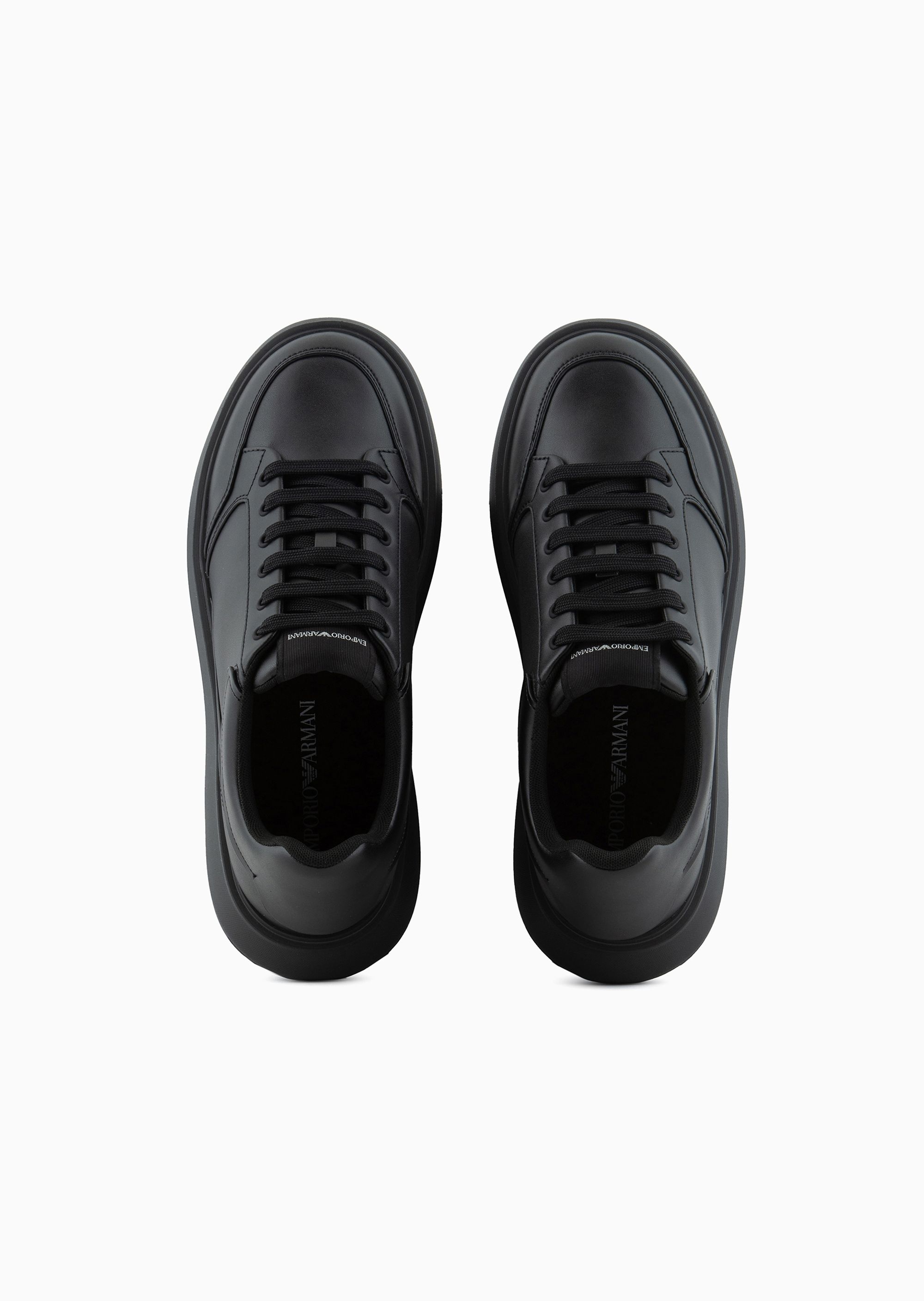 Шкіряні кросівки зі шнурівкою з логотипом Emporio Armani. Цей сучасний стиль визначається сміливими обсягами, зі збільшеною підошвою із надлегкого EVA, що робить взуття винятково легким та гнучким. Ці кросівки легко переходять від повсякденних моментів до більш елегантних.