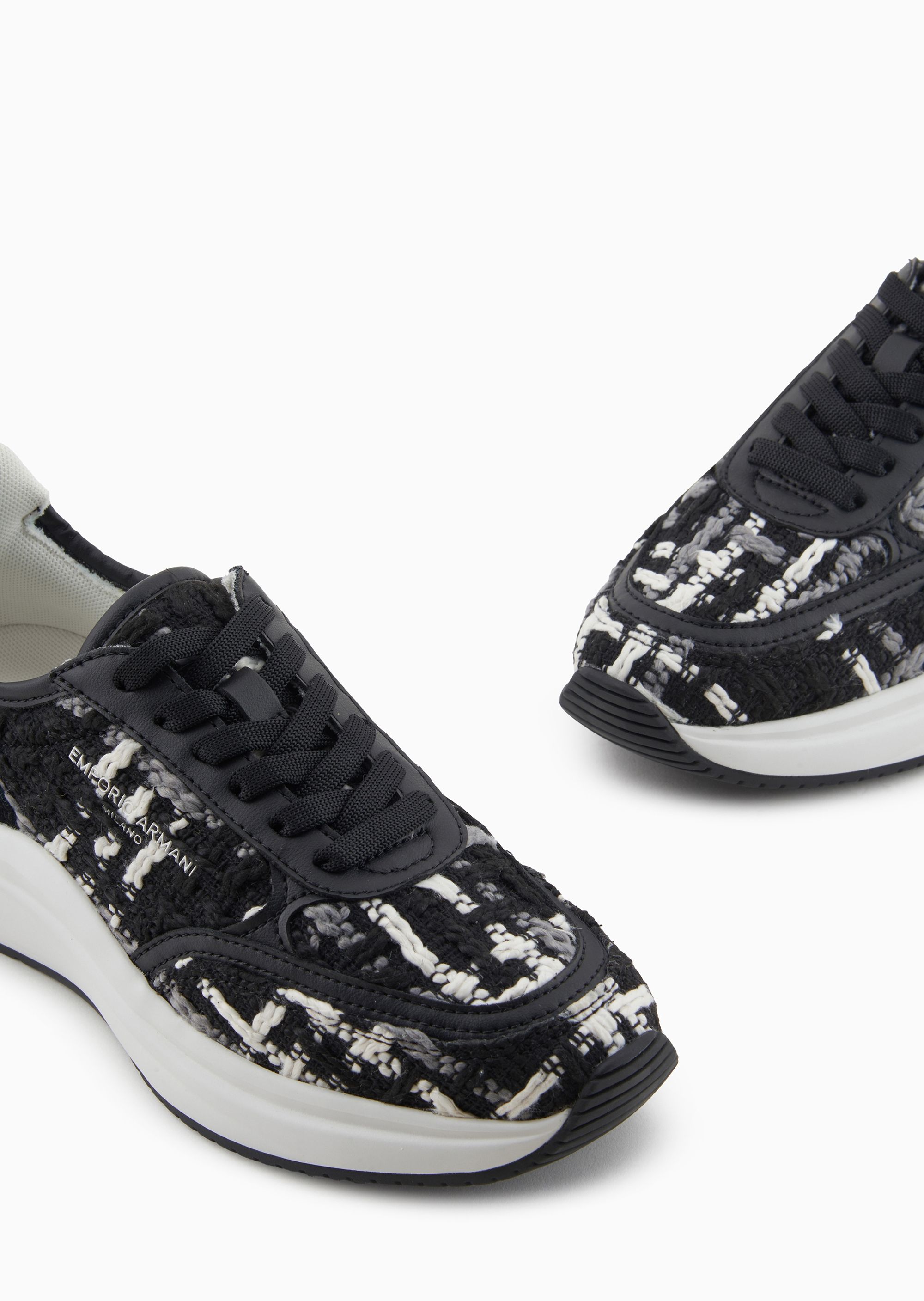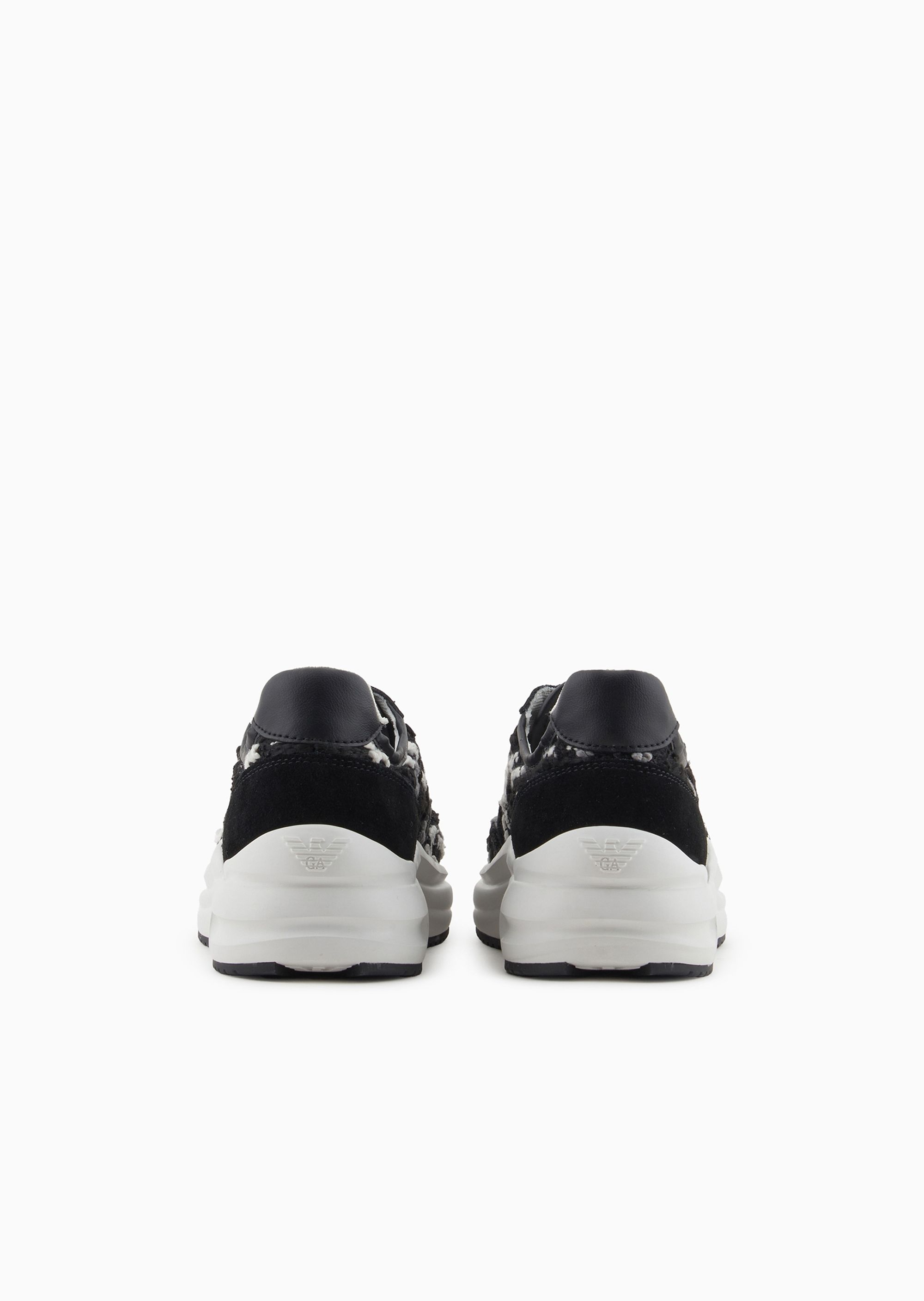 Кросівки з тканини букле зі шкіряним задником та оздобленням, виконані в сучасному міському стилі.