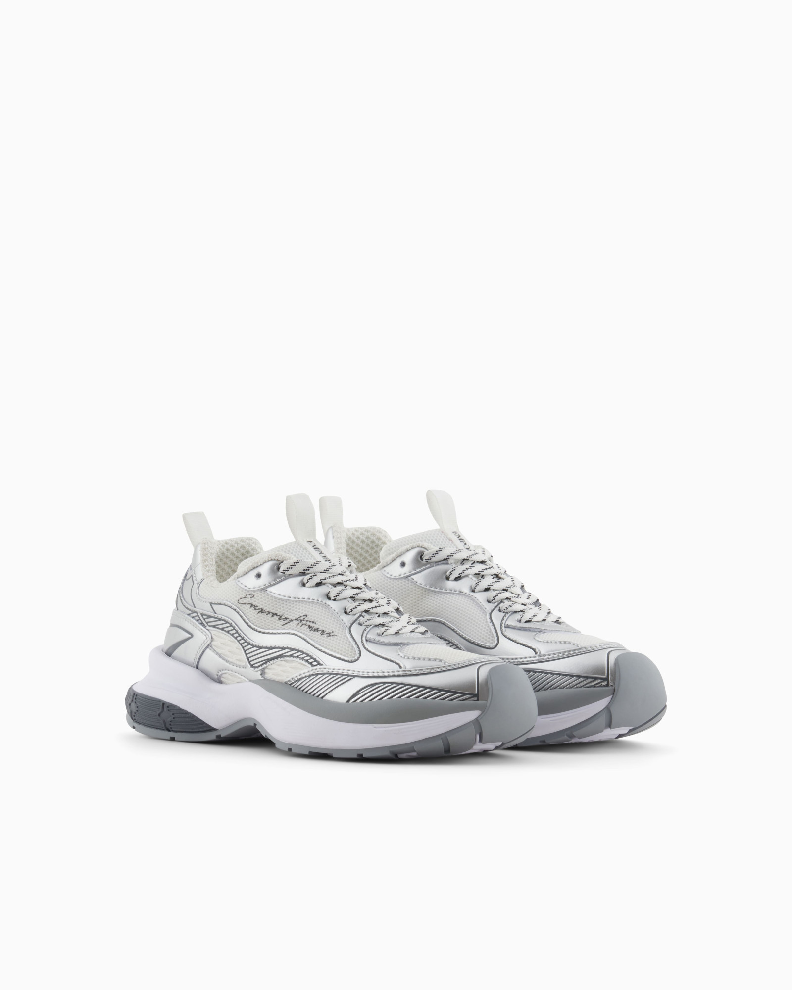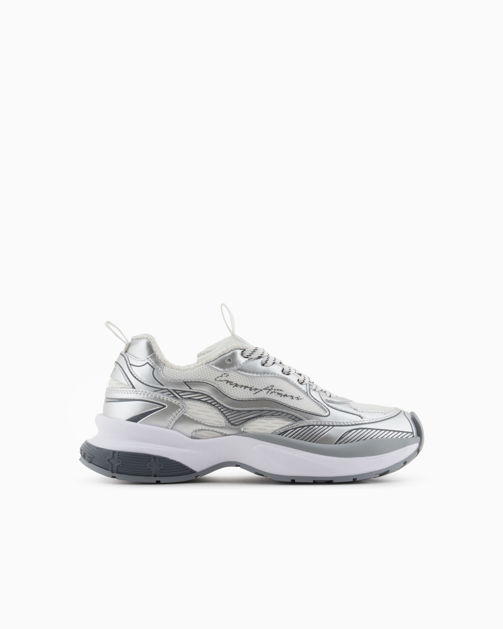 Кросівки з сітчастим верхом і деталями, що ламінують, додають характер стилю. Висока підошва забезпечує додаткову амортизацію. Кросівки Emporio Armani поєднують спортивну функціональність та преміальний стиль. Кросівки легко поєднуються з джинсами, спортивними штанами або шортами у повсякденних та активних образах. Виразний силует та продумані деталі роблять модель актуальною для міського ритму.
