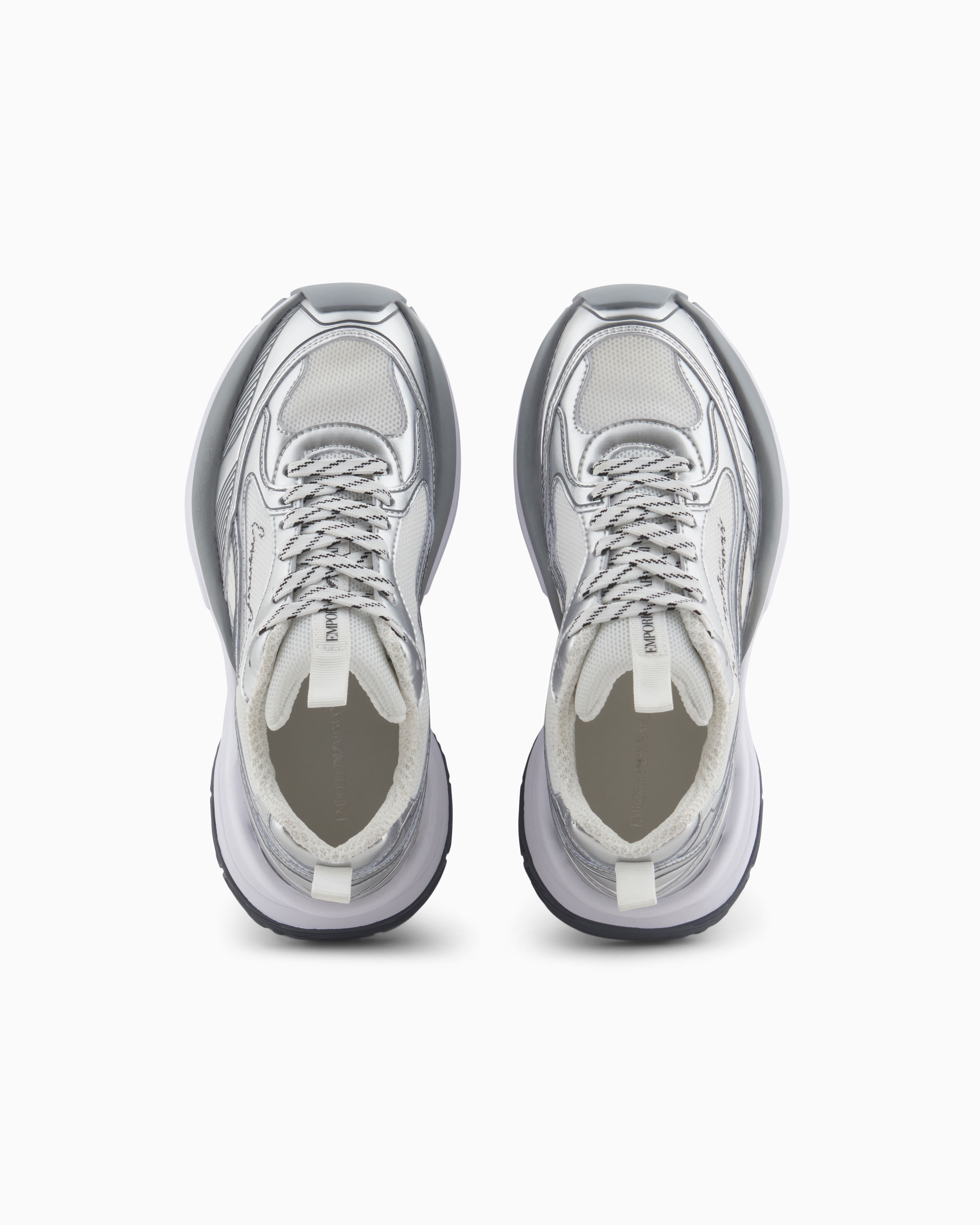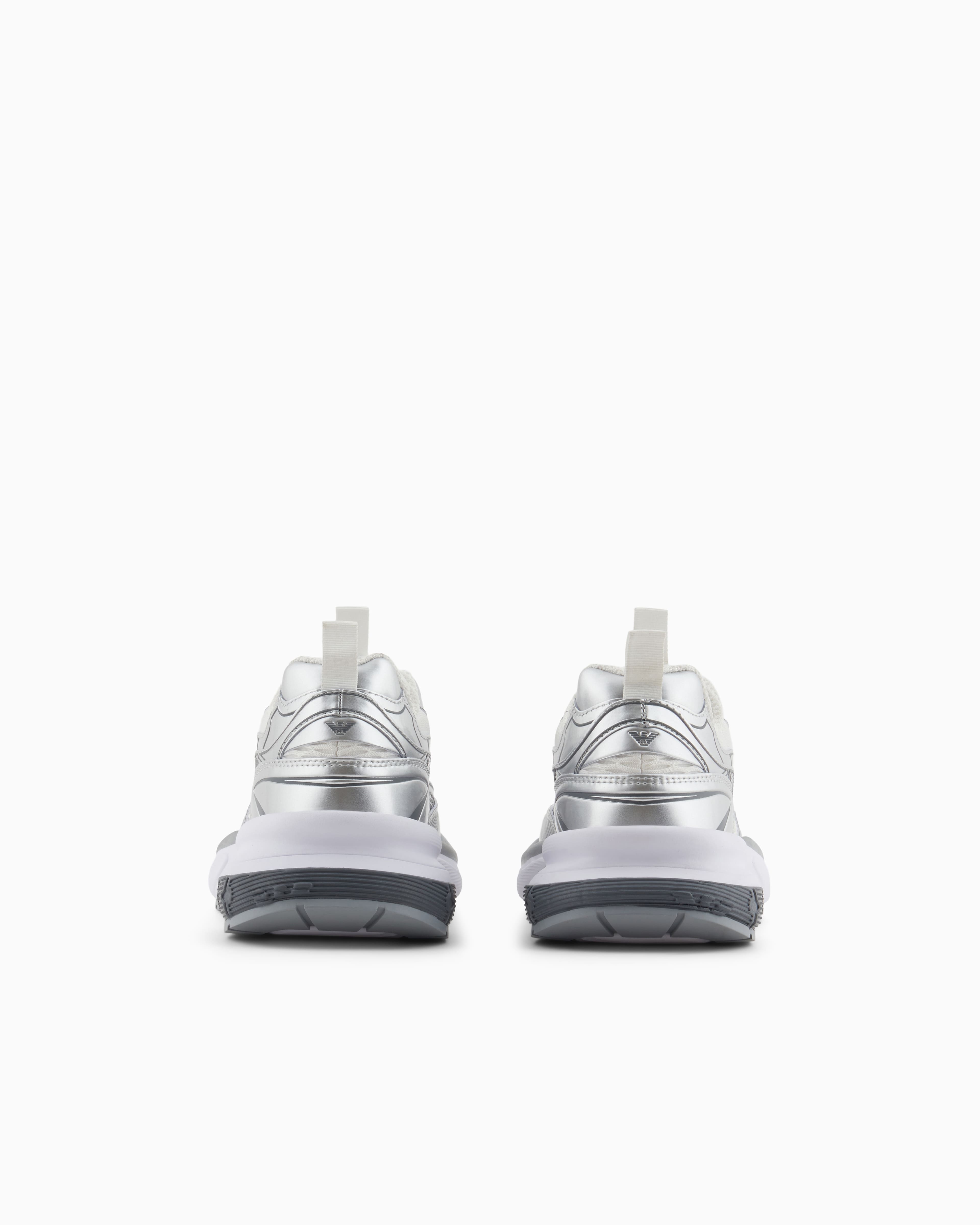 Кросівки з сітчастим верхом і деталями, що ламінують, додають характер стилю. Висока підошва забезпечує додаткову амортизацію. Кросівки Emporio Armani поєднують спортивну функціональність та преміальний стиль. Кросівки легко поєднуються з джинсами, спортивними штанами або шортами у повсякденних та активних образах. Виразний силует та продумані деталі роблять модель актуальною для міського ритму.
