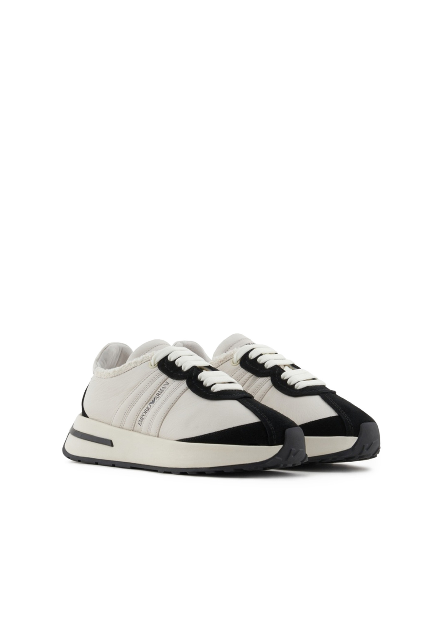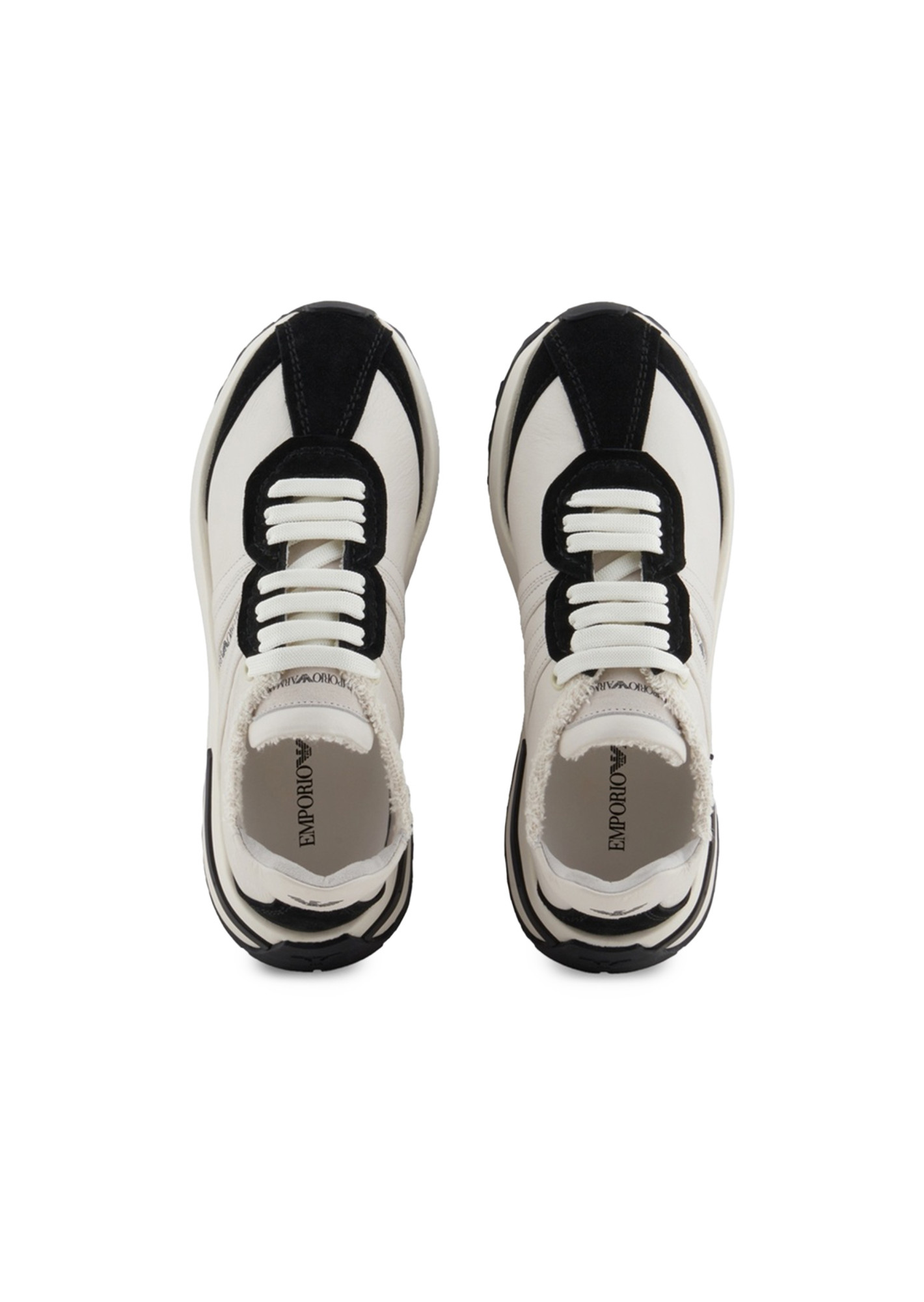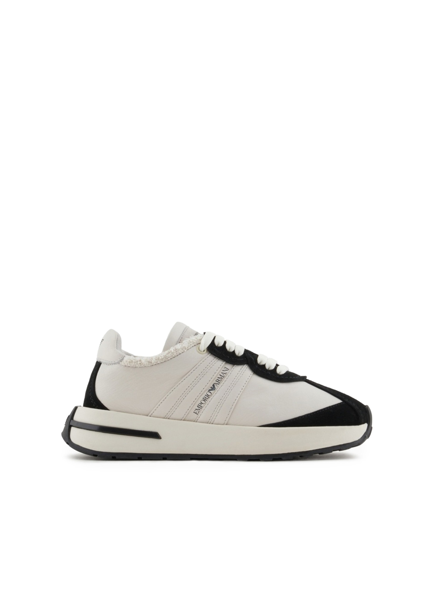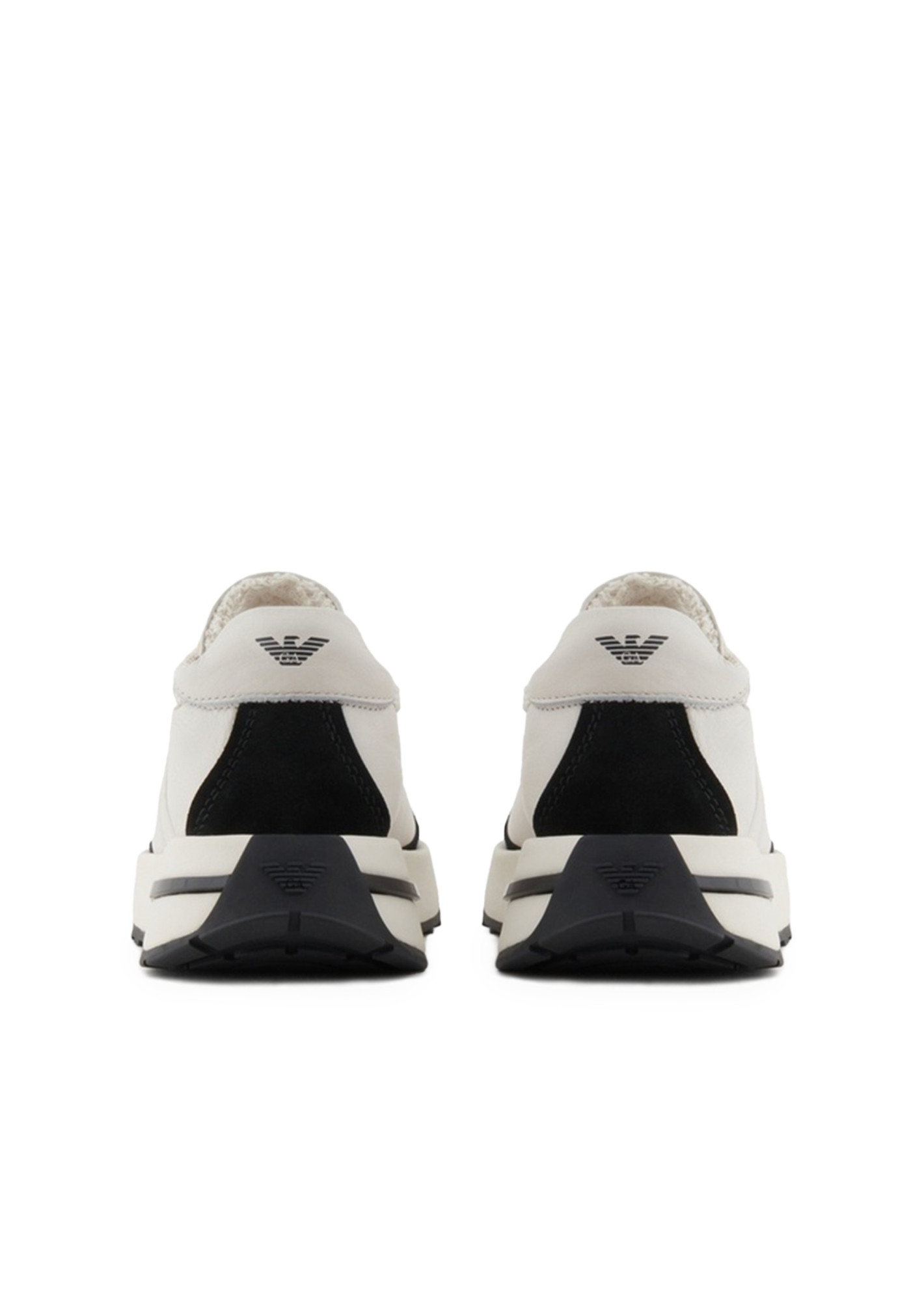 Кросівки Emporio Armani поєднують спортивну функціональність і преміальний стиль. Модель виготовлена з комбінації натуральної шкіри та текстилю, що забезпечує міцність, легкість і комфорт під час носіння. Контрастні вставки та фірмовий логотип на боковій частині підкреслюють динамічний характер дизайну. Чорно-біла кольорова гама робить пару універсальною. Висока підошва гарантує додаткову амортизацію. Кросівки легко поєднуються з джинсами, спортивними штанами або шортами у повсякденних та активних образах. Виразний силует і продумані деталі роблять модель актуальною для міського ритму.