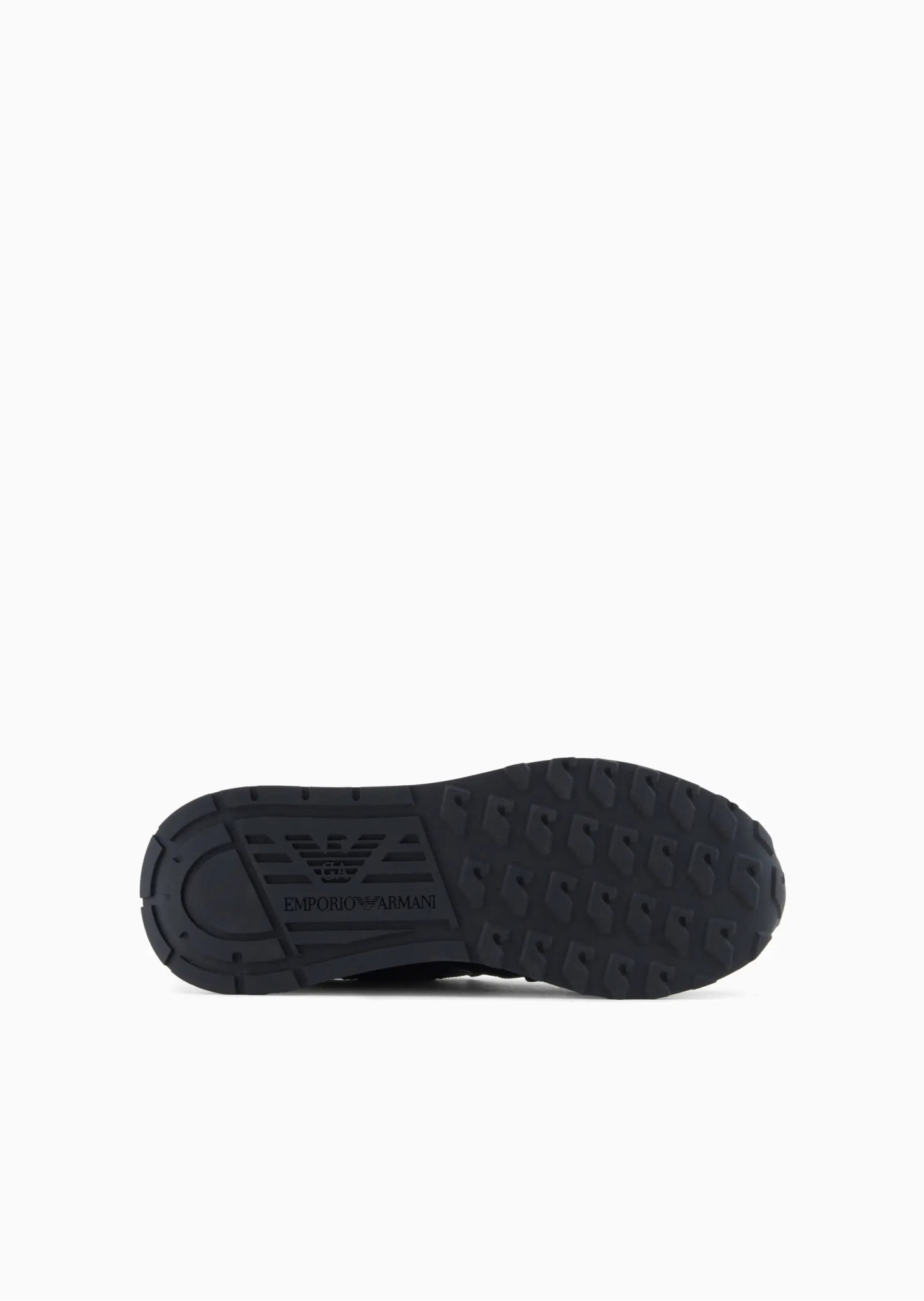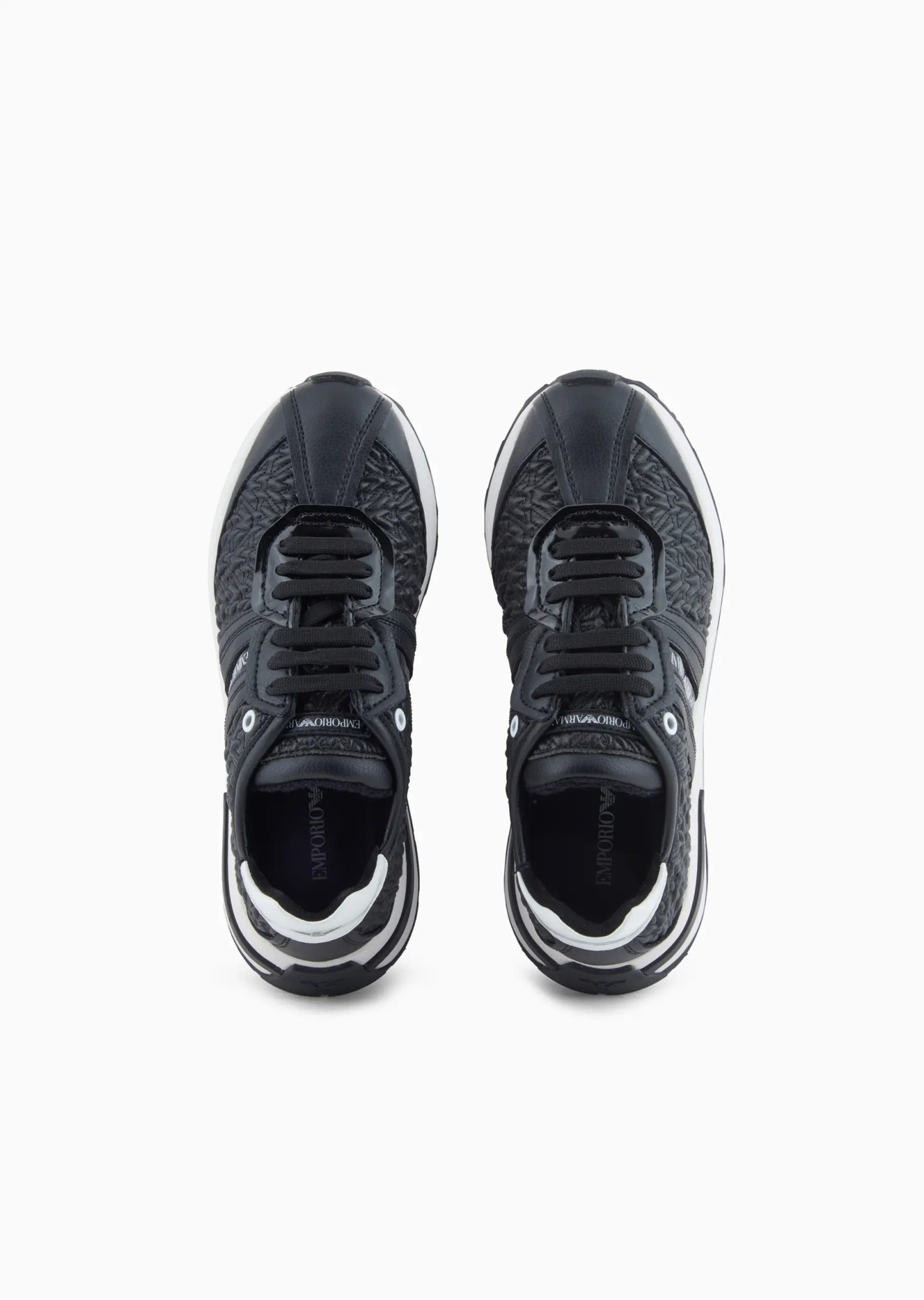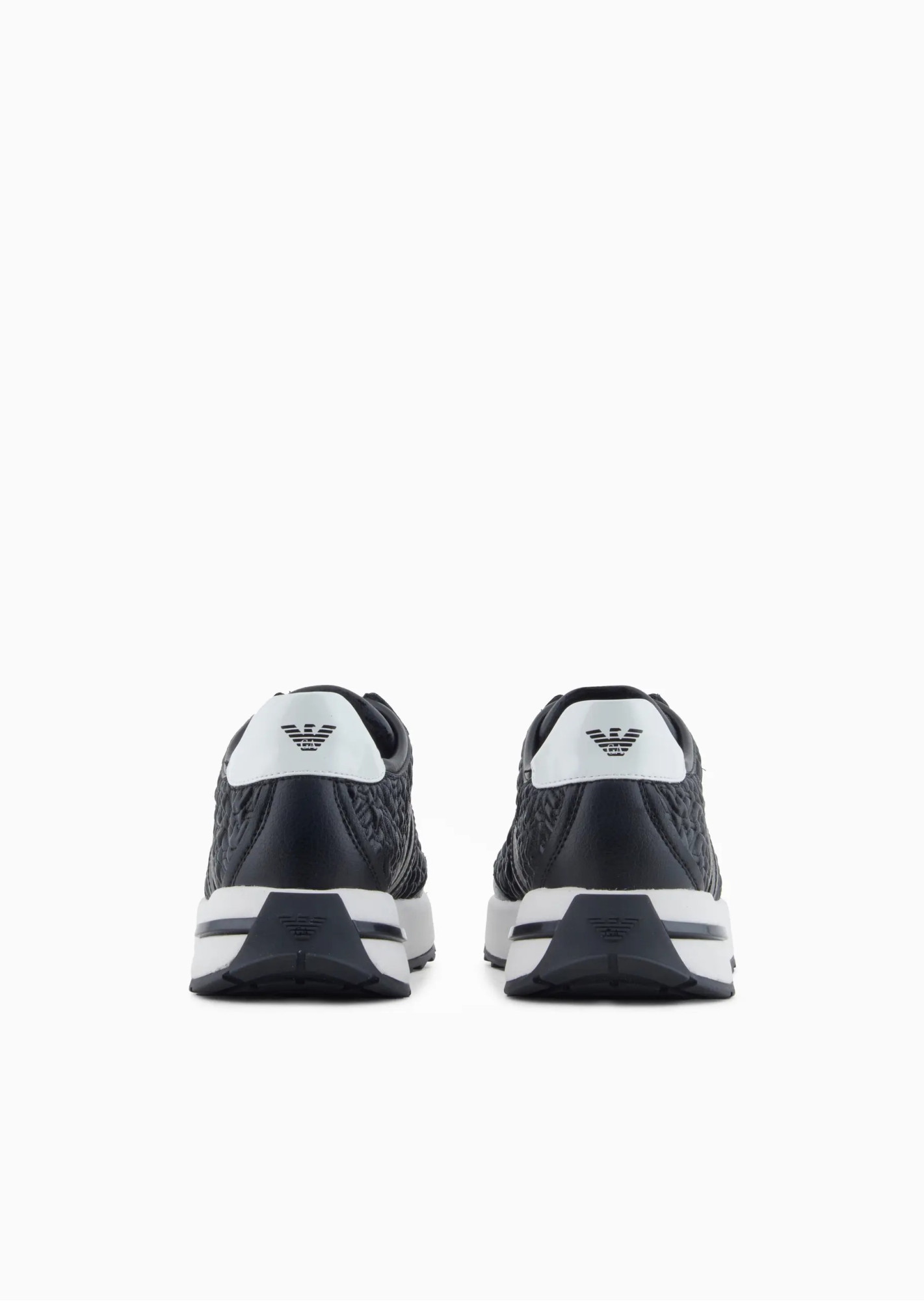 Кросівки Emporio Armani з класичною шнурівкою та рельєфним верхом зі шкіри наппа вирізняються продуманою архітектурою форми та об’ємною текстурою. Товста гумова підошва з логотипом на п’яті та контрастним брендингом з боку надає образу динамічності та забезпечує комфорт під час ходьби й легких тренувань. Мінімалістичний силует з акцентами преміум-класу створює гармонію стилю та функціональності. Ця пара гармонійно поєднується з джинсами, брюками чинос або спортивними комплектами, додаючи образу сучасної елегантності. Це взуття стане чудовим доповненням до гардеробу, пропонуючи поєднання комфорту та фірмового стилю Emporio Armani.
