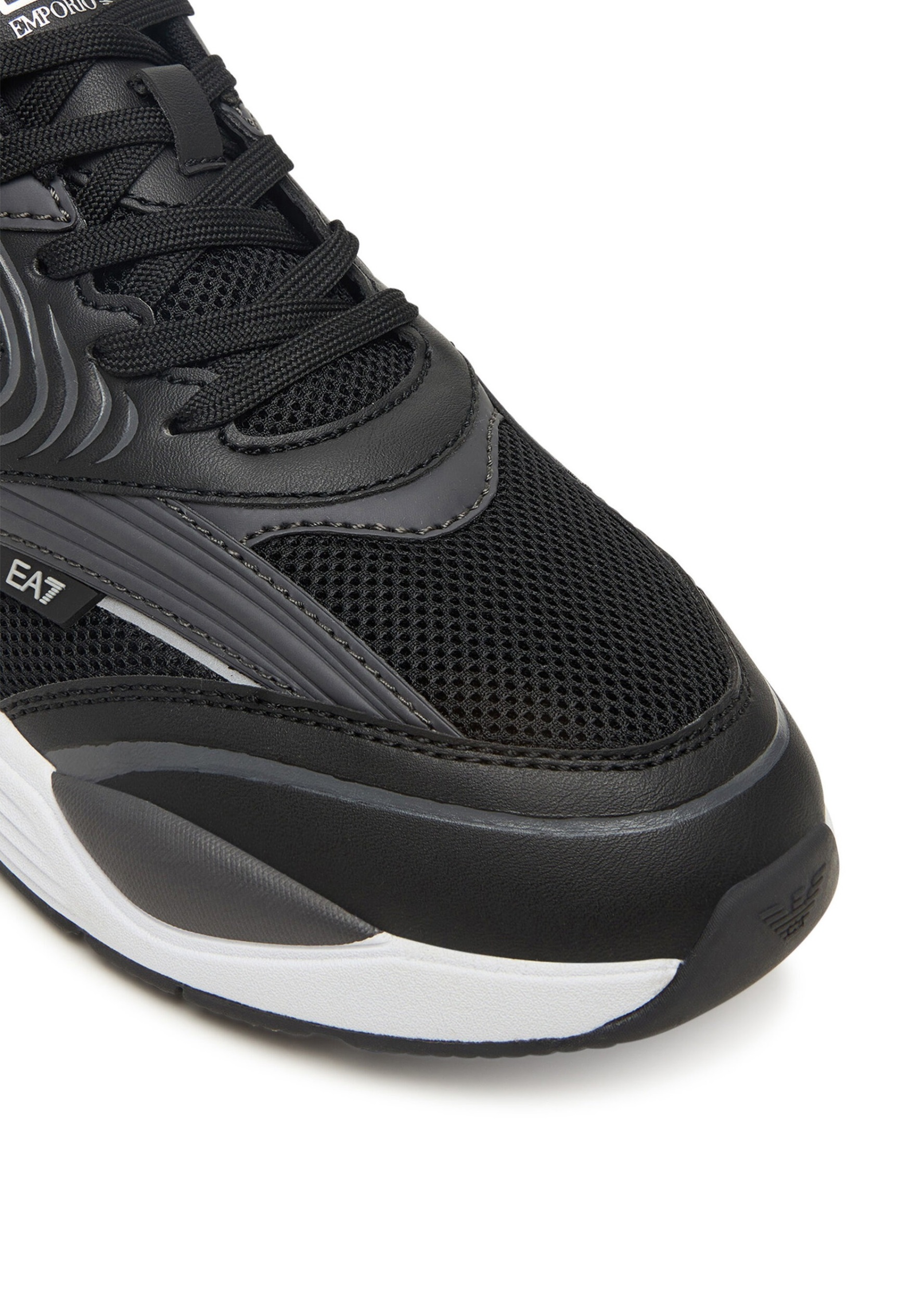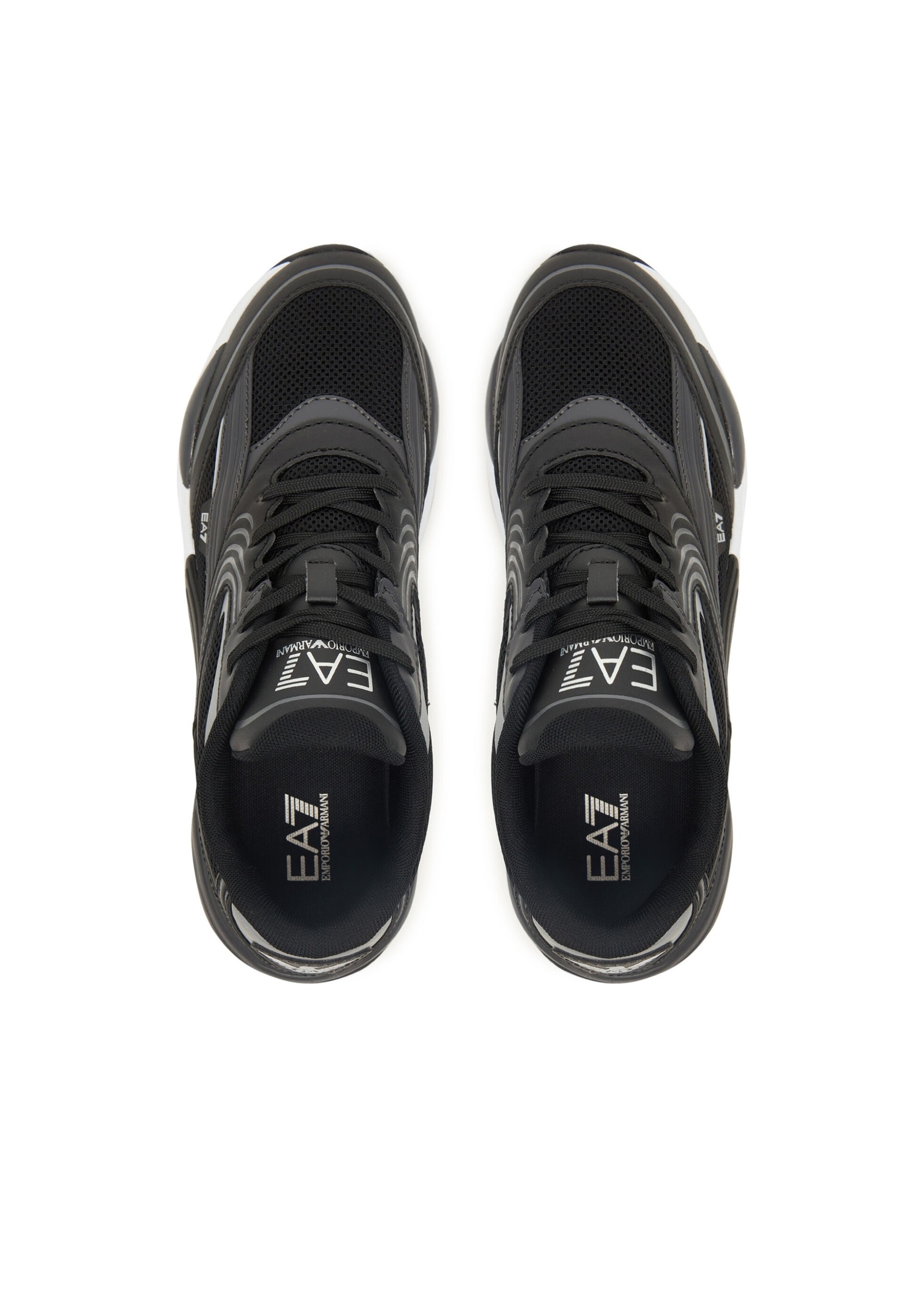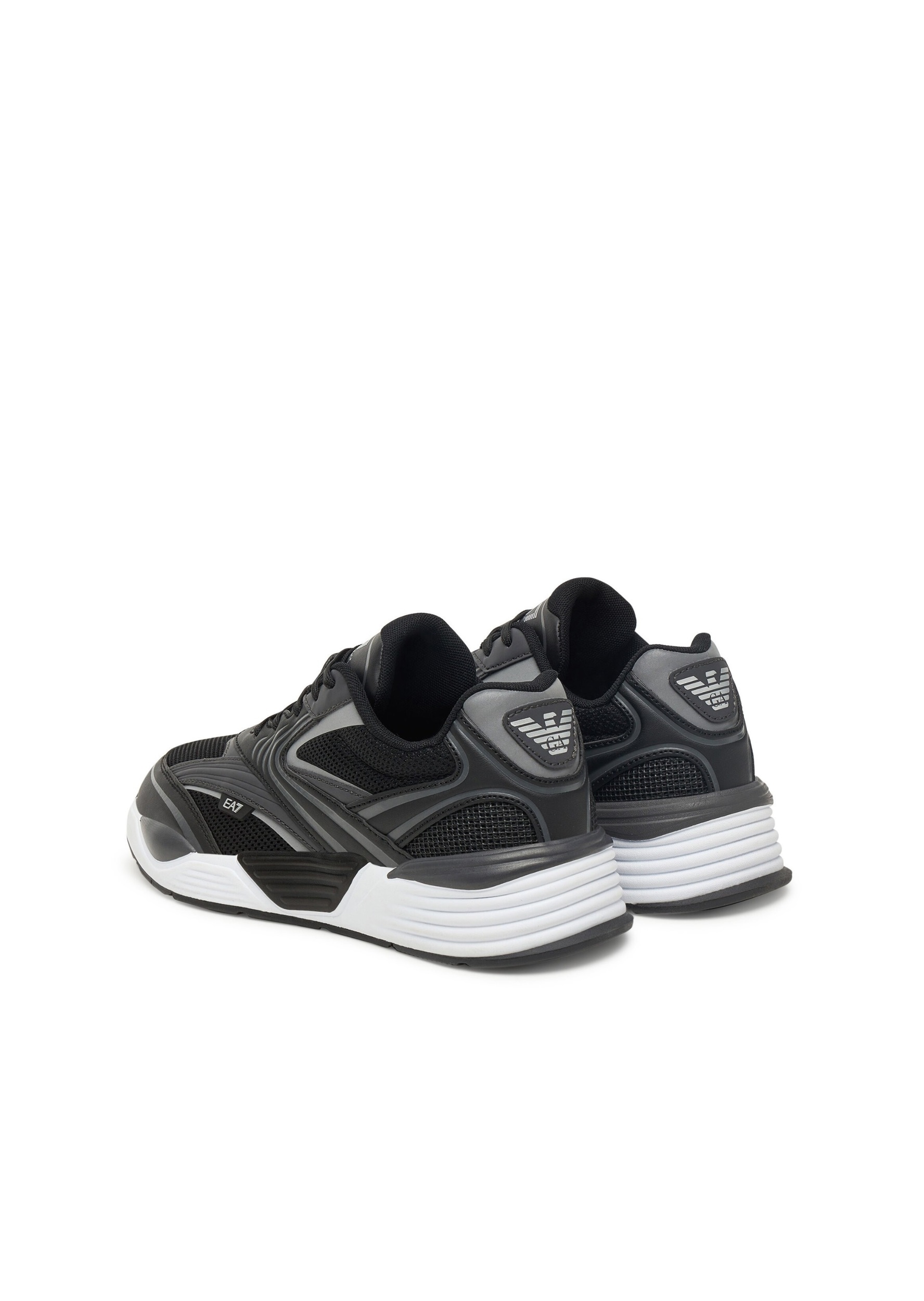 Чоловічі кросівки EA7 Emporio Armani у чорному відтінку виготовлені з легкого й міцного поліаміду, що вирізняється повітропроникністю та стійкістю до зношування. Сучасний силует із чистими лініями доповнений гнучкою підошвою, яка забезпечує комфорт під час щоденного використання. Лаконічний дизайн із фірмовим логотипом підкреслює спортивний характер лінії EA7. Універсальний чорний колір робить модель базовою: кросівки гармонійно поєднуються з джогерами, спортивними костюмами та повсякденними образами. Ця пара EA7 Emporio Armani стає практичним і стильним вибором для динамічного ритму міста.