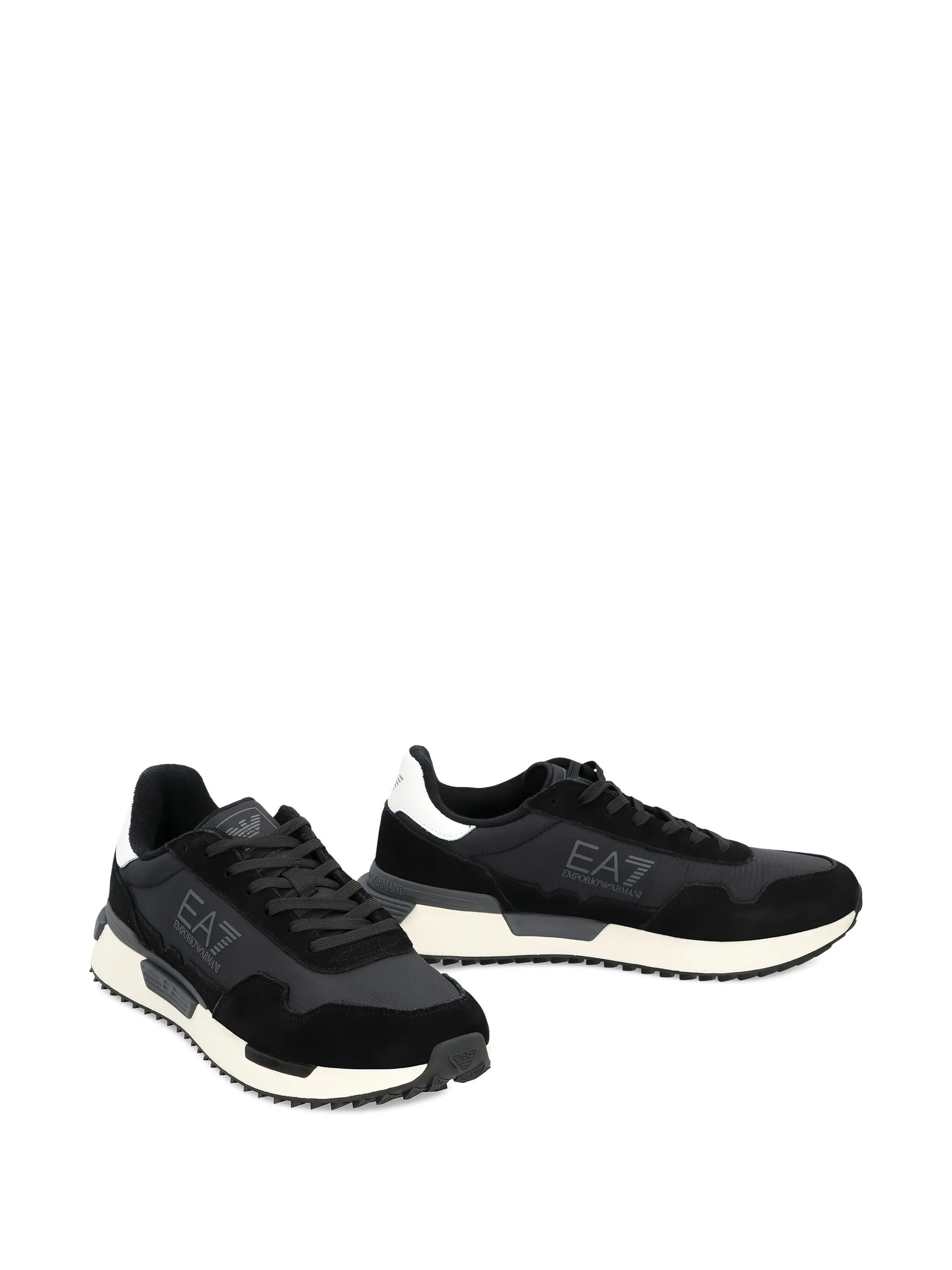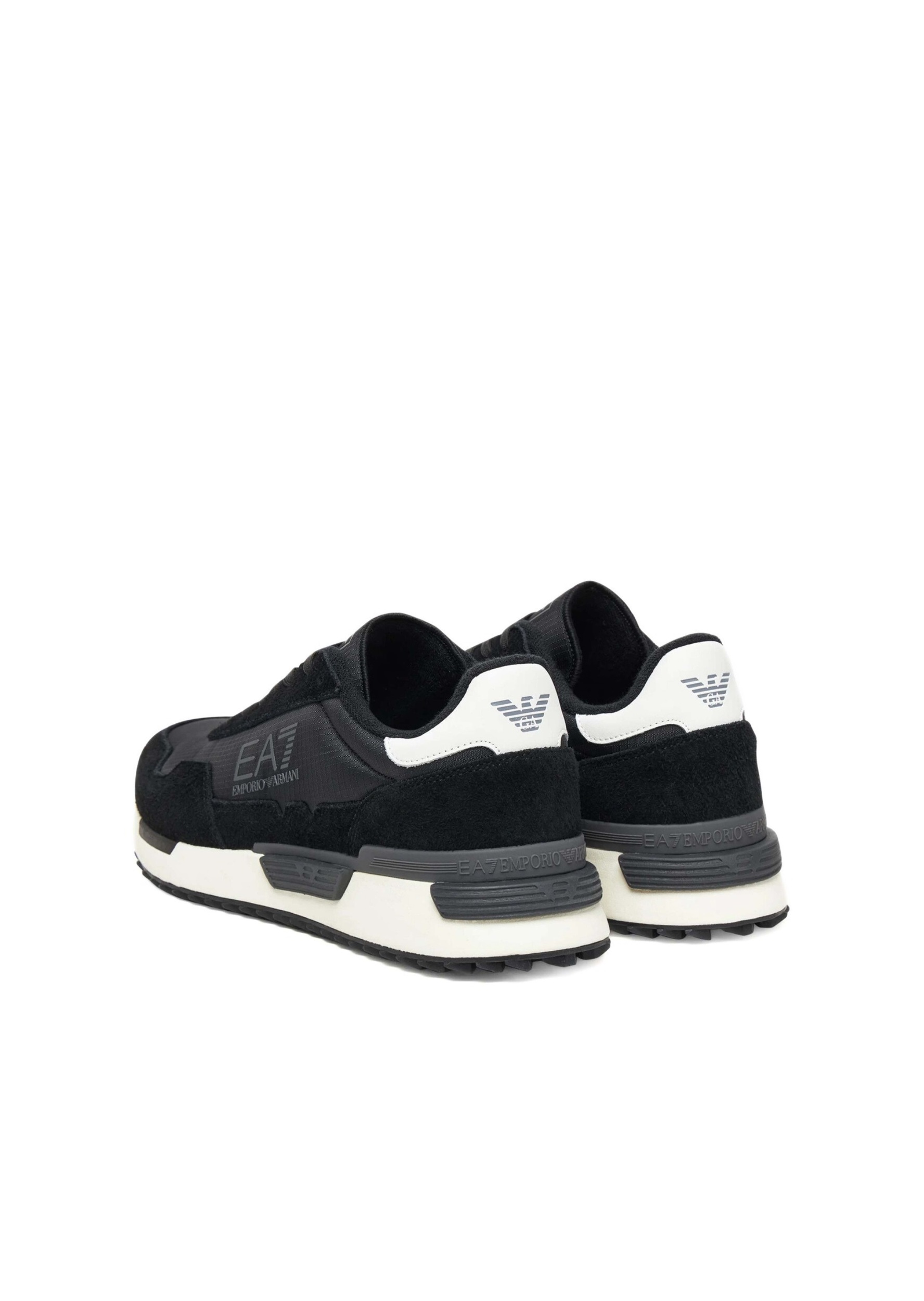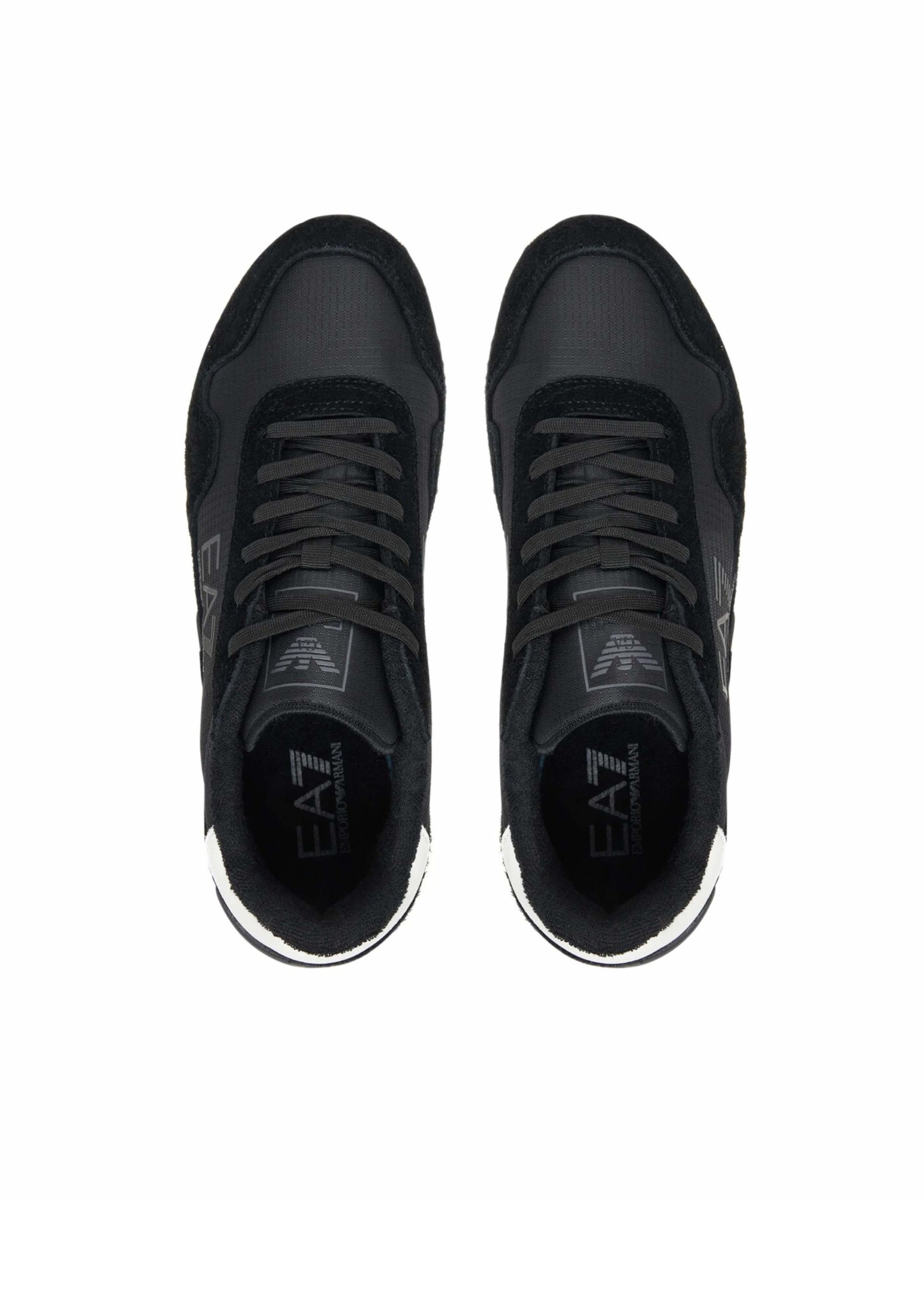 Чоловічі кросівки EA7 Emporio Armani у чорному відтінку виготовлені зі штучної шкіри, відрізняється екологічністю, мякістю, міцністю та преміальною фактурою. Лаконічний силует підкреслює сучасний характер моделі, а міцна підошва забезпечує комфорт і стійкість під час щоденного використання. Фірмовий логотип додає впізнаваний акцент бренду. Універсальний чорний колір та контрасна підошва робить кросівки базовою парою, яка легко поєднується з джинсами, брюками та повсякденними ансамблями. Ця модель EA7 Emporio Armani стає стильним і функціональним елементом чоловічого гардероба.