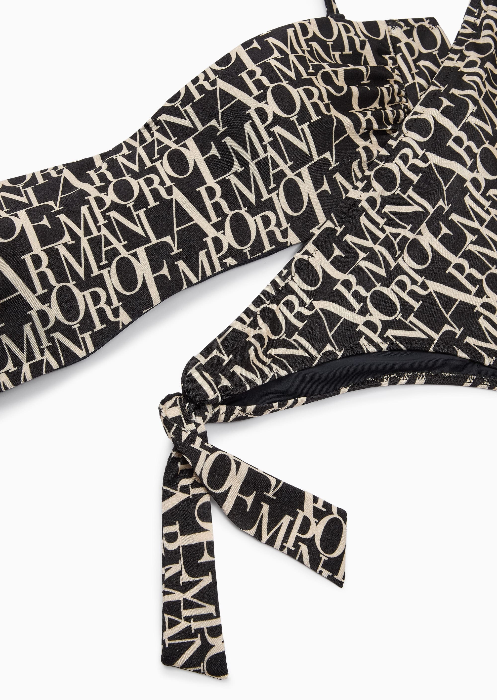 Жіночий купальник від Emporio Armani з синтитичного трикотажу. Бікіні складається з верхньої частини бандо зі знімними чашками та трусів бразіліана із зав’язками з боків. Комфортна модель прикрашена логотипом бренду по всій площі виробу. Ідеальний купальник для відпочинку на курорті та походу в басейн.