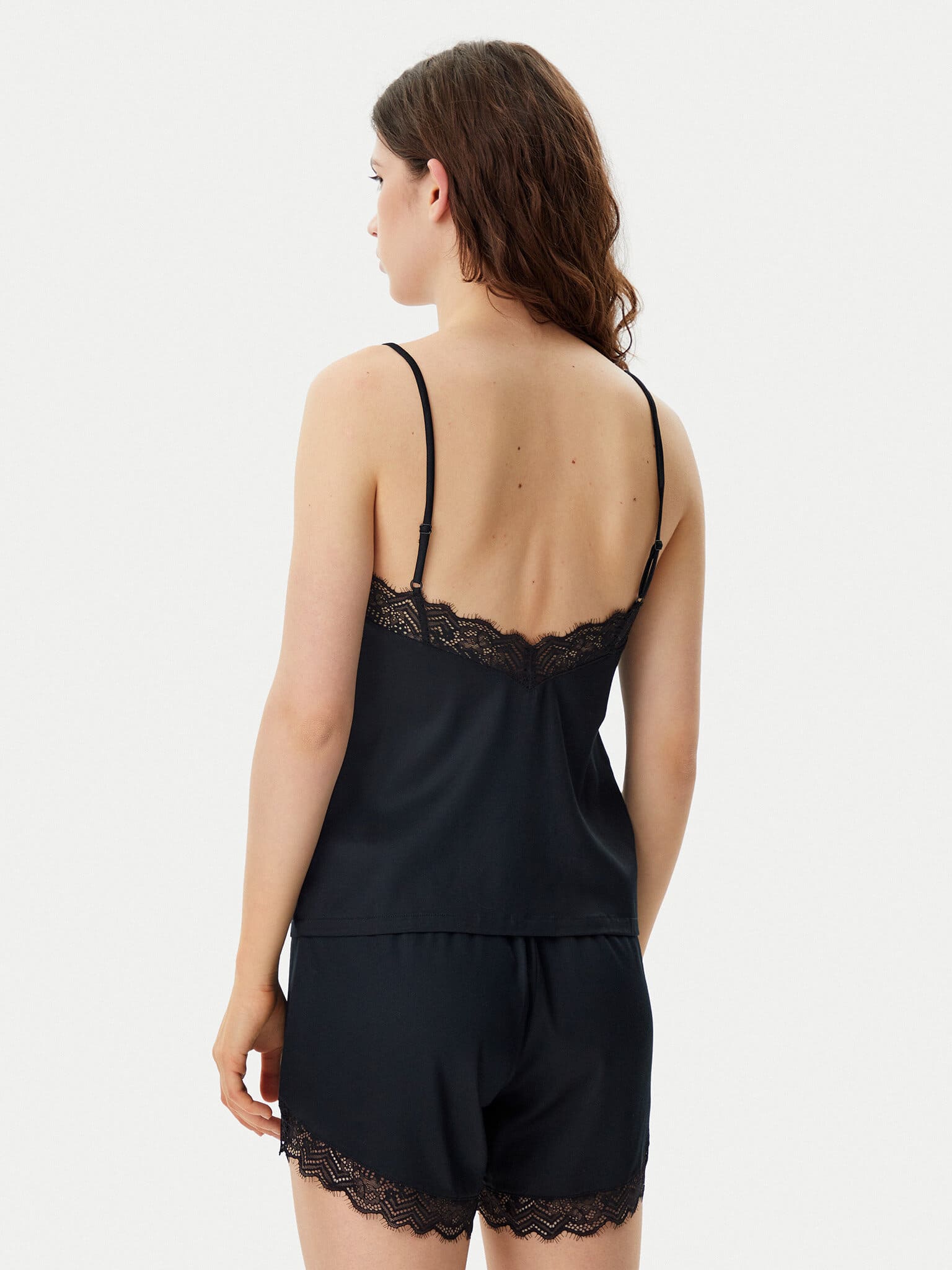 Жіночий топ HUGO Underwear в стилі білизни виконаний з мякої еластичної віскози і прикрашений мереживом. Тонкі бретельки, прилеглий силует і лаконічний логотип підкреслюють невимушену елегантність. Поєднується з шовковими шортами, лонгслів або мяким кардиганом - для домашнього релаксу з відтінком гламуру. Легкий, чуттєвий акцент у базовому гардеробі та розслаблююча естетика створює легкий романтичний настрій. Ідеально підходить для тихих домашніх вечорів