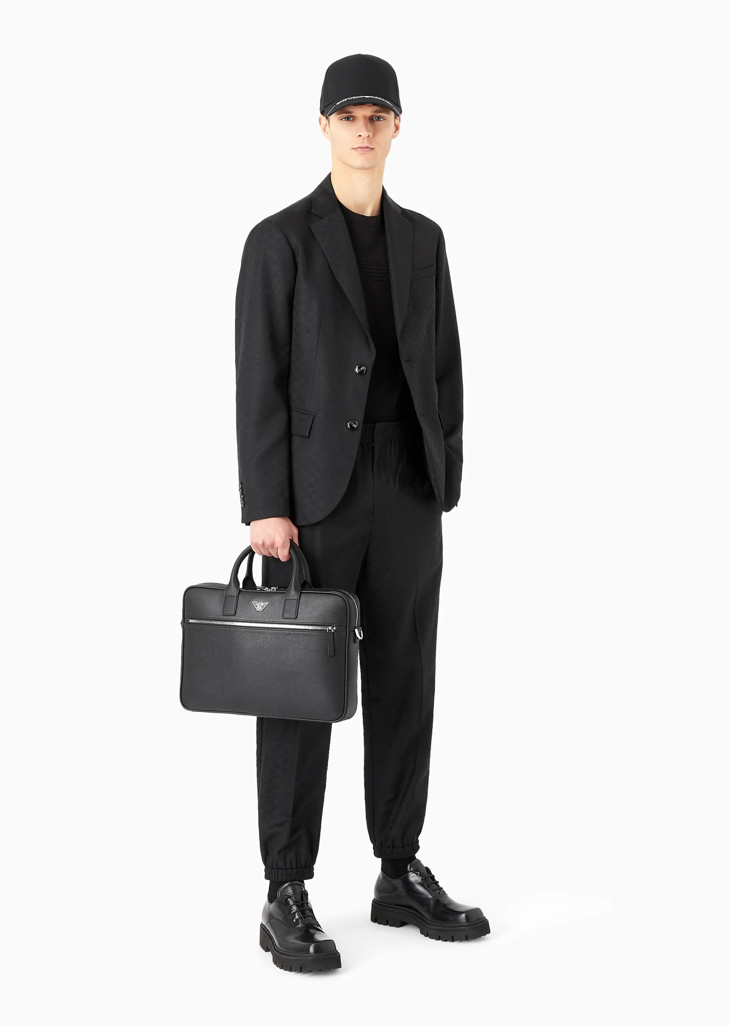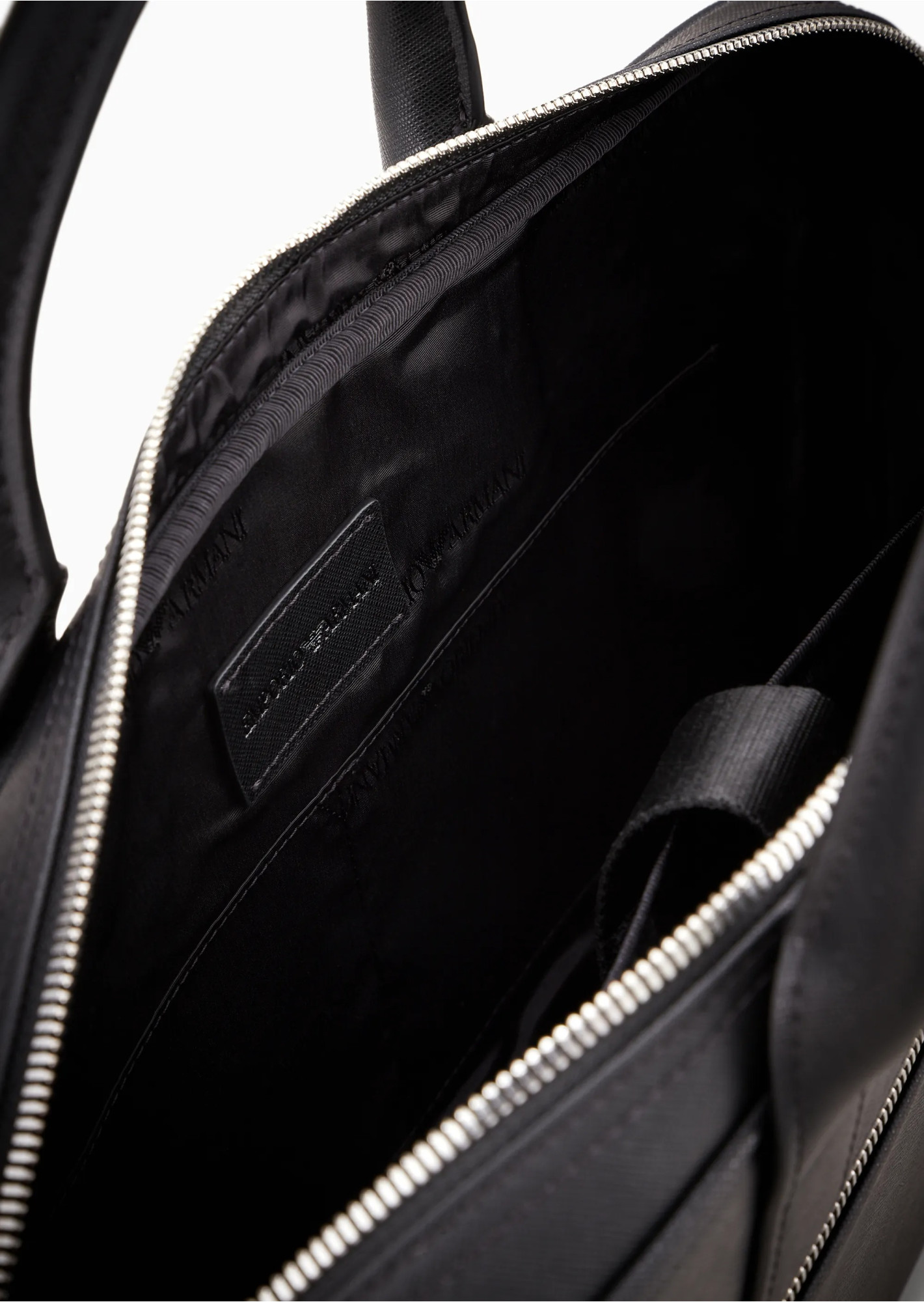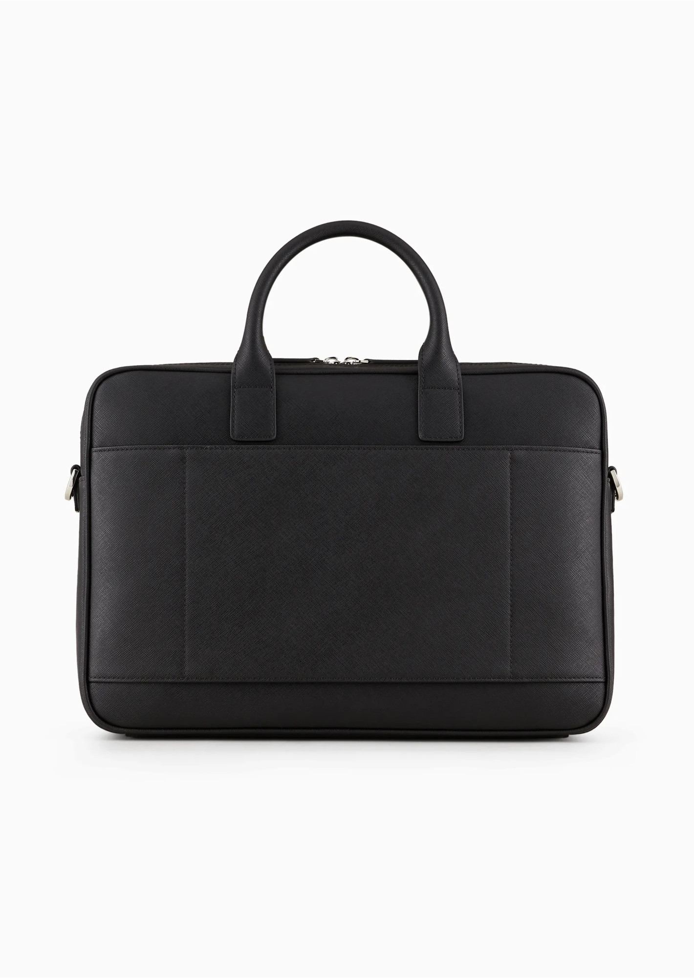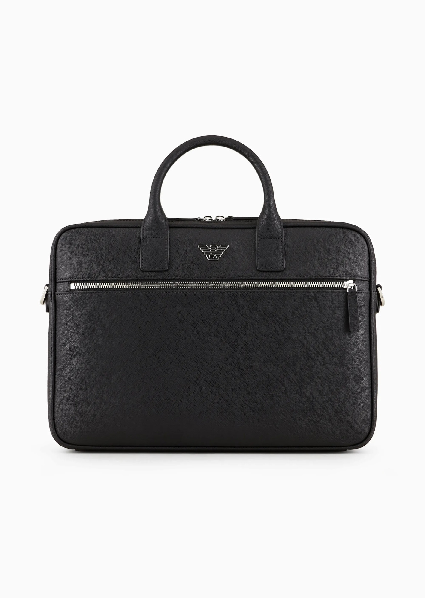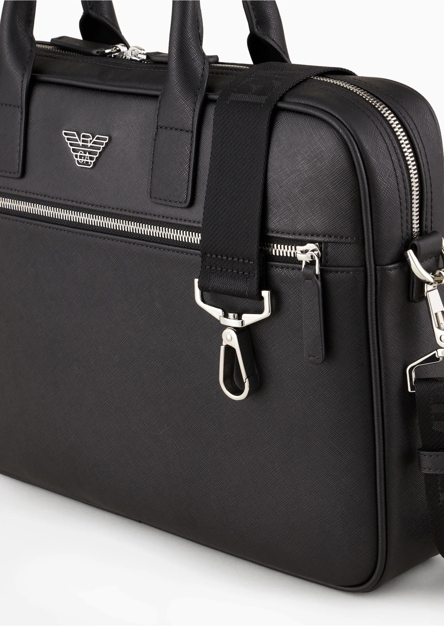 Колекція аксесуарів, створена, щоб задовольнити вимоги чоловіка Emporio Armani, якому потрібен стильний зовнішній вигляд, готовий до роботи. Основний, привабливий дизайн має обробку Saffiano і налаштований контурним перфорованим металевим логотипом орла. Портфель з практичним знімним плечовим ременем і подвійною жорсткою ручкою. Простий і елегантний, у справжньому стилі Emporio Armani.