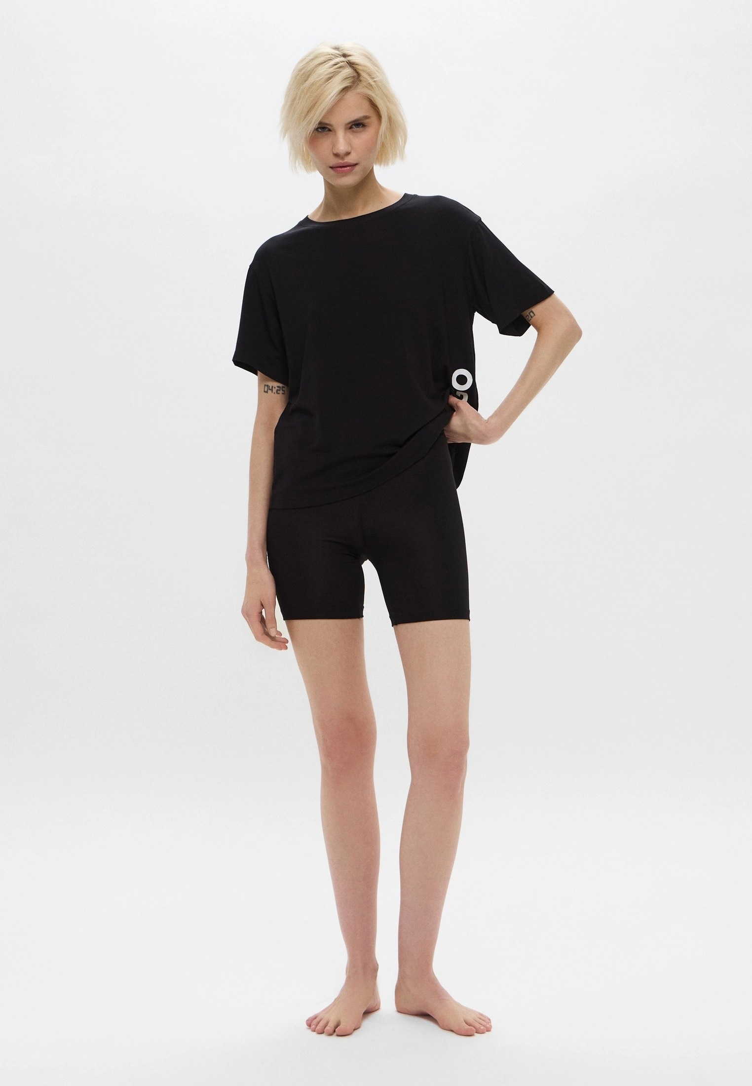 Шорти для піжами насиченого чорного кольору виготовлені з м’якого та дихаючого матеріалу, що забезпечує комфорт під час сну та відпочинку. Вільний крій гарантує свободу рухів і приємні відчуття на шкірі. Елегантний мінімалізм із акцентом на якість і практичність робить виріб незамінним елементом домашнього гардероба. Легко поєднується з іншими елементами піжамного комплекту. Підкреслює стильний та затишний образ для спокійних вечорів.