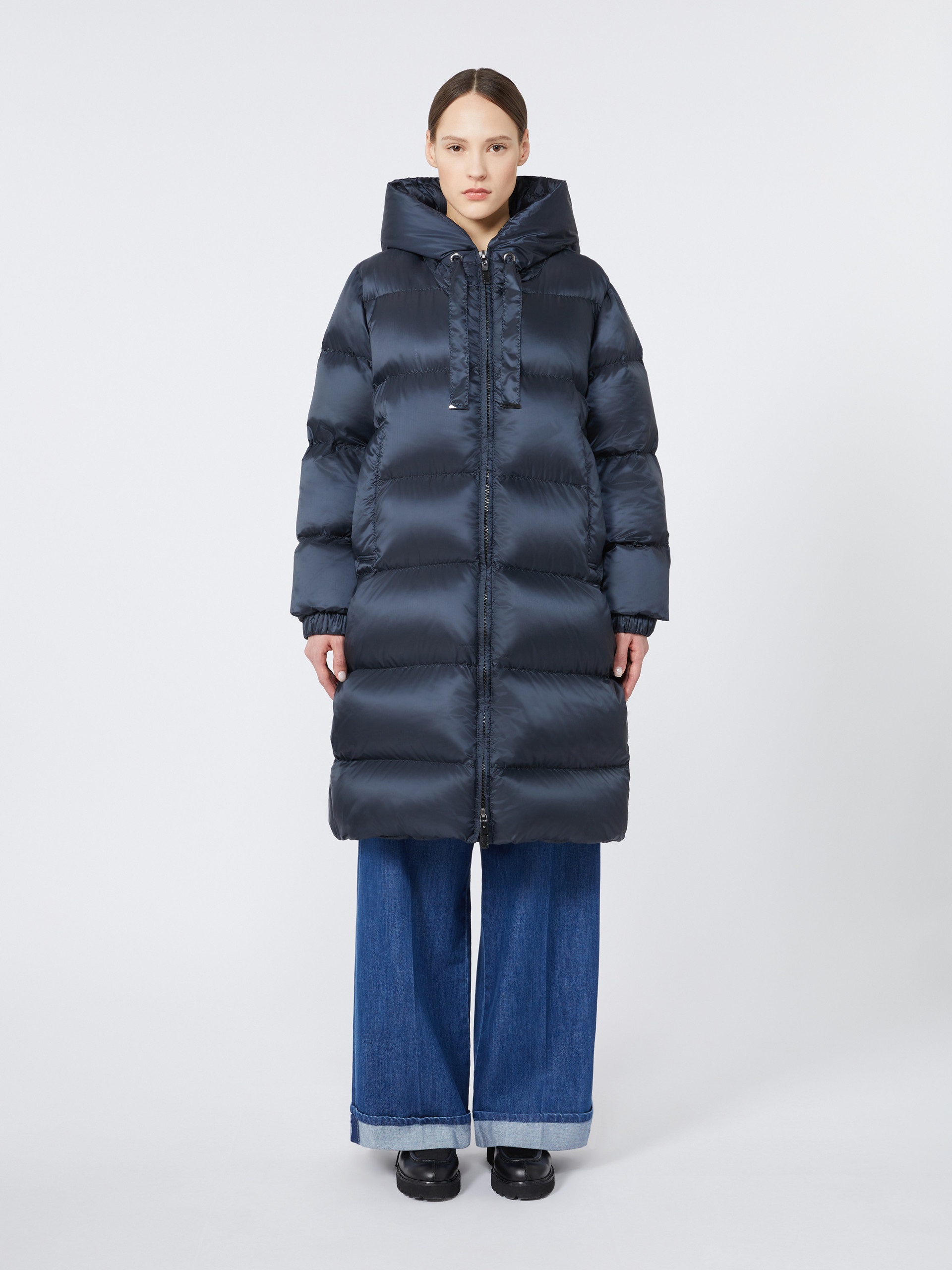 Подовжений пуховик Max Mara Cube із застібкою-блискавкою та об’ємним капюшоном. Виконаний із щільного поліестеру з м’якою підкладкою та утеплений гусячим пухом — забезпечує максимальне тепло при легкій вазі. Лаконічний силует доповнено вшитими боковими кишенями та мінімалістичним оздобленням. Поєднується з трикотажем, джинсами, класичними брюками й зимовим взуттям. Ідеальний вибір для холодної погоди — теплий, практичний та елегантний.