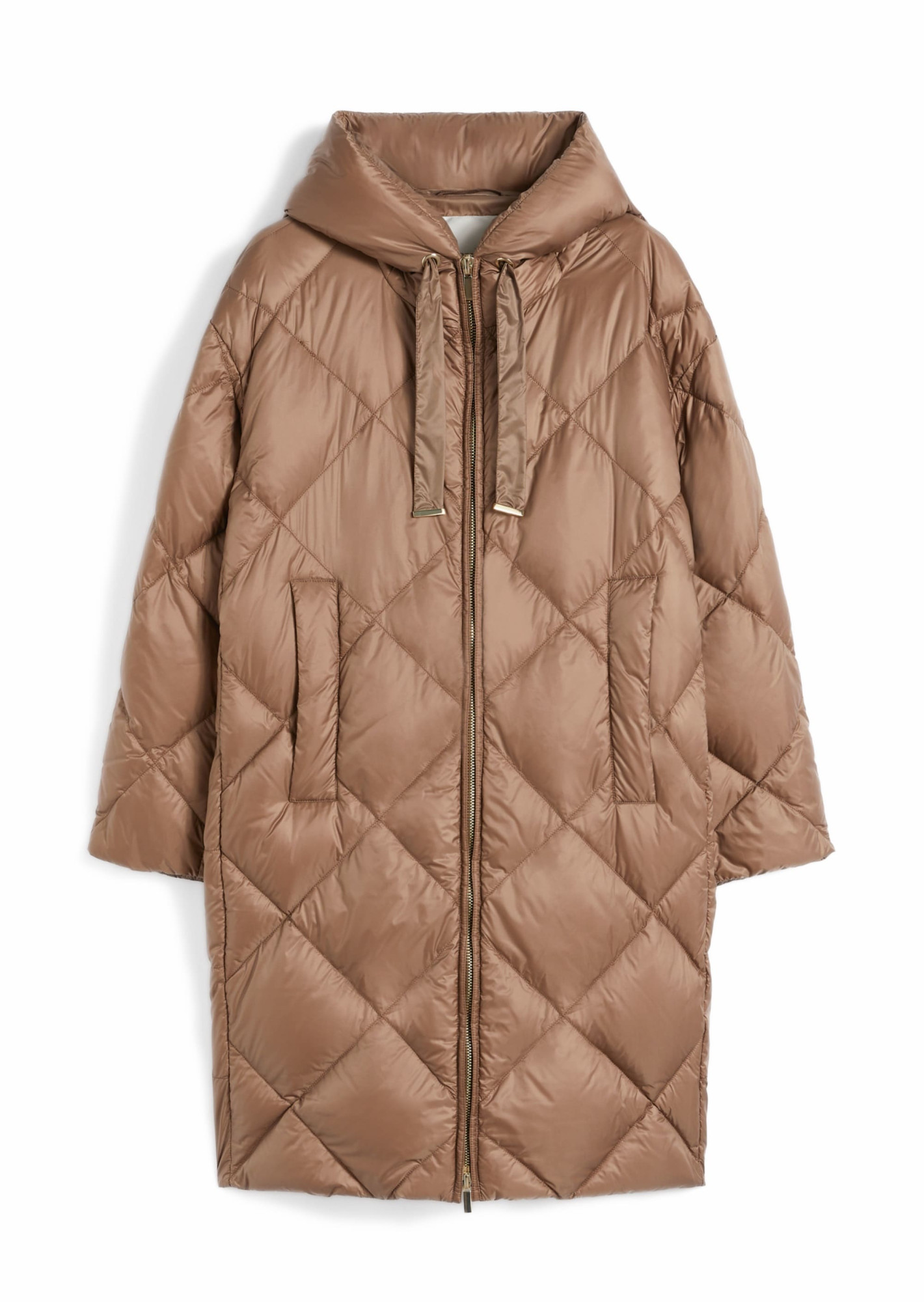 Коричневий подовжений пуховик Max Mara Cube виконаний із гладкого поліестеру з утепленням із синтетичного волокна — забезпечує надійний захист від холоду за легкої ваги. Модель прямого крою з блискавкою, капюшоном і вшитими боковими кишенями. Стьобана текстура та насичений відтінок підкреслюють сучасний характер виробу. Поєднується з базовим трикотажем, джинсами, утепленими штанами та шкіряним взуттям. Практичний вибір на кожен день — теплий, зручний і легко вписується в міський гардероб.