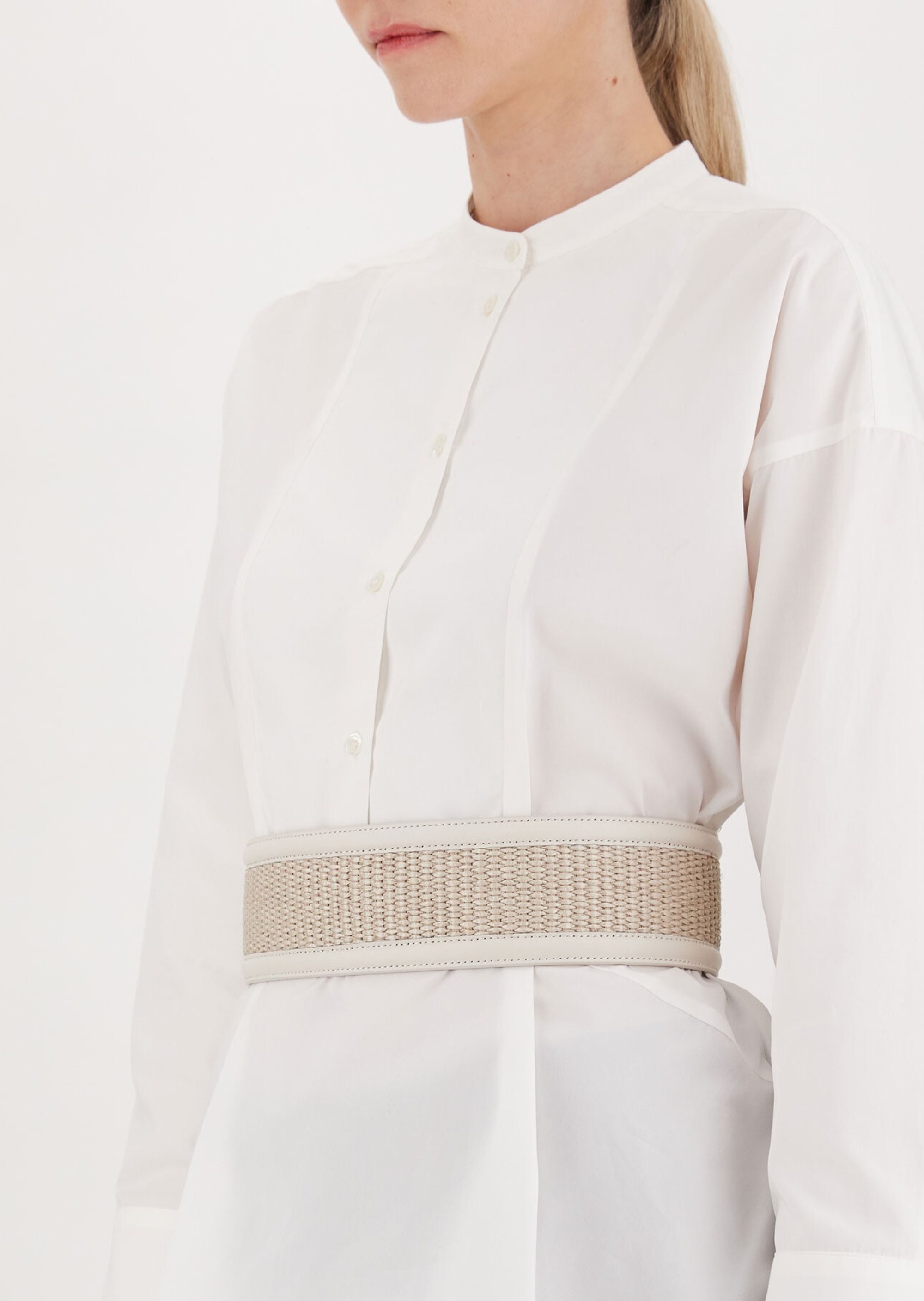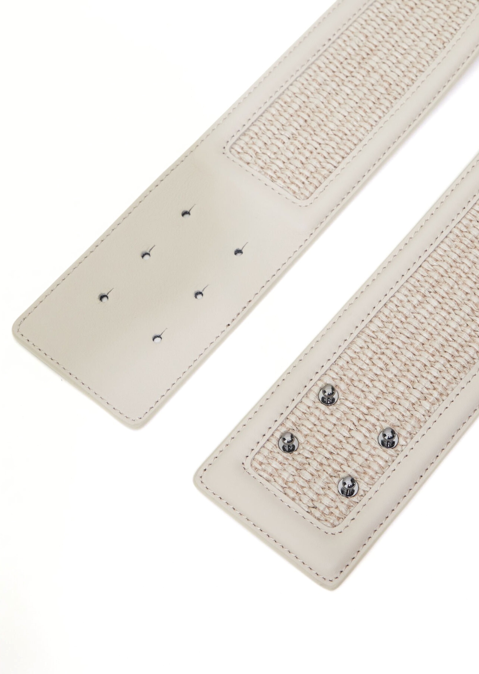 Ремінь шириною 7 сантиметрів, з окантовкою із натуральної шкіри. Модель ідеально підходить для літніх суконь. Застібається на запонку ззаду.