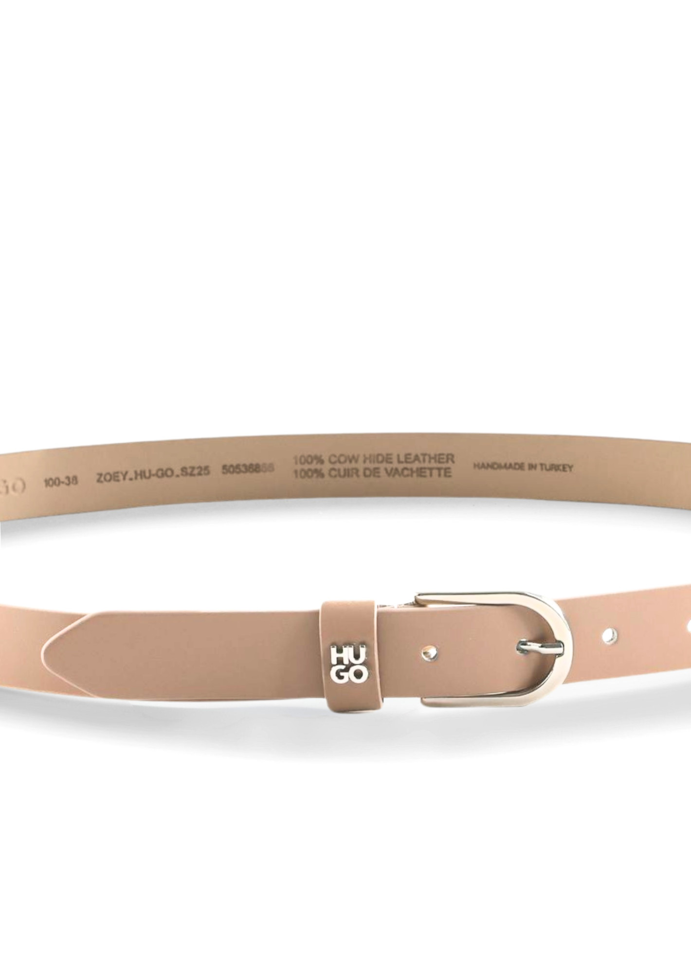 Ремінь коричневого кольору. Виготовлений з натуральної шкіри, оснащений металевою пряжкою з логотипом бренду.Стильне рішення, щоб підкреслити фігуру та надати більш витонченого вигляду образу.