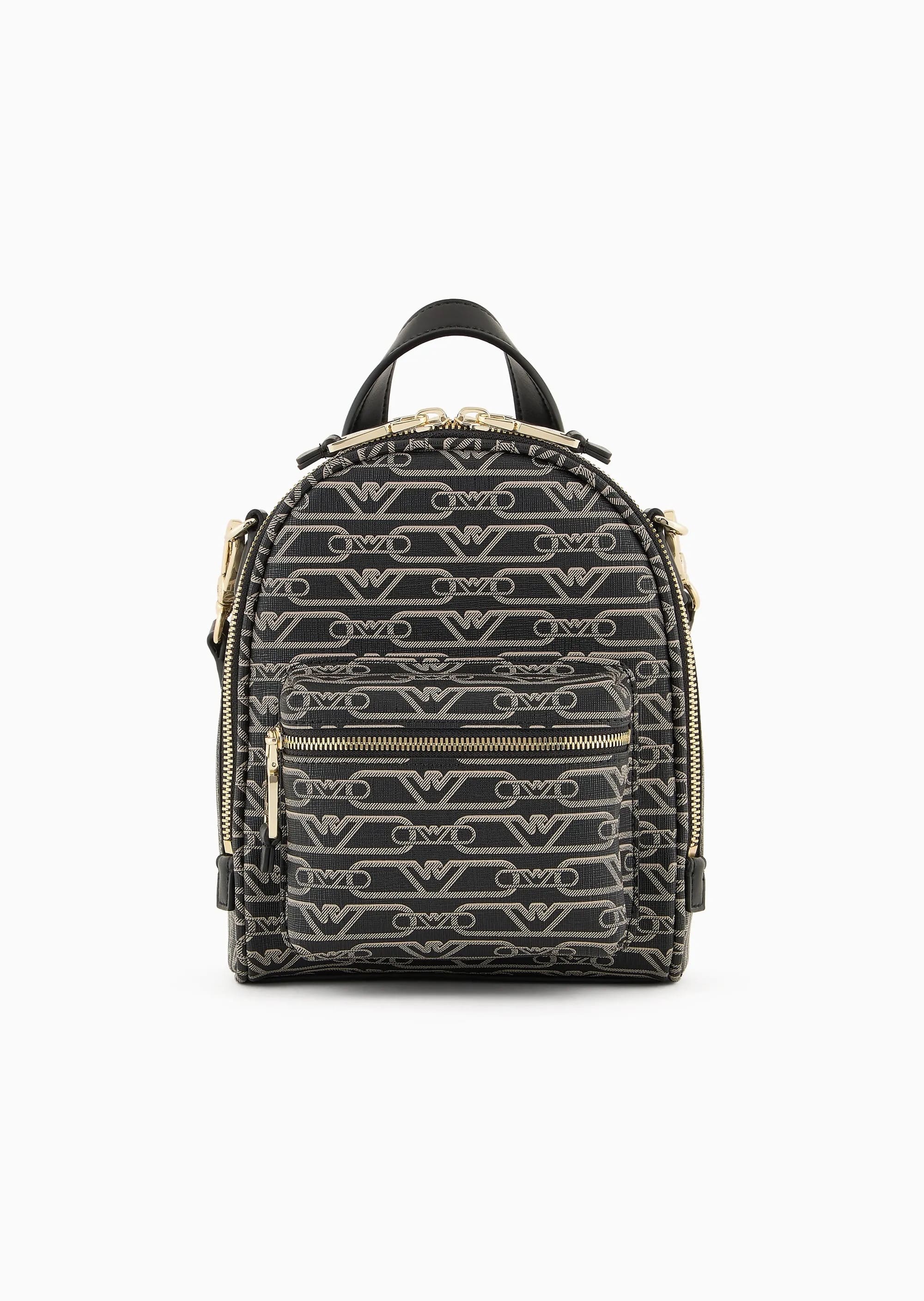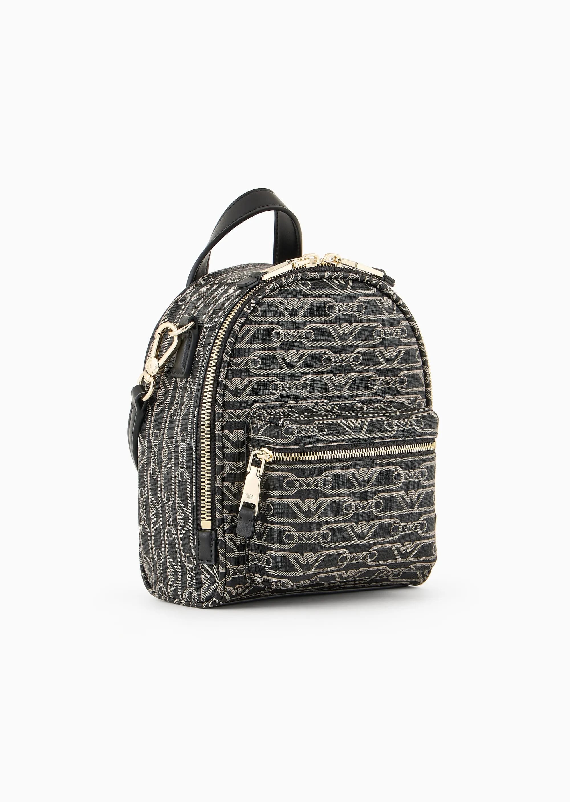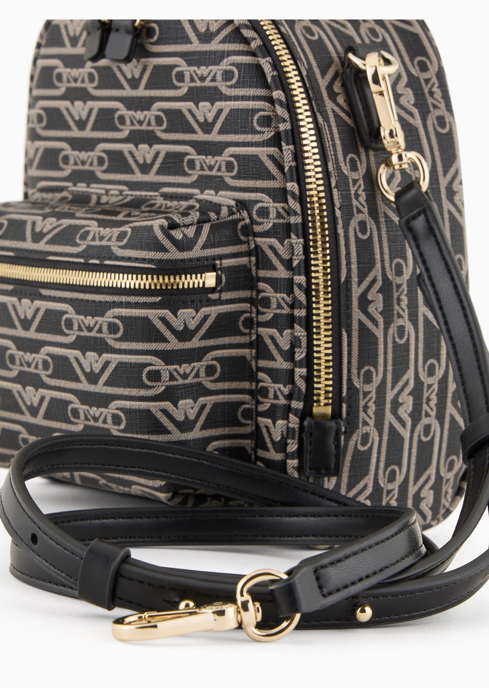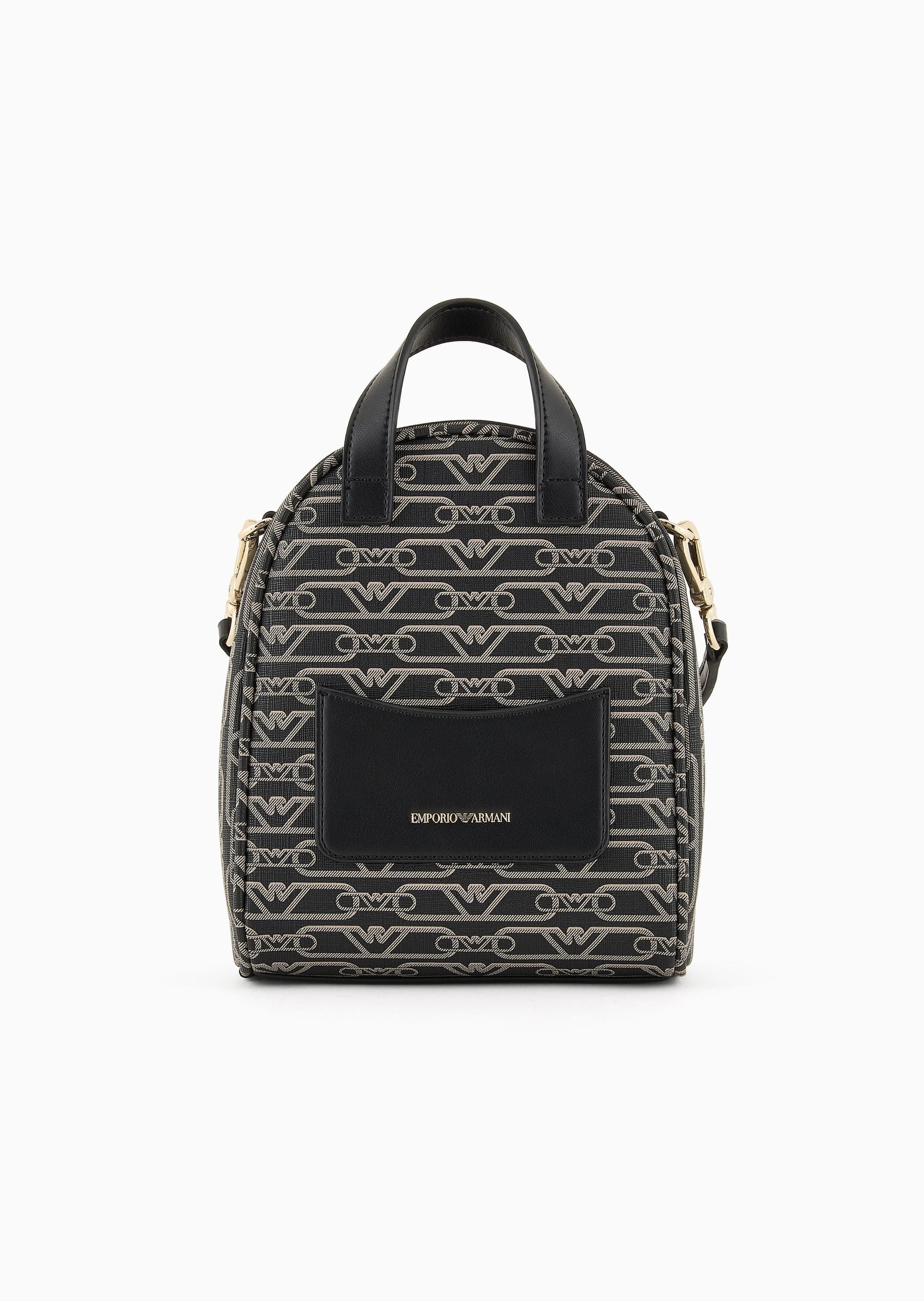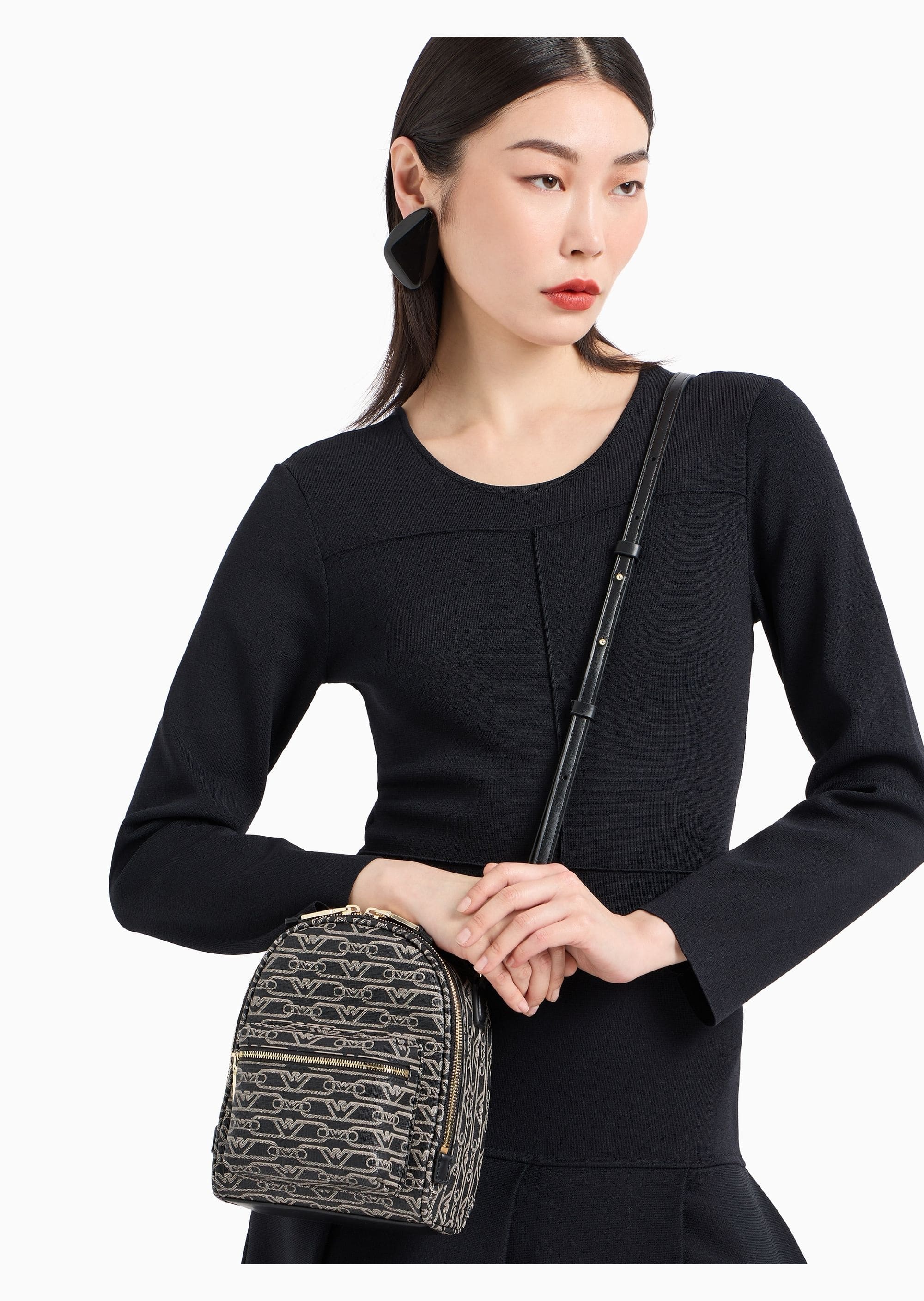 Міні-сумка з практичним ременем, що знімається через плече, що дозволяє носити її як сумочку. Серія аксесуарів із щільним монограмним принтом по всій поверхні доступна в серії функціональних моделей, призначених для жінок Emporio Armani, які завжди в русі.