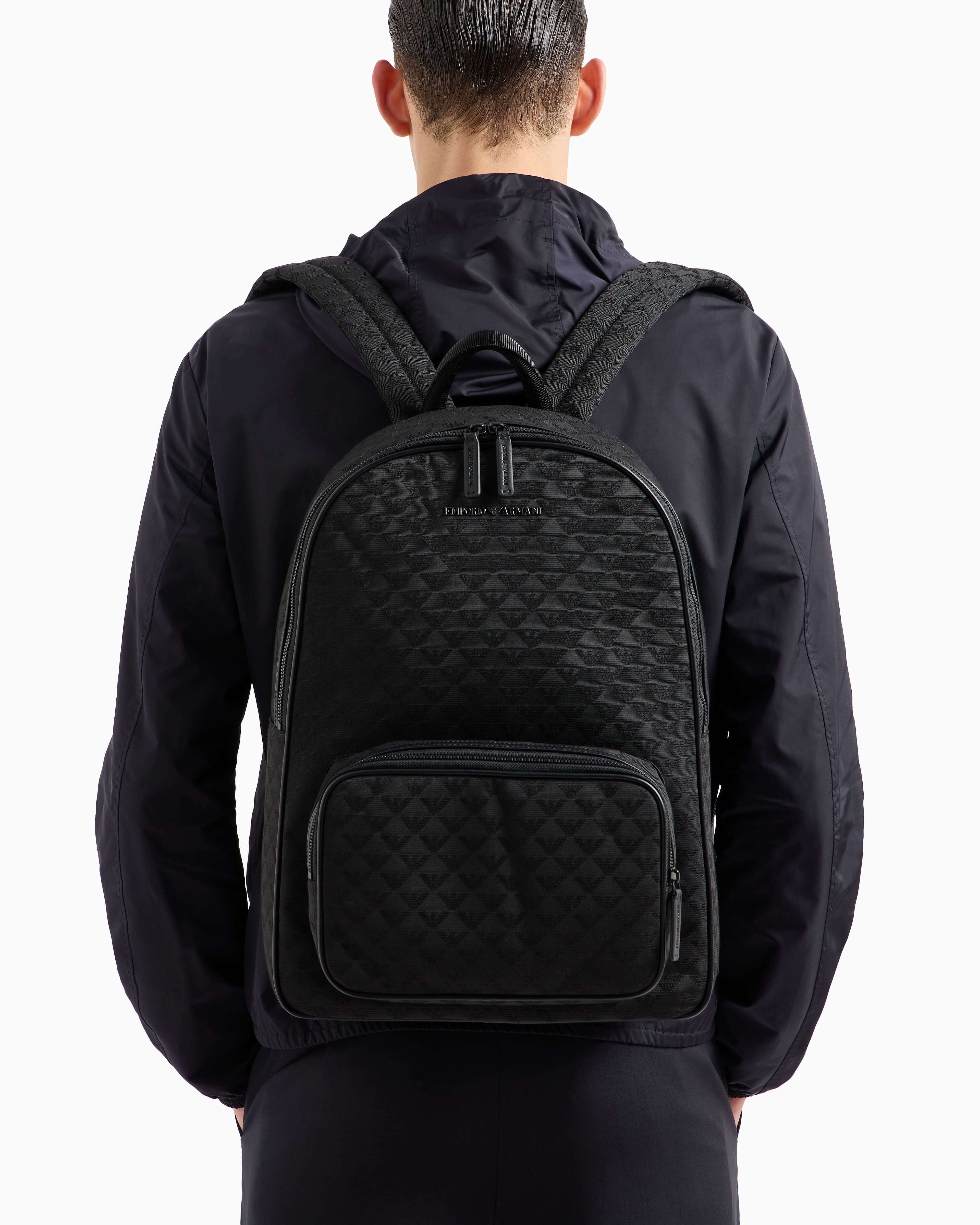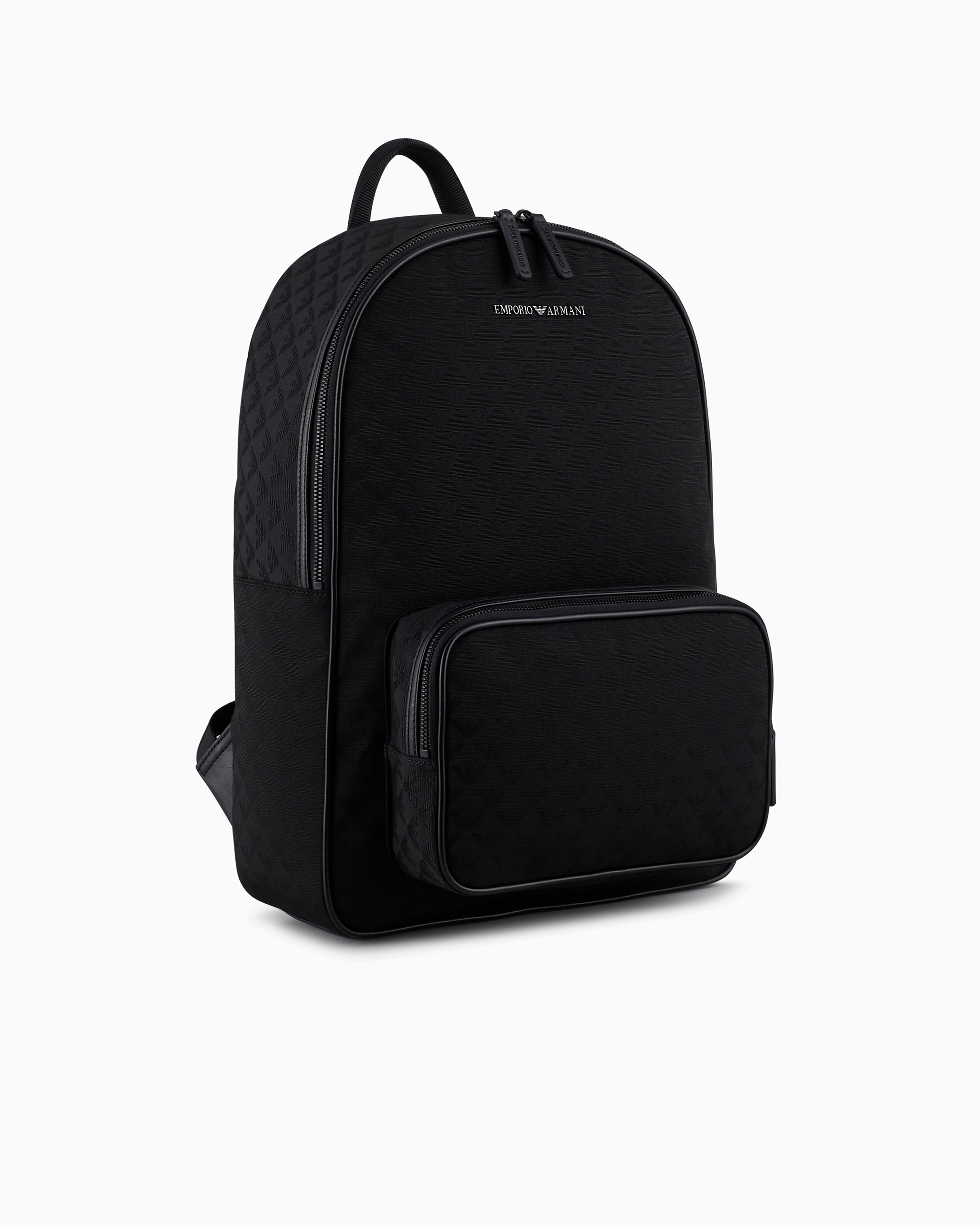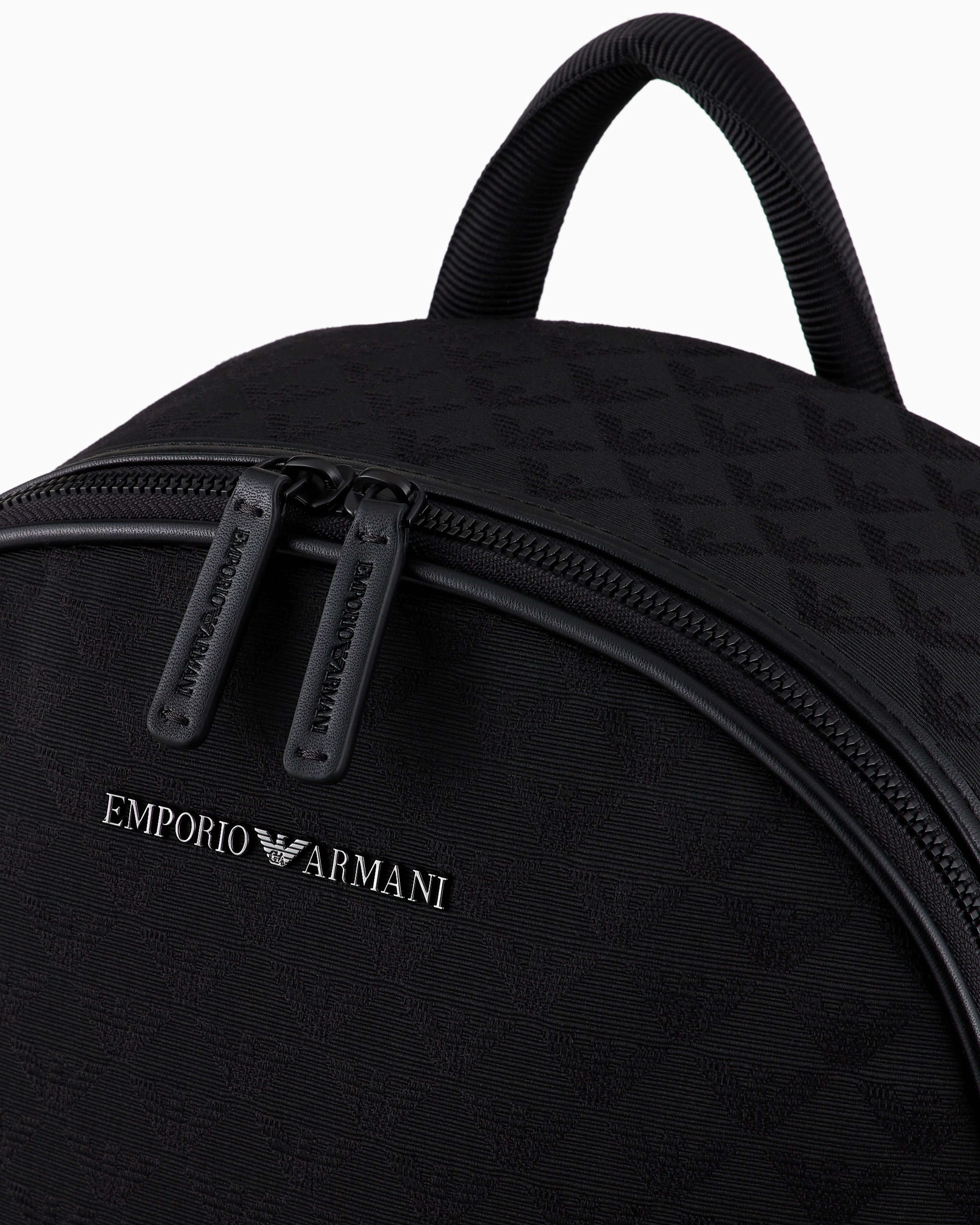 Круглий рюкзак із передньою кишенею на блискавці — практичне рішення як для міста, так і для подорожей. Виготовлений із жакардового нейлону з фірмовим візерунком орла по всій поверхні, що створює впізнавану текстуру. Атласна обробка, металевий логотип та напис Emporio Armani на лицьовій панелі підкреслюють поєднання класики та сучасності. Входить до капсульної лінійки Essentials — вічного втілення стилю та універсальності від Emporio Armani, створеної для будь-якої пори року.