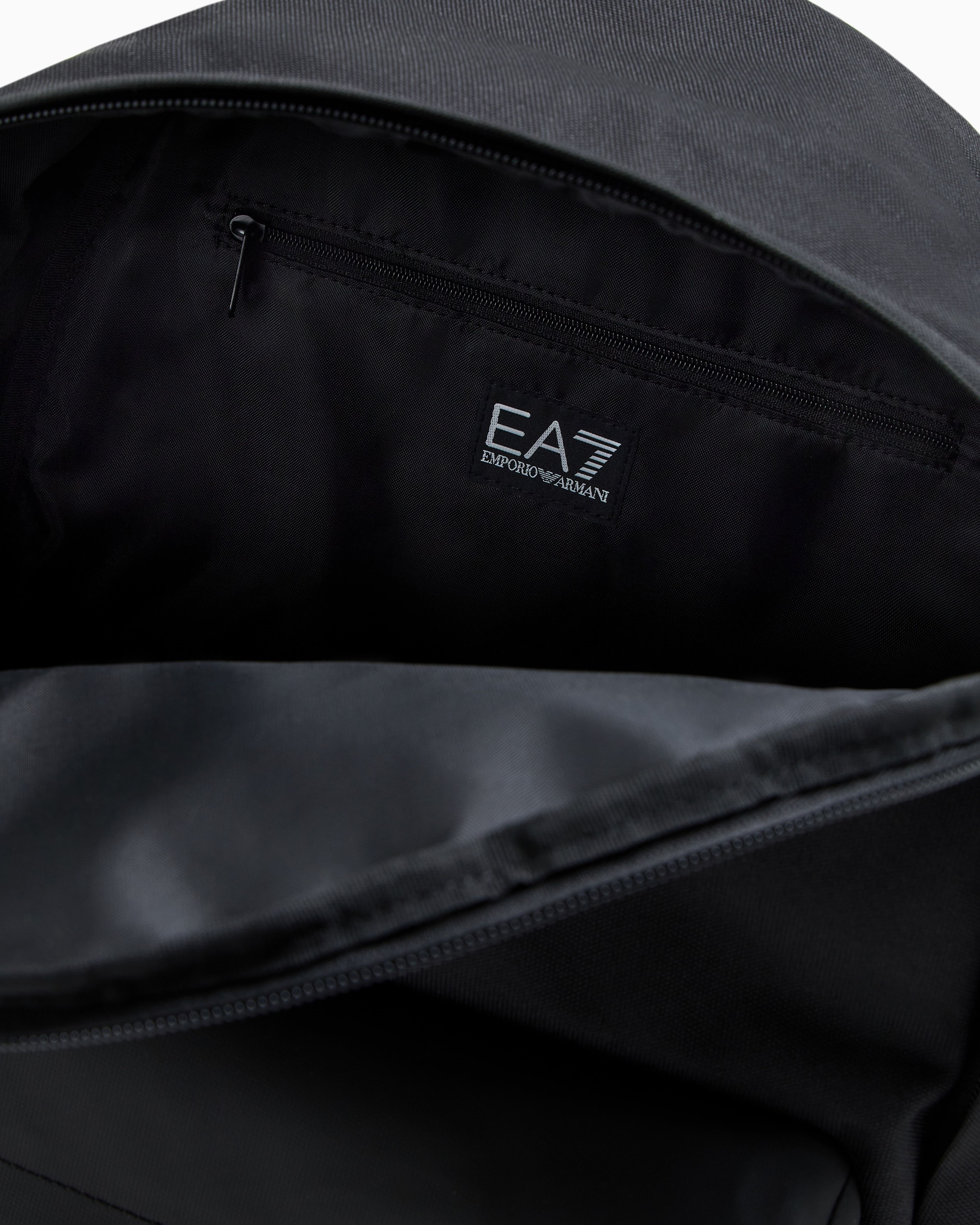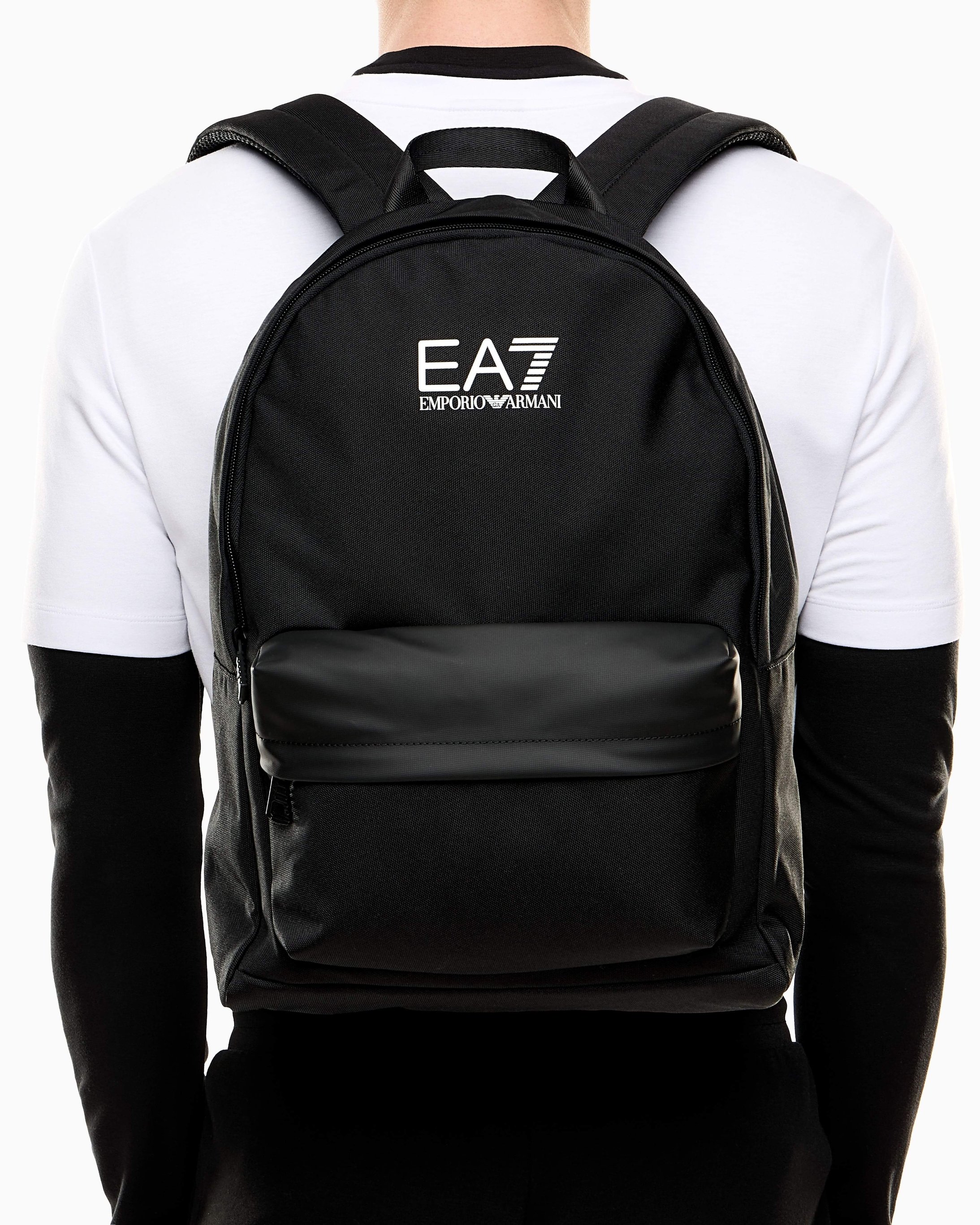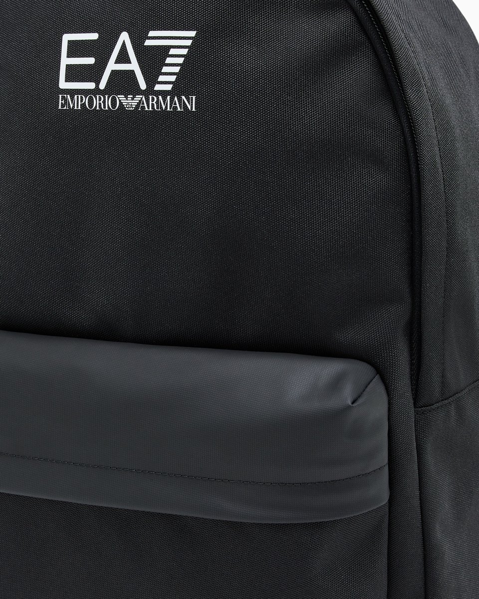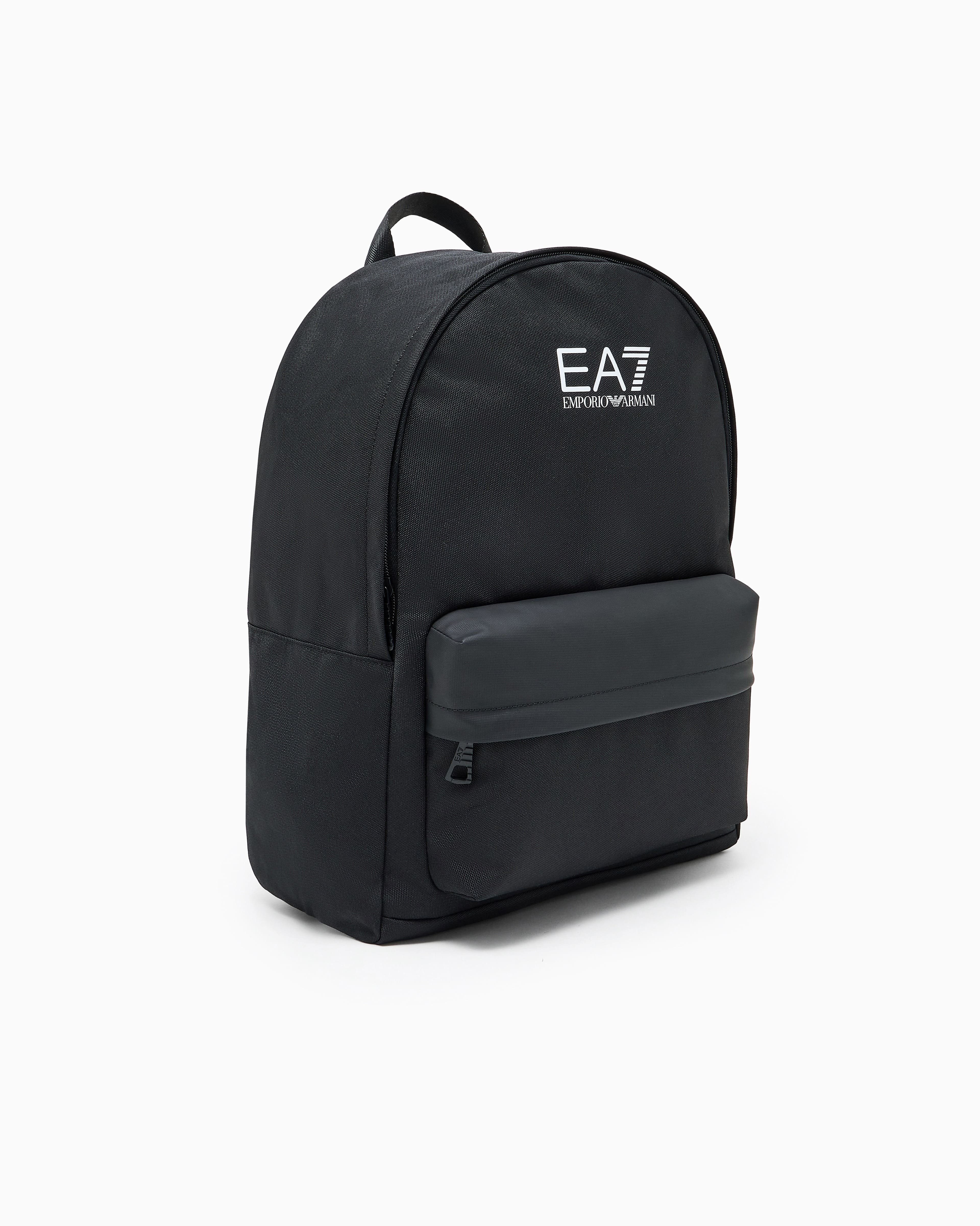 Рюкзак EA7 Emporio Armani із технічного текстилю поєднує функціональність і мінімалістичний дизайн. Міцний корпус із поліуретановим покриттям доповнений контрастним збільшеним логотипом на фронтальній панелі. Просторе основне відділення зачиняється на блискавку, передбачено окремий відсік для ноутбука та зовнішню кишеню на блискавці. Регульовані м’які лямки забезпечують комфорт під час носіння, а матеріали стійкі до зношування. Поєднується зі спортивним одягом, денімом або кежуал-комплектами, створюючи динамічний і сучасний міський образ.