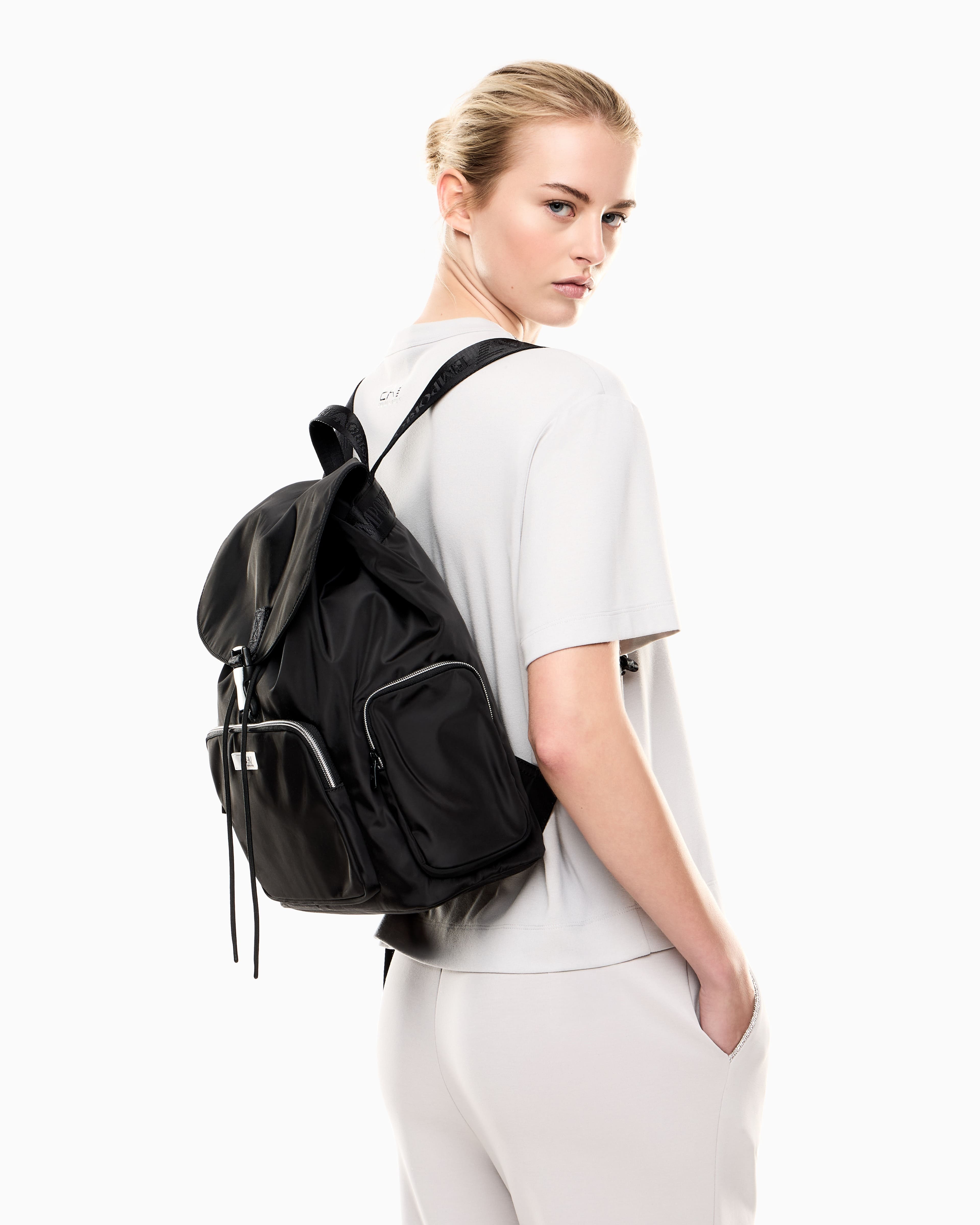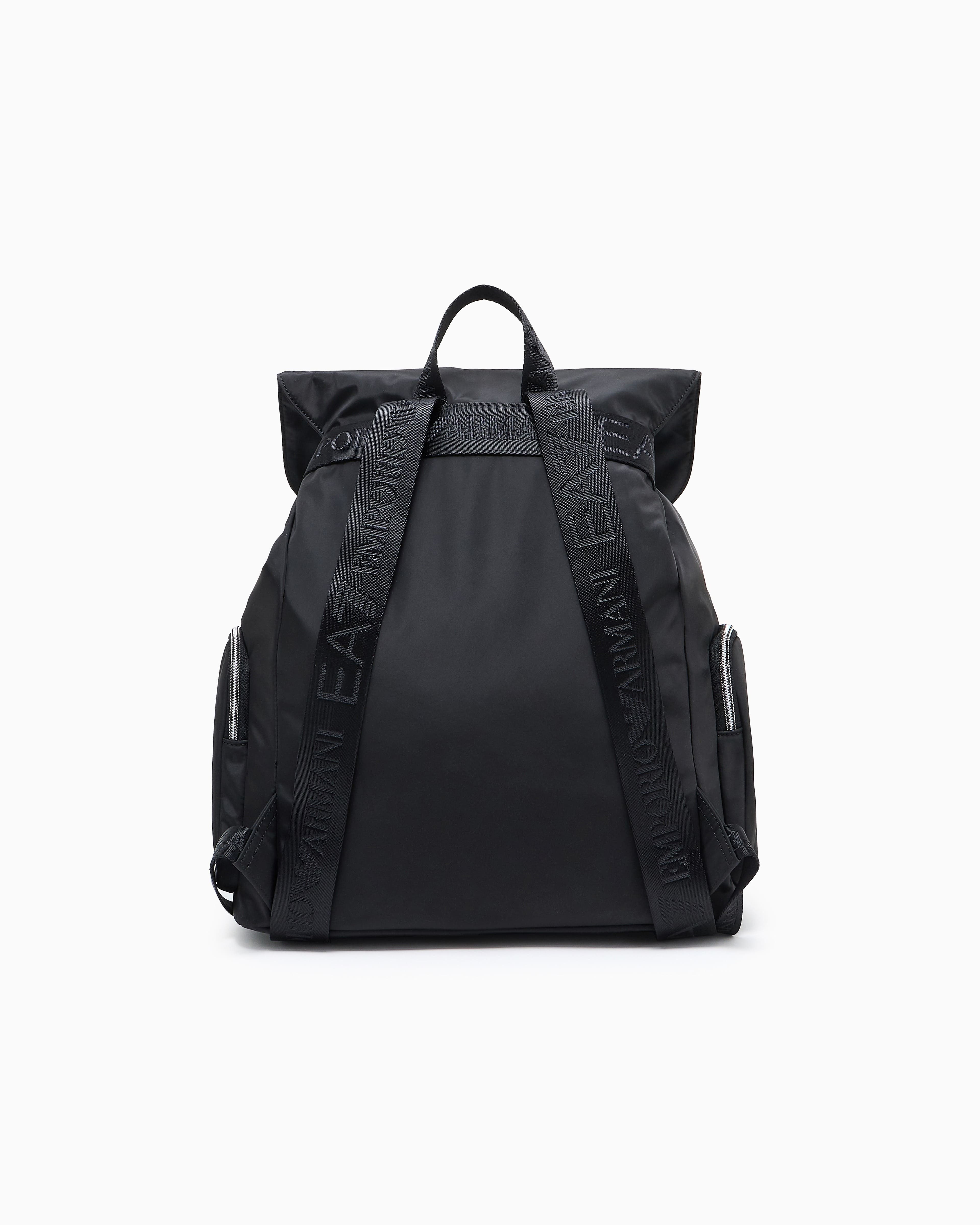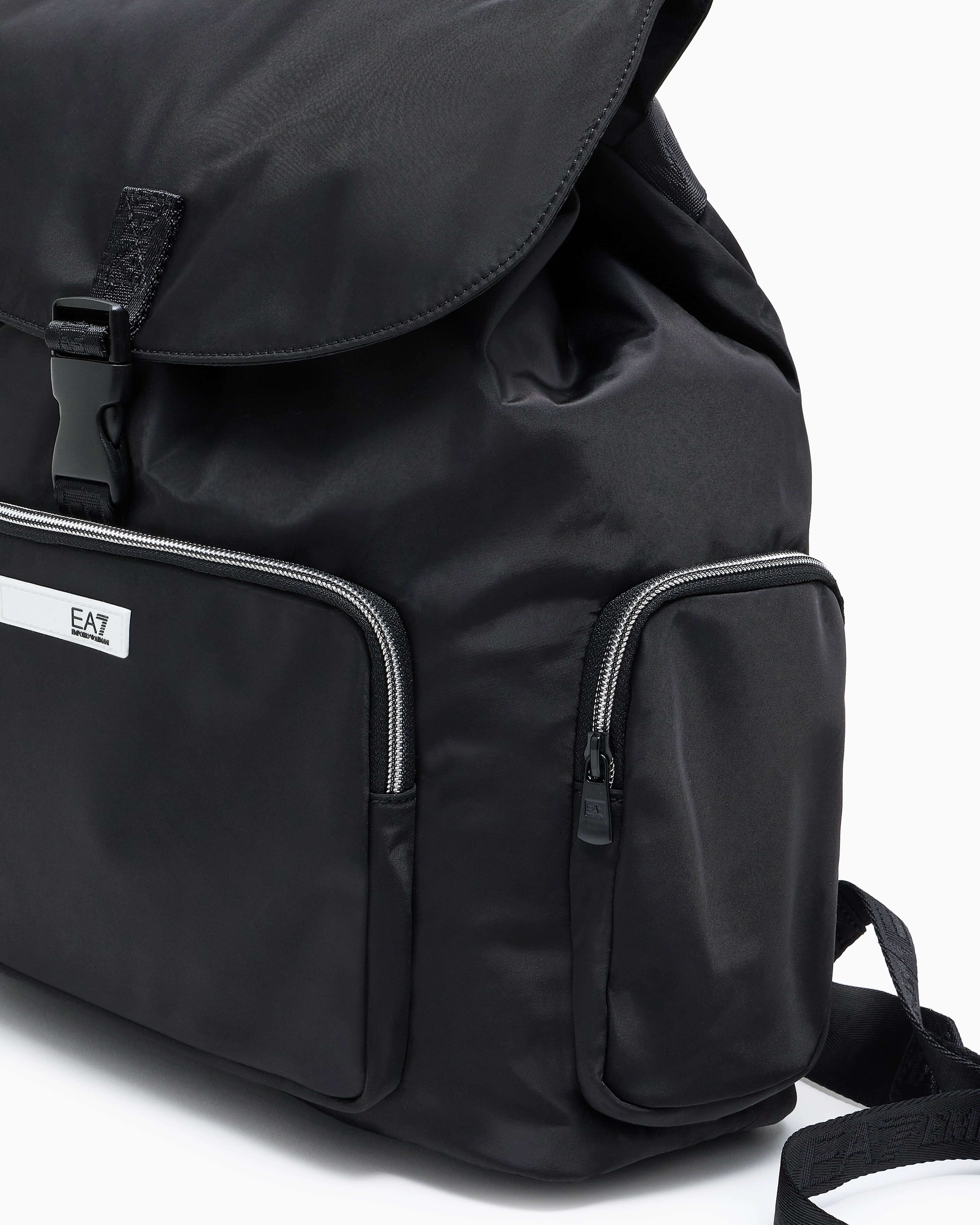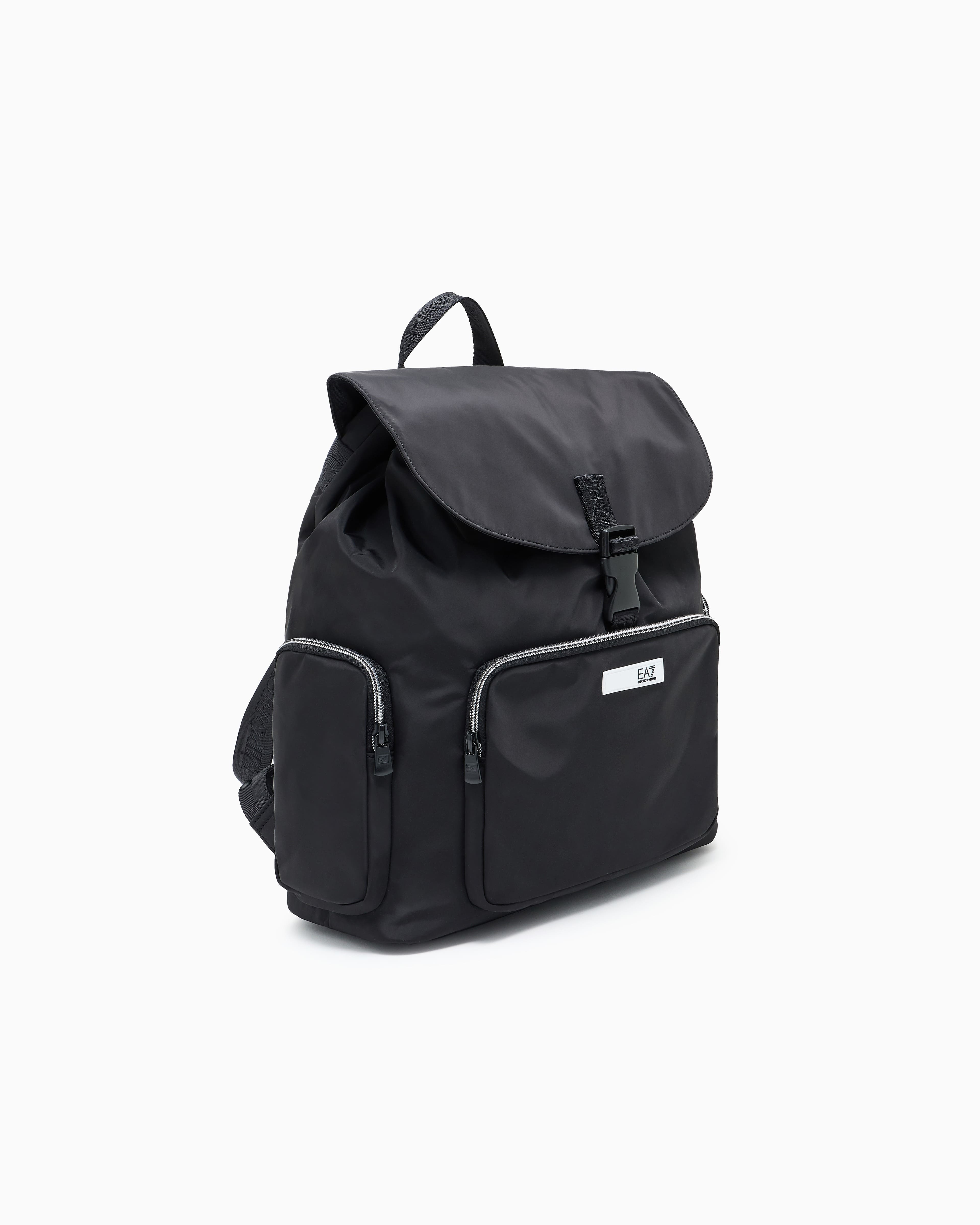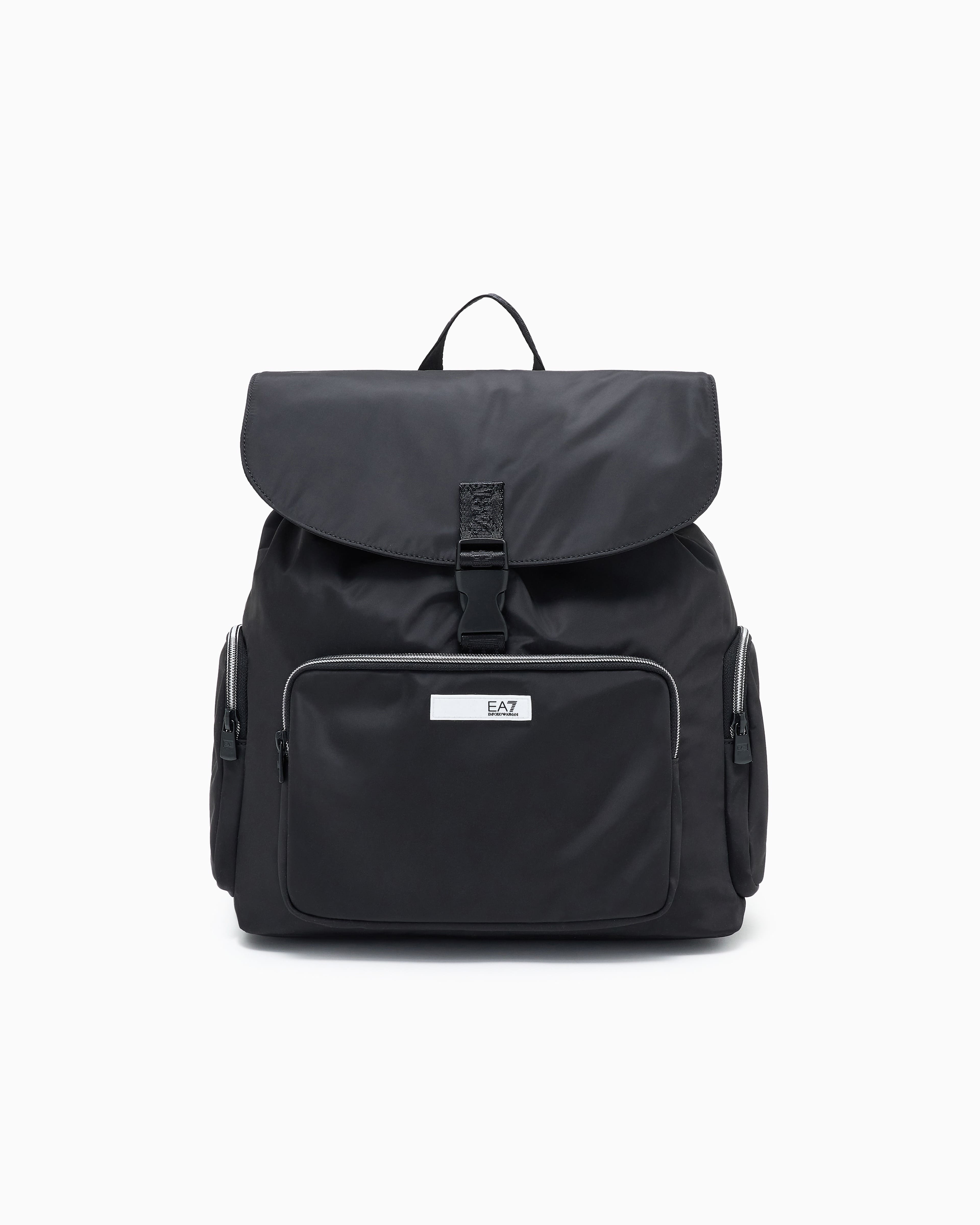 Функціональний рюкзак EA7 Emporio Armani із технічного текстилю поєднує місткість і спортивну естетику. Клапан із пряжкою та внутрішній шнурок надійно фіксують вміст, а три зовнішні кишені на блискавці забезпечують зручну організацію речей. Лямки зі стропи з фірмовим мотивом підвищують комфорт під час носіння. Контрастна нашивка з логотипом EA7 Emporio Armani підкреслює динамічний характер. Поєднується зі спортивним одягом, вітрівками або кежуал-комплектами, створюючи практичний і сучасний образ для міста та тренувань.