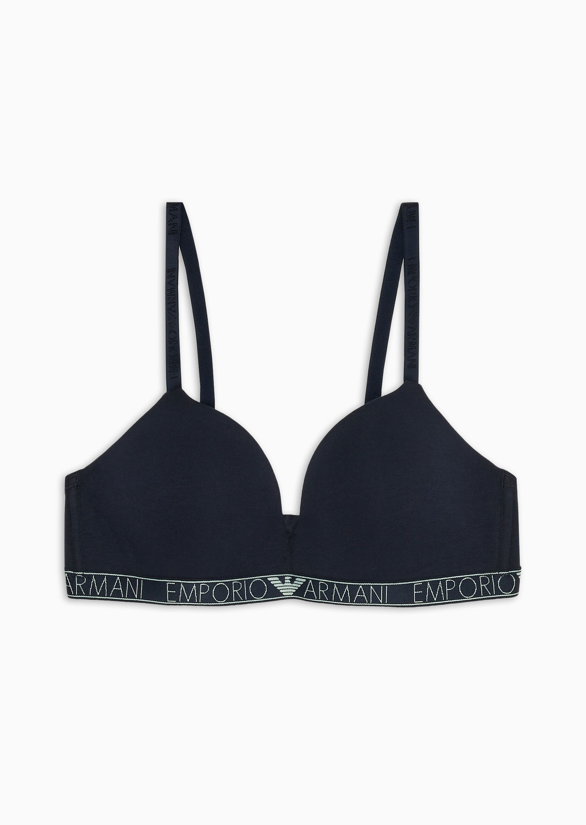 Мягкий треугольный бюстгальтер с регулируемыми бретелями темно-синего цвета, Ткань из сертифицированного органического хлопка, изготовленного из органически выращенных натуральных волокон, культивируемых с помощью технологий, отвечающих строгим социальным и экологическим критериям.