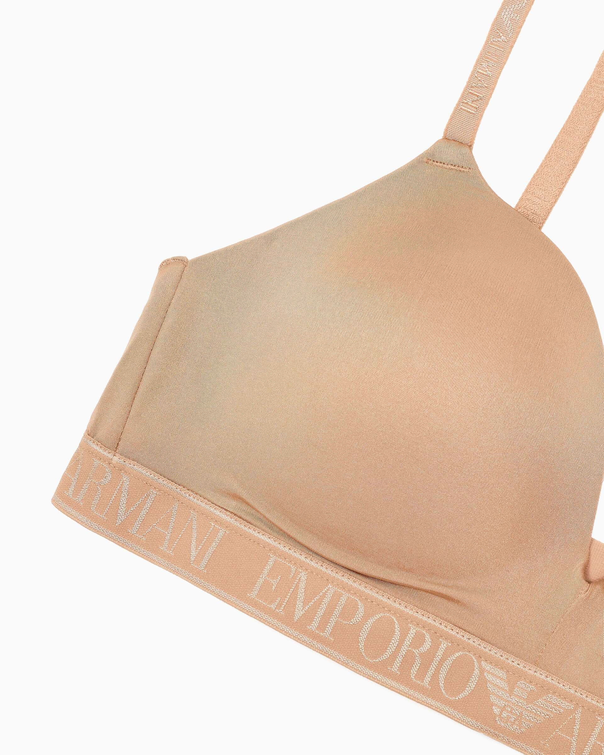 Мягкий бюстгальтер с регулируемыми бретелями из блестящей ткани из микрофибры и эластичной лентой с логотипом. Комфортное и стильное женское белье на каждый день.