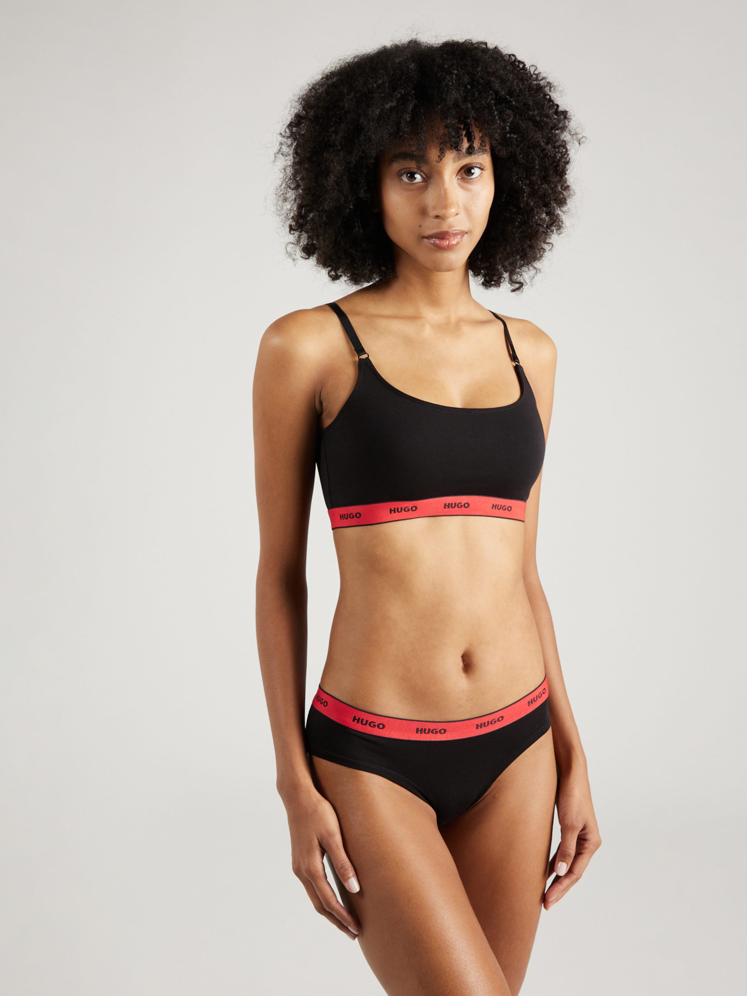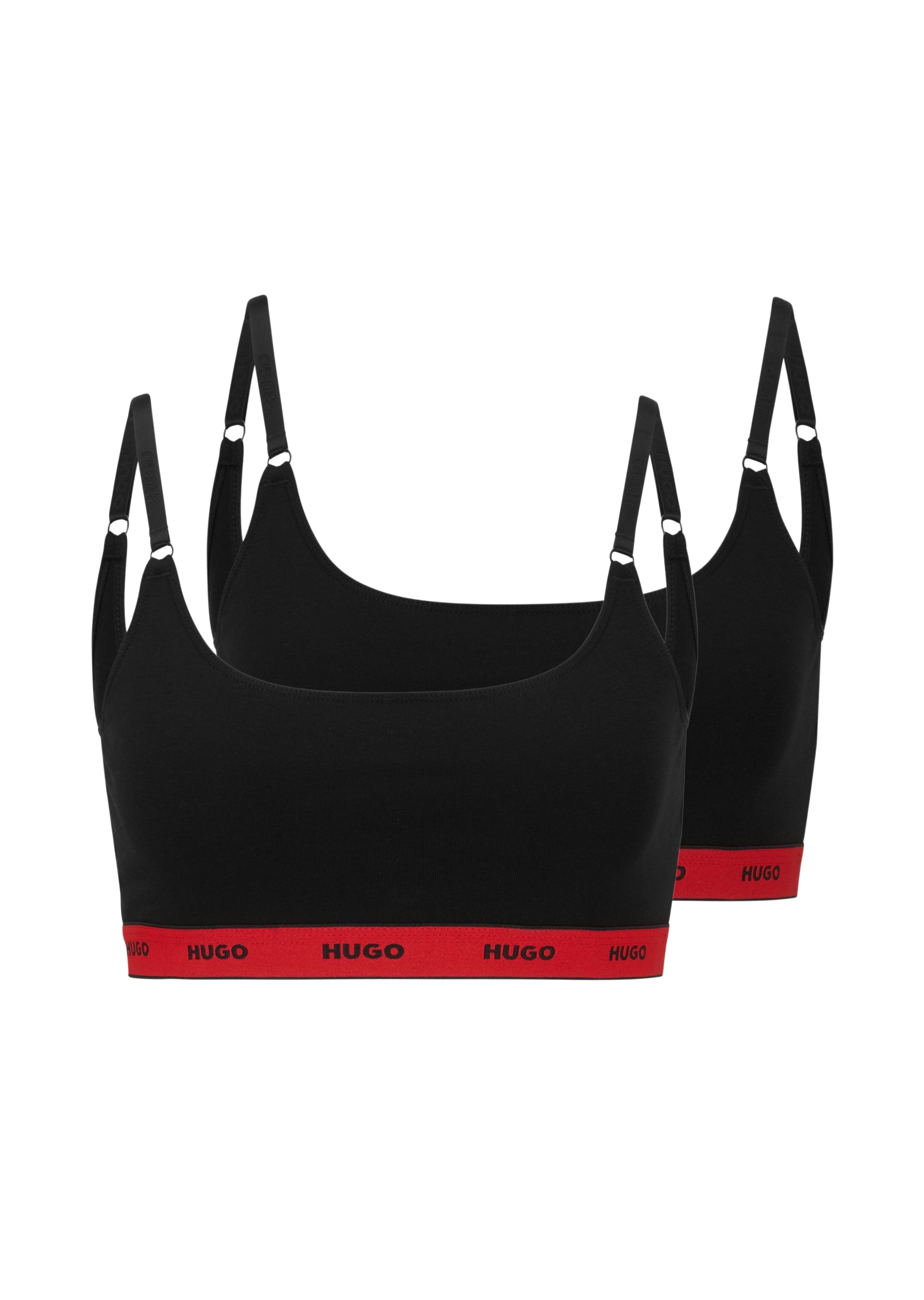 Набор из двух топов от HUGO изготовлен из эластичной ткани джерси. Модель на регулируемых бретелях отличается контрастной, красной, лентой вдоль изделия с фирменным логотипом бренда.