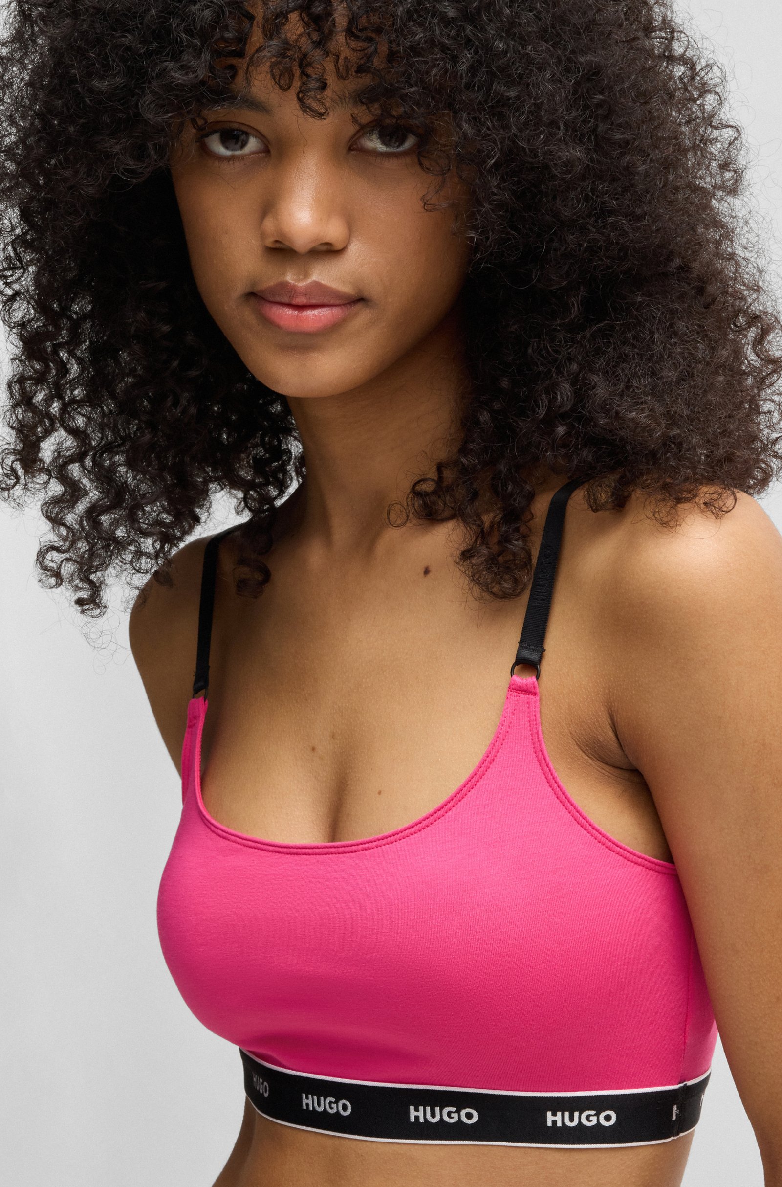 Два бюстгальтера-бралетта, выполнены из эластичного трикотажа, с двойным передним слоем и регулируемыми бретелями от HUGO. Эти простые и узорчатые модели имеют фирменные полосы.