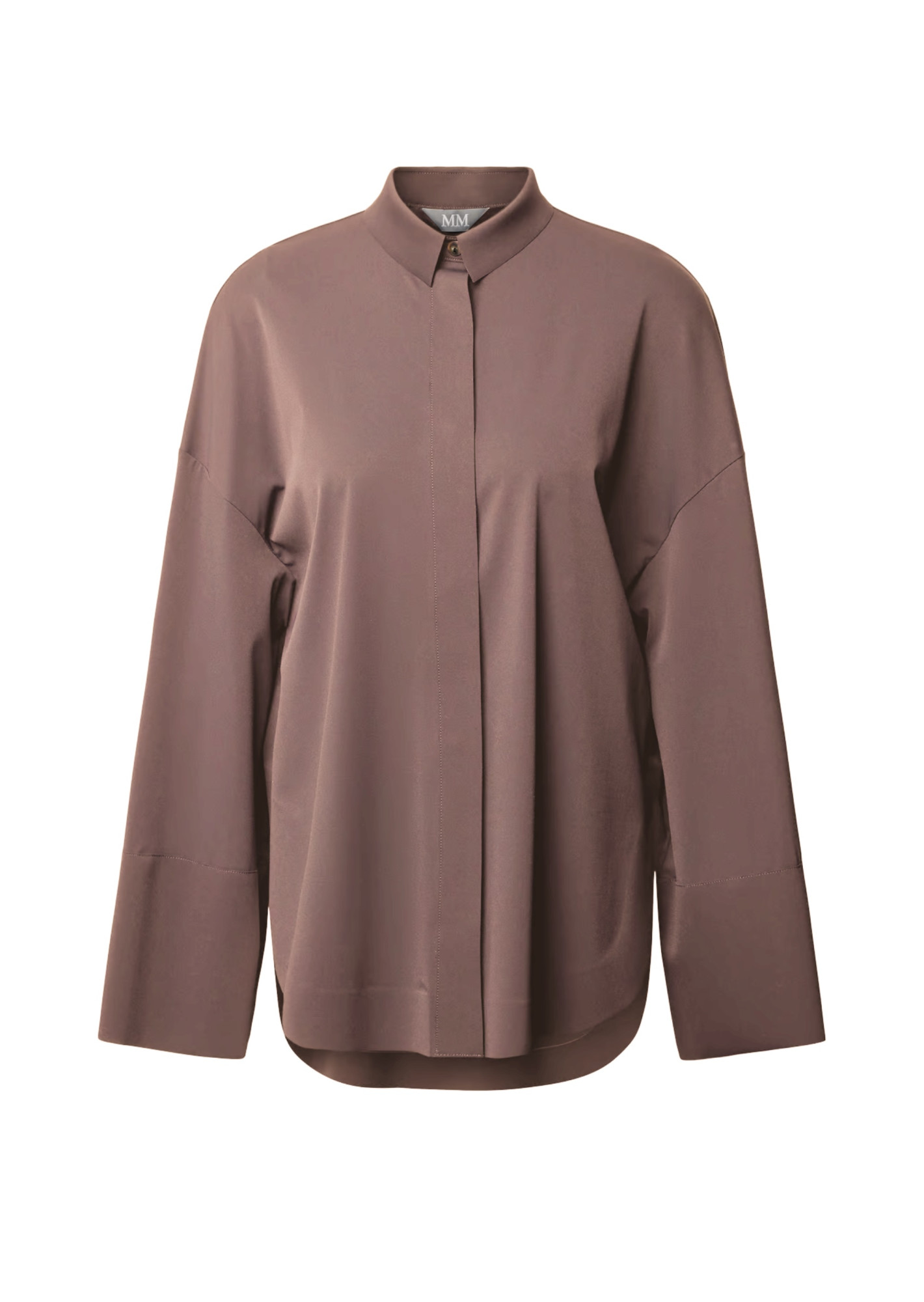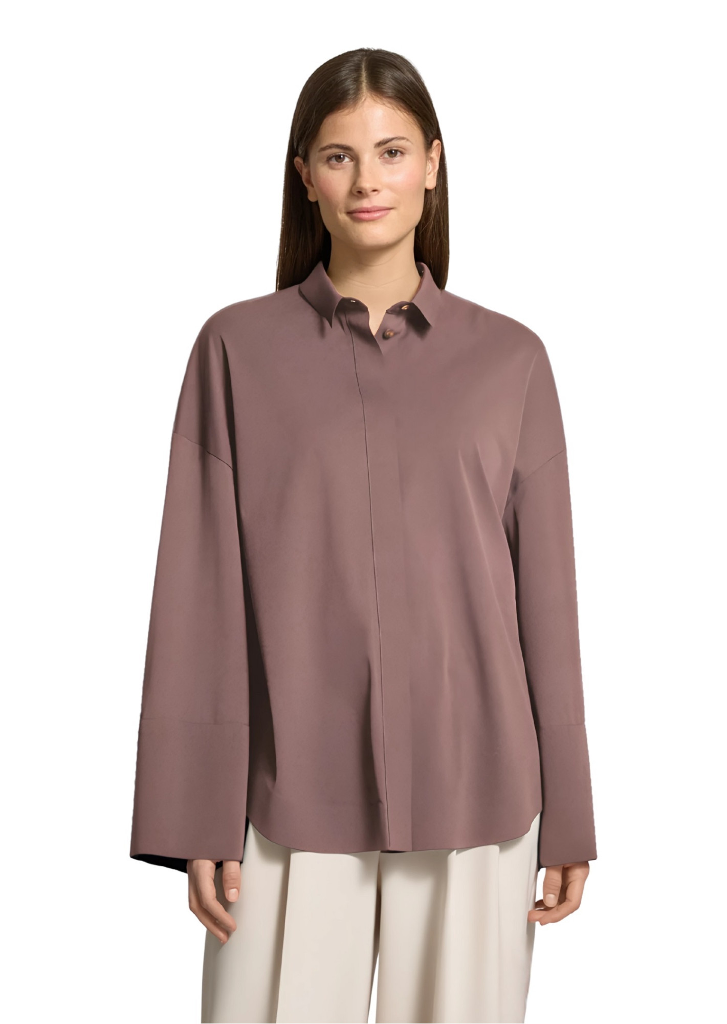 Блуза свободного кроя с острым рубашечным воротником, длинными рукавами и скрытой застежкой на пуговицы. Изысканная модель позволит создать элегантный образ.