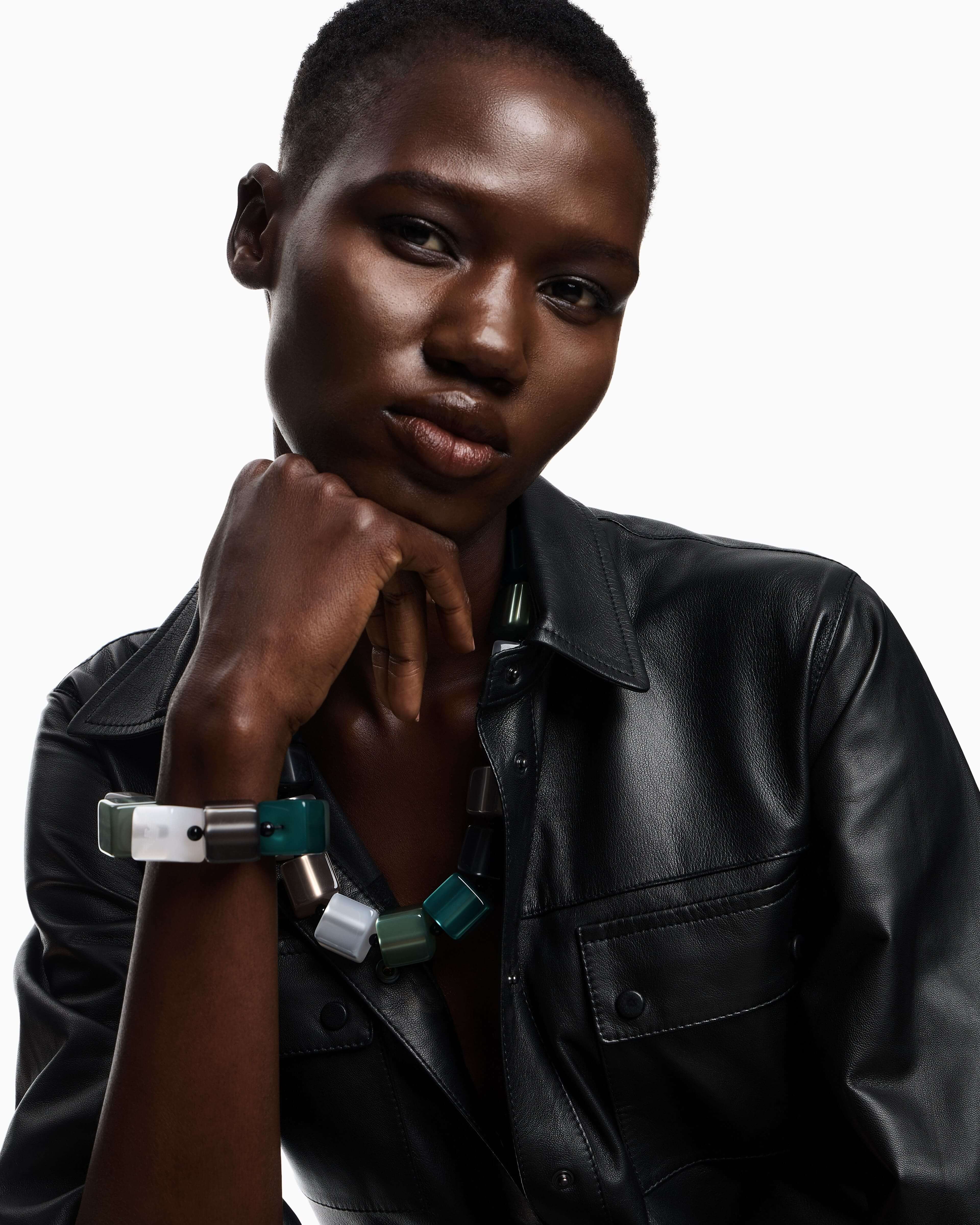 Браслет Emporio Armani собран из кубических элементов на эластичной основе, что придаёт изделию современный и лаконичный характер. Минималистичная геометрия сочетается с выразительной текстурой, создавая акцентный аксессуар с итальянским почерком.