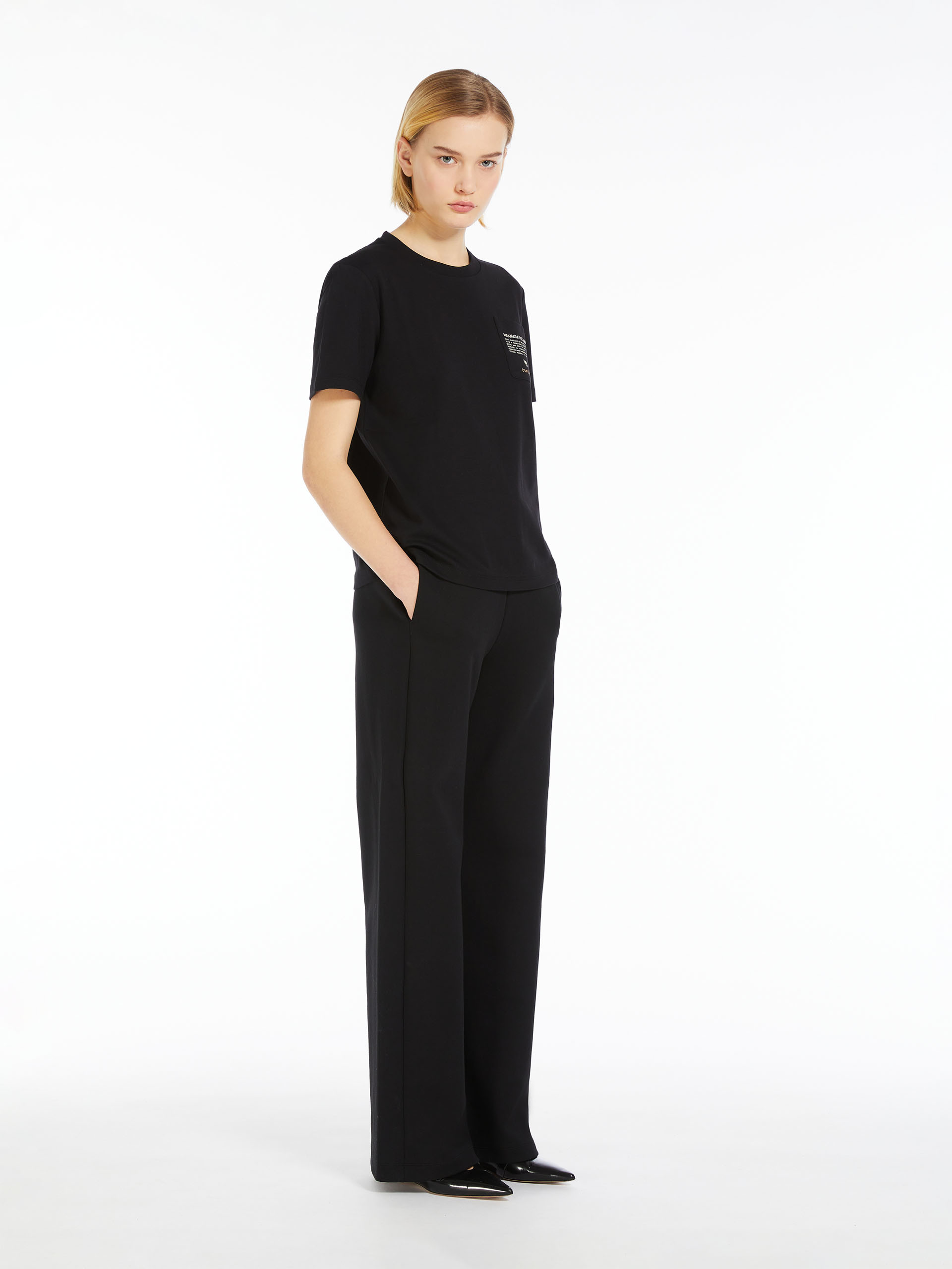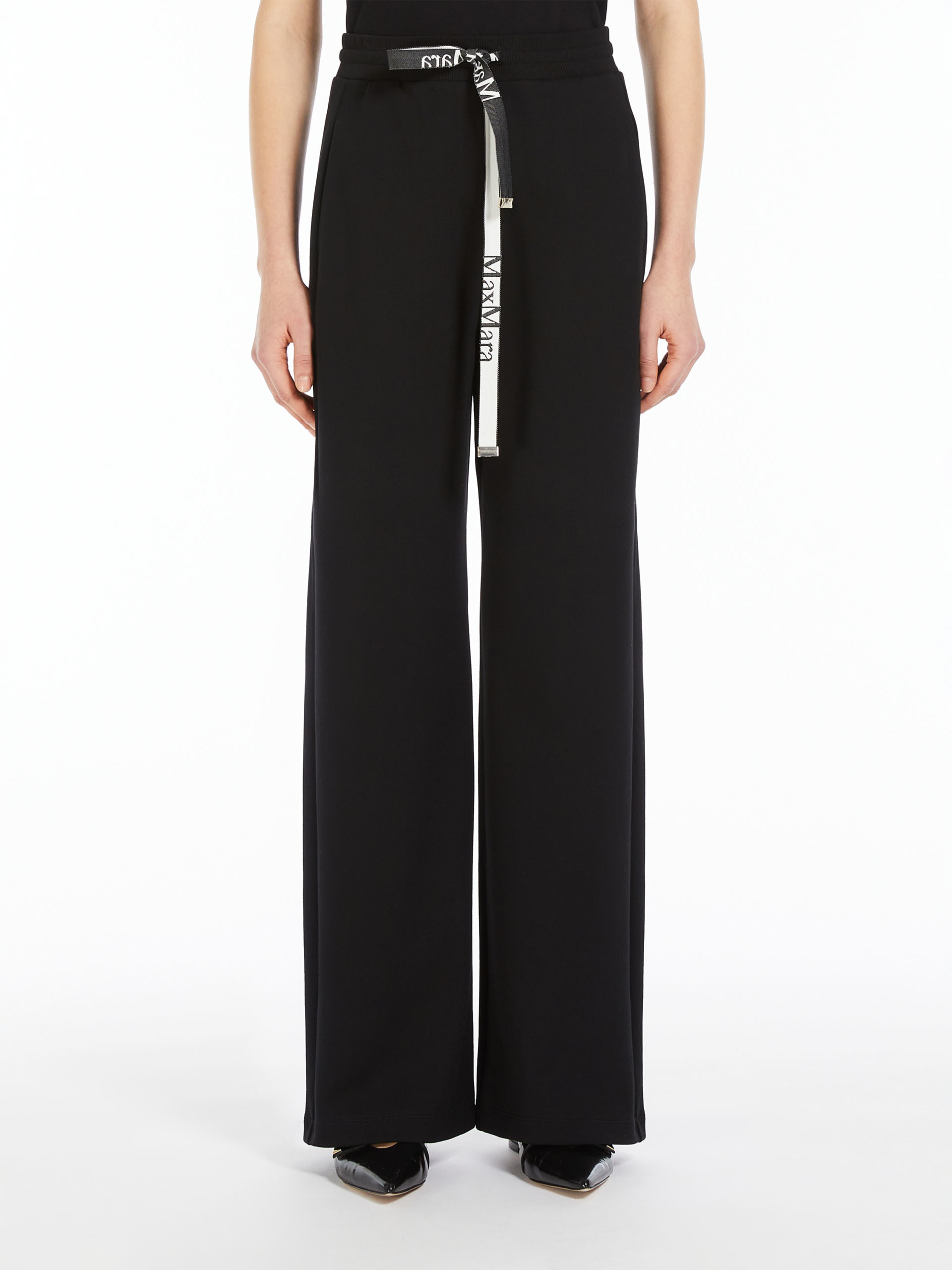 Флисовые брюки широкого силуэта и эластичной талии с жаккардовой кулиской с логотипом. Изготовлен из мягкого хлопчатобумажного трикотажа с техническим видом. Имеет вставные боковые карманы и небольшой прорезной карман сзади.
