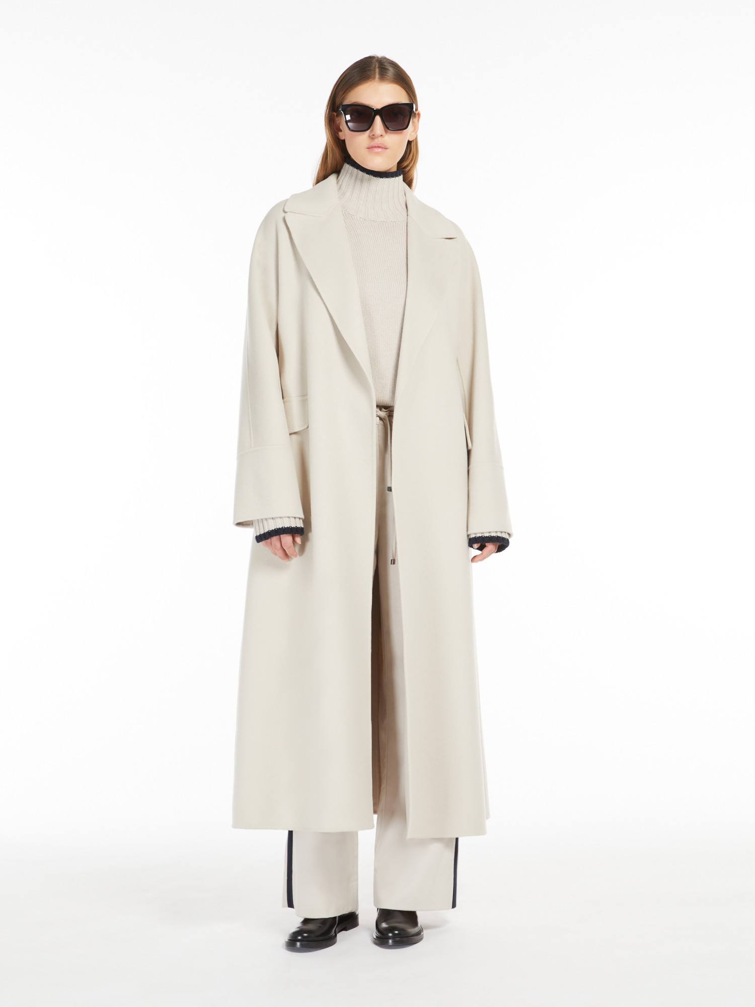 Брюки свободного кроя из теплой и мягкой эластичной шерстяной фланели. Модель имеет эластичную талию сзади, карманы по бокам и регулируемую кулиску спереди. Отделка контрастными боковыми полосами со всех сторон. Потайная молния и застежка на крючок.