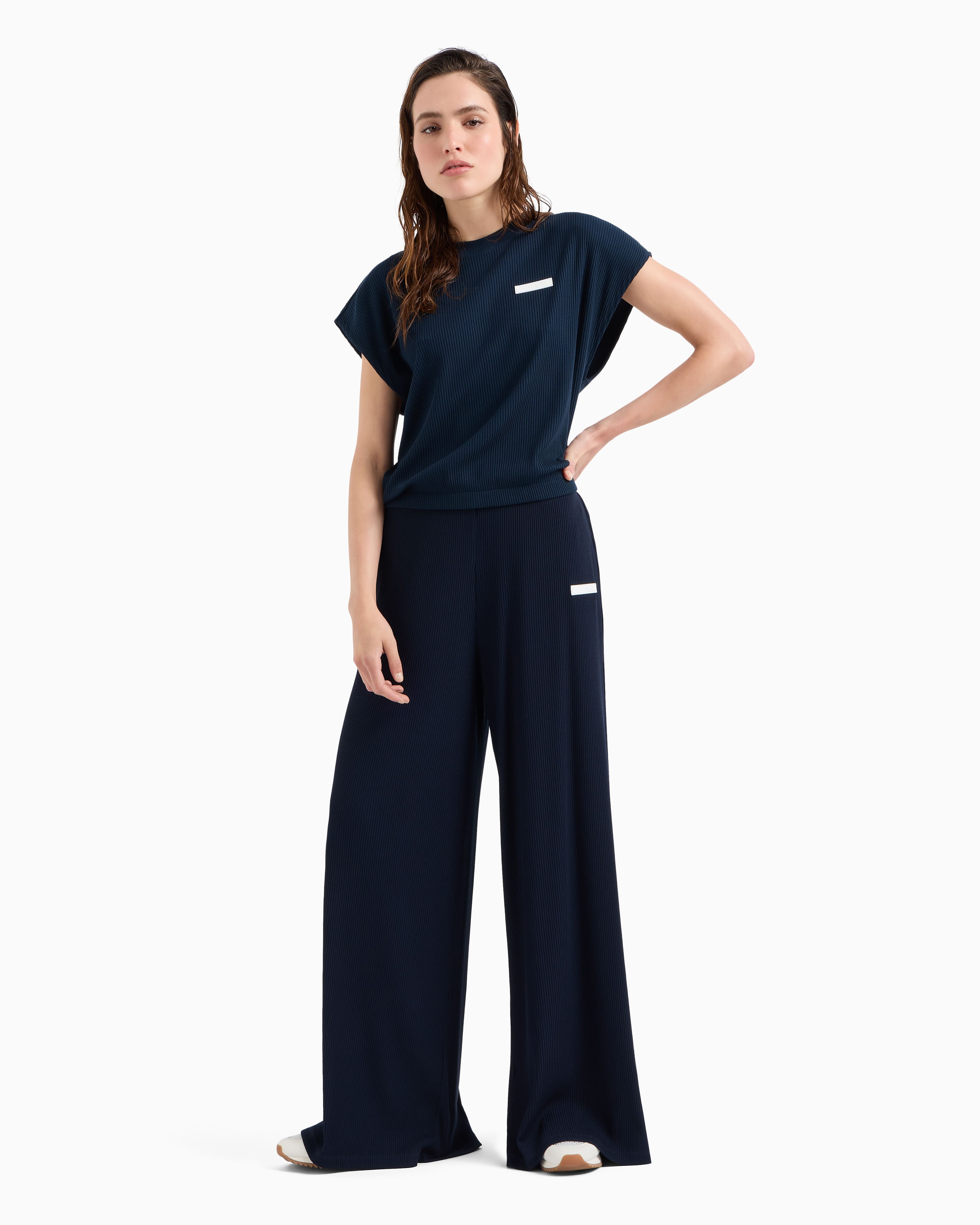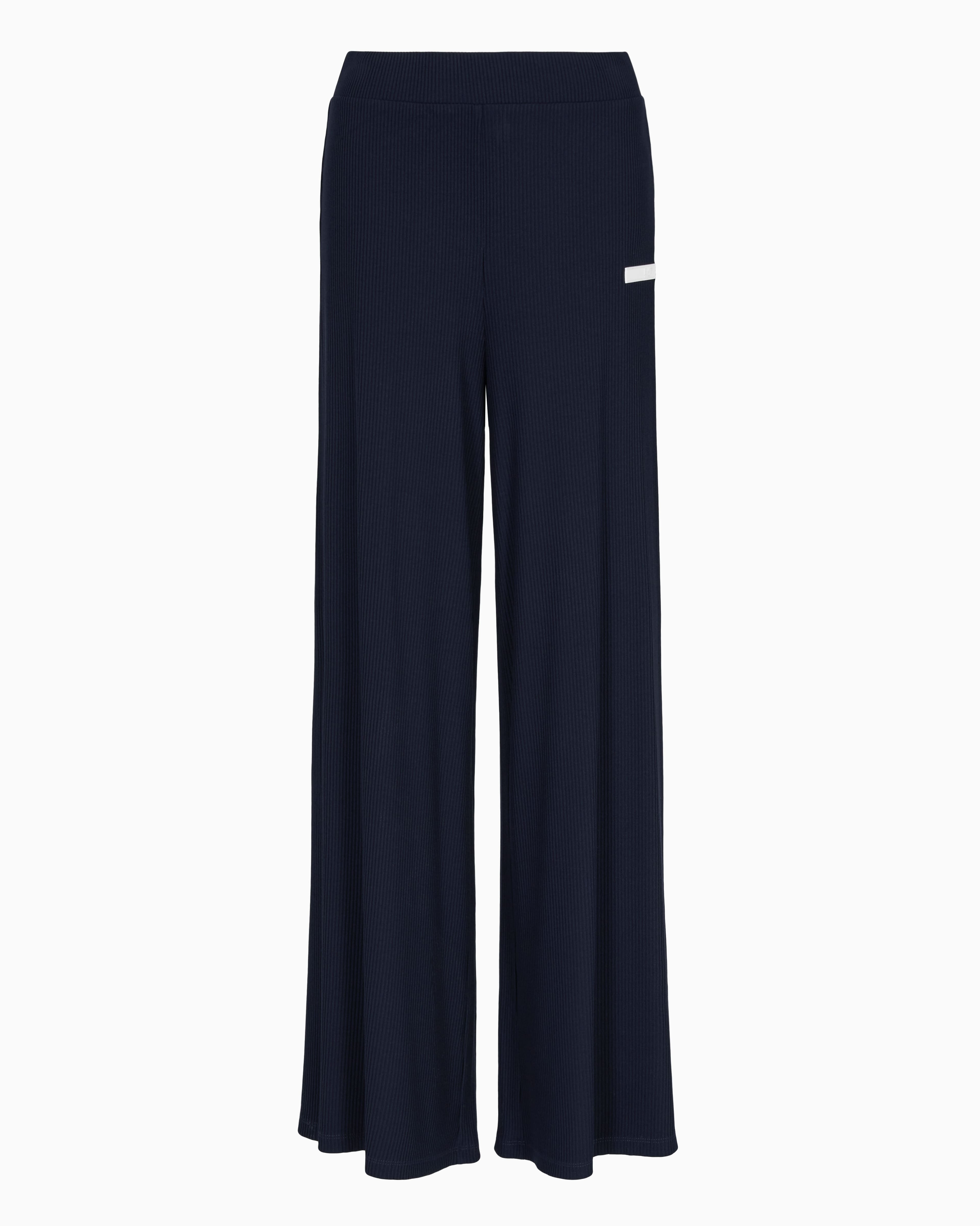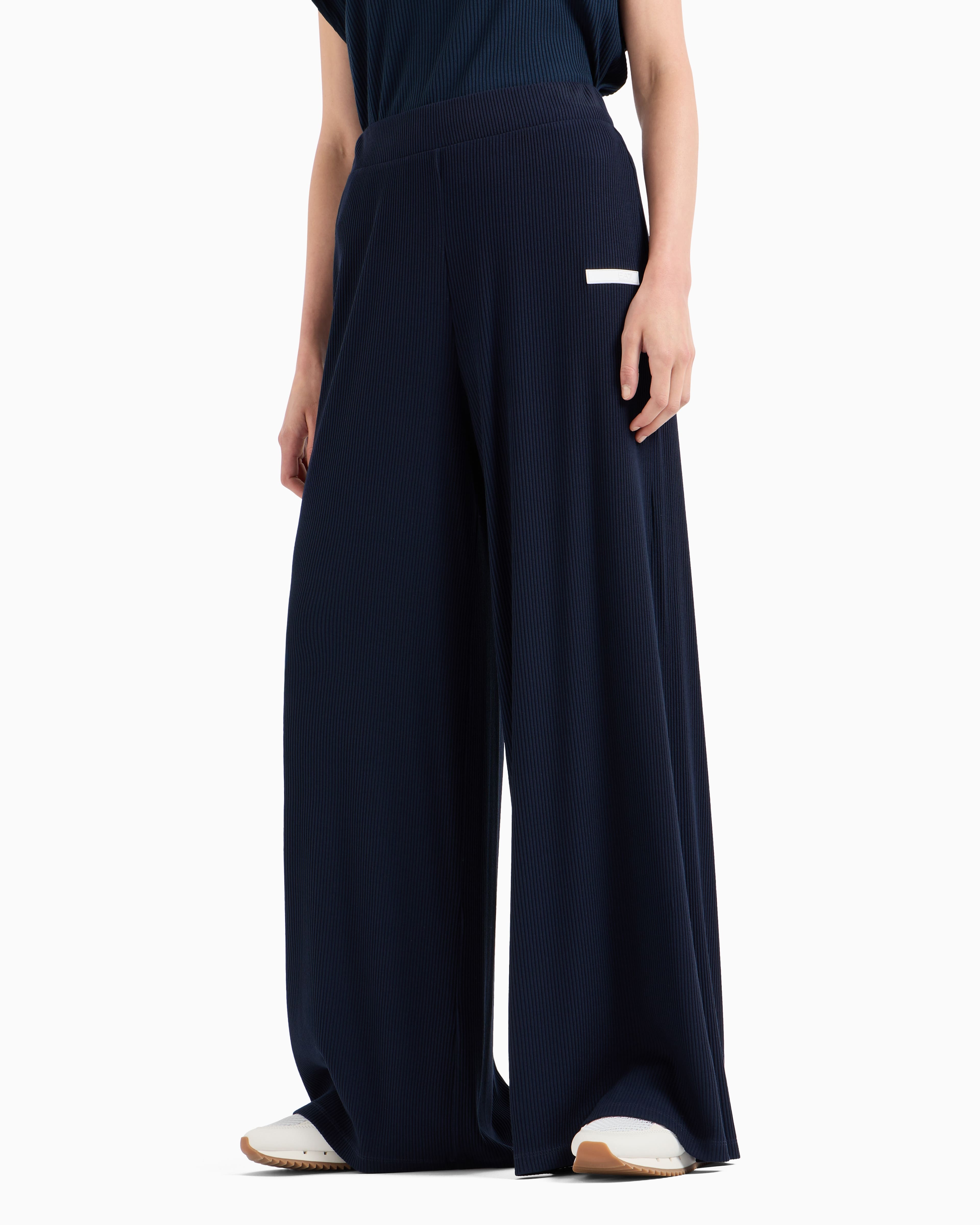 Женские спортивные штаны-палаццо из коллекции Emporio Armani EA7. Ультрасовременная модель с широкими штанинами и эластичным поясом изготовлена из высококачественной смеси материалов. Брюки для женщин, которые во время спорта и отдыха ценят стиль и комфорт.