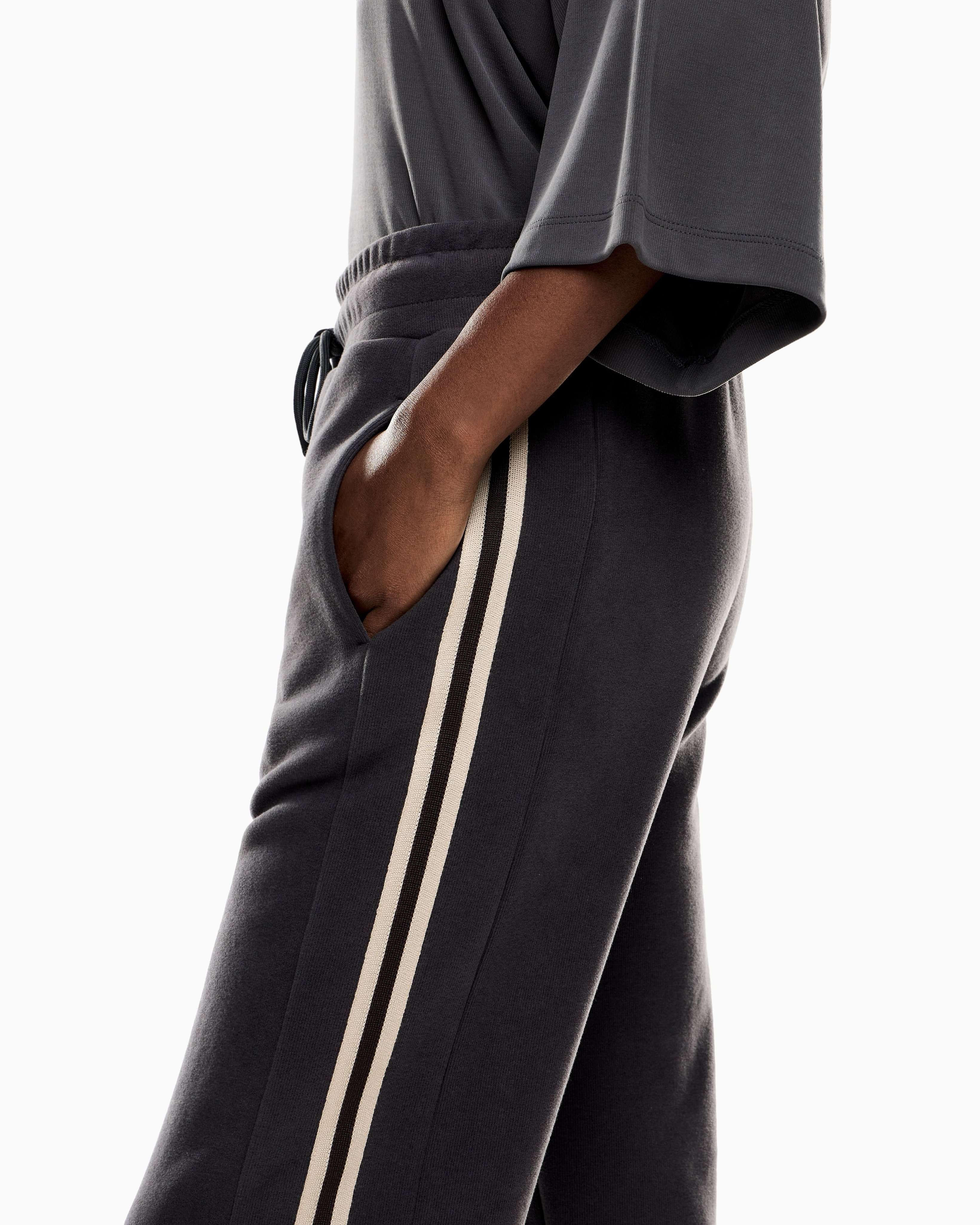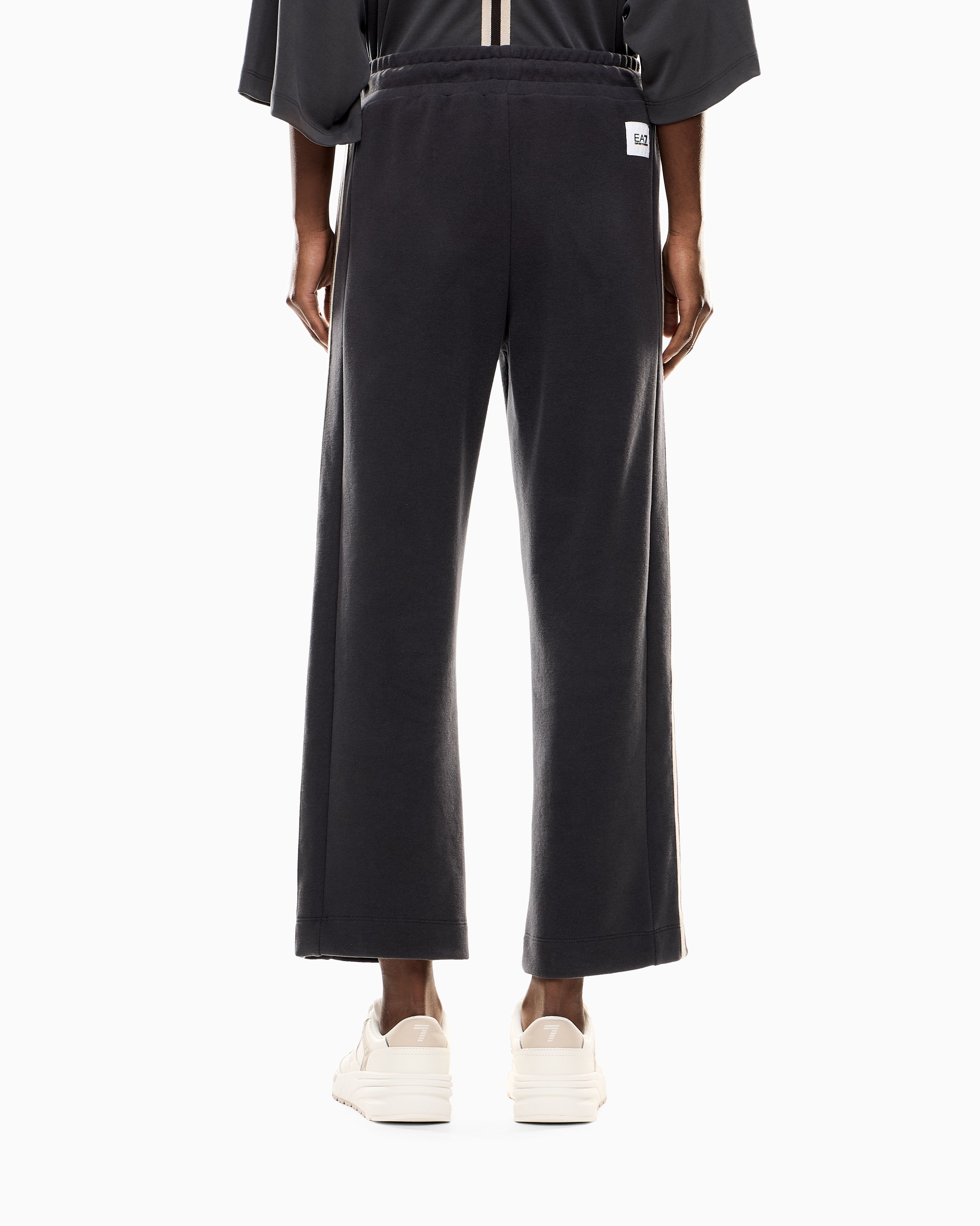 Брюки EA7 Emporio Armani свободного кроя выполнены из хлопка с добавлением полиэстера, что обеспечивает комфорт и практичность в ежедневной носке. Шнурок на поясе регулирует посадку, а боковые карманы добавляют функциональности. Ленты контрастного оттенка вдоль внешних швов подчёркивают спортивный характер, а логотип на спинке завершает фирменный акцент. Лаконичный силуэт делает вещь универсальной для спорта и отдыха. Сочетаются с футболками, худи или спортивными куртками, формируя динамичный и расслабленный образ.